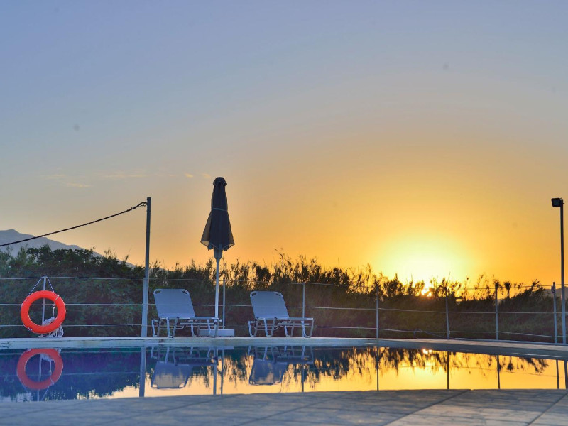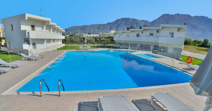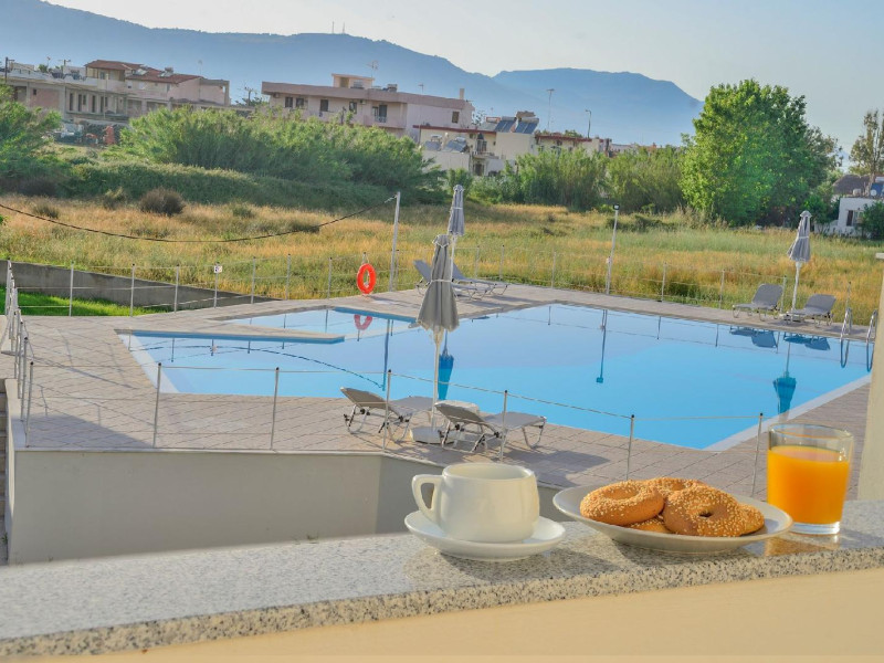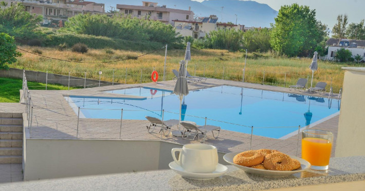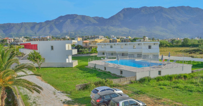Reina Apartments is located in the center of Kavros, at a short walking distance from its vast coastline, which has 18 km length. Kournas lake, the only natural lake in Crete, is only 4 km from our apartments. Georgioupolis is also at the same distance. Moreover, in just 10 minutes by car you can reach Argiroupolis, known for its beautiful natural springs. Our apartments provide free WiFi, modern facilities and a kitchenette with kitchenware, as well as access to our outdoor swimming pool. All the air conditioned rooms are elegantly decorated and have smart TVs. They have mountain and pool view.
