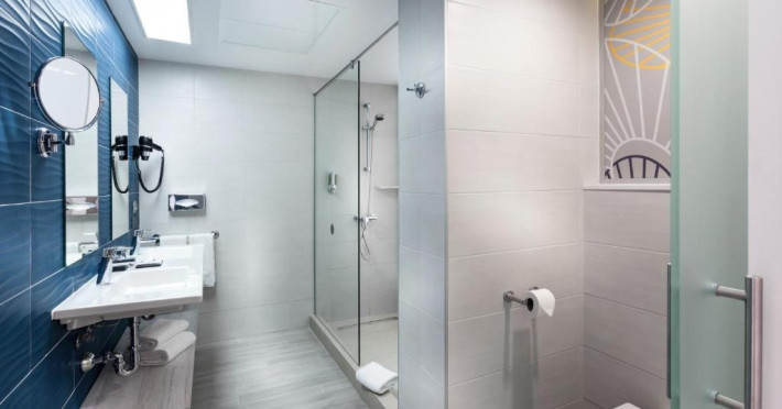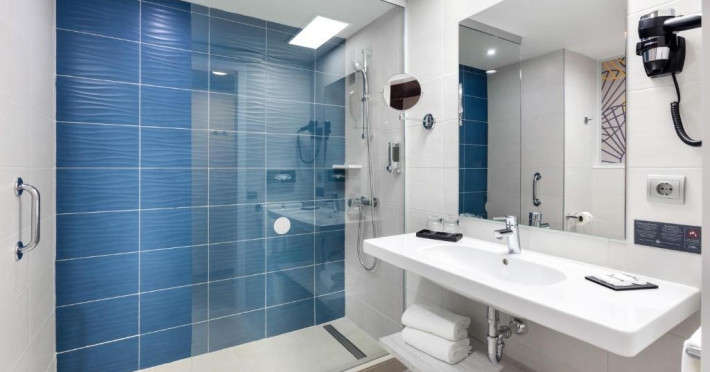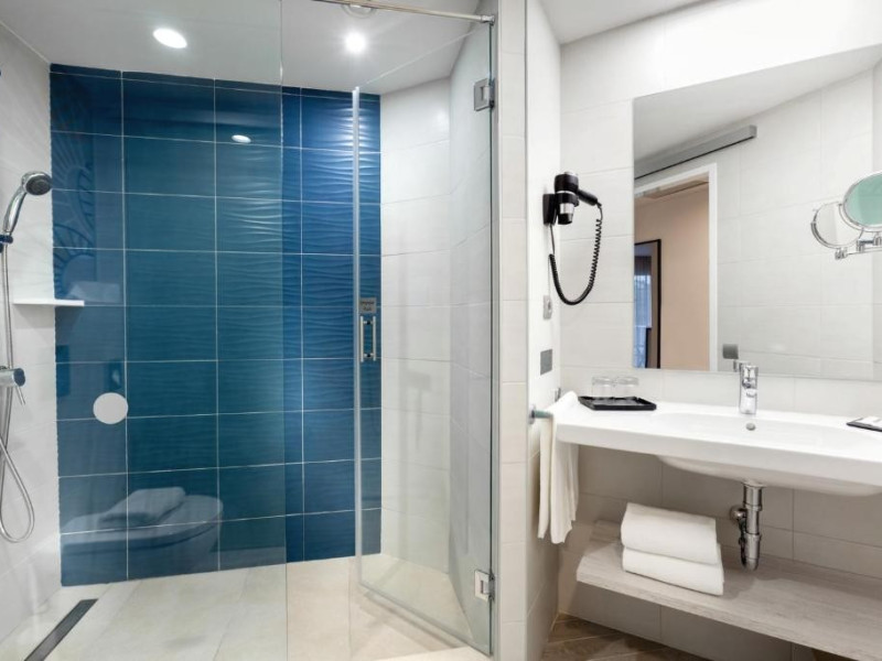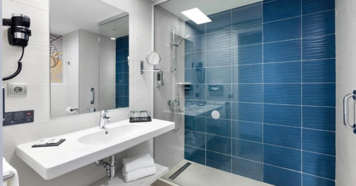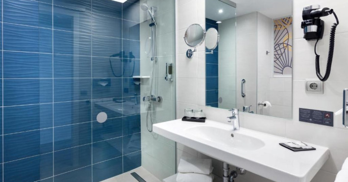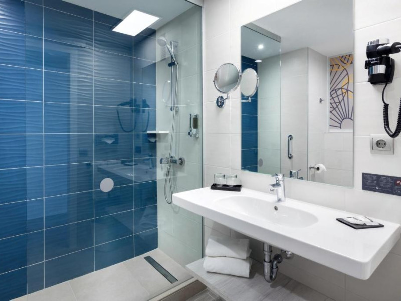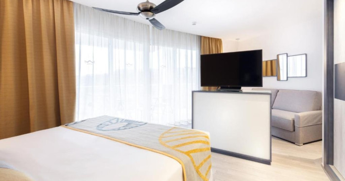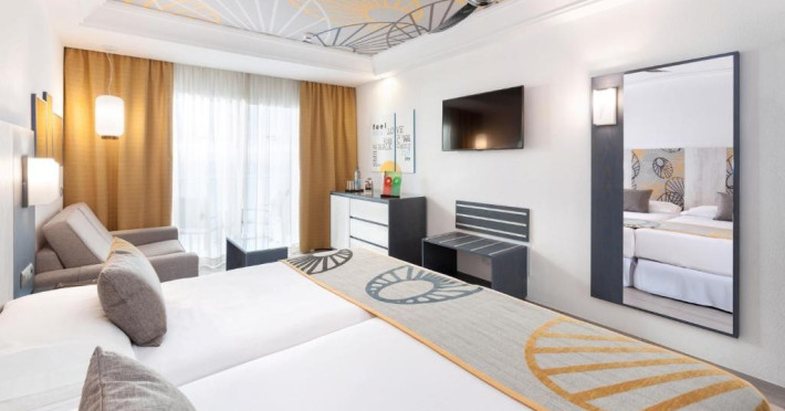 Camera dubla, vedere la mare: baie/WC (uscator de par), TV/sat., aer conditionat, ventilator de tavan, mini-frigider, seif, balcon sau terasa, vedere la mare.