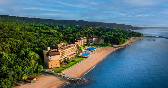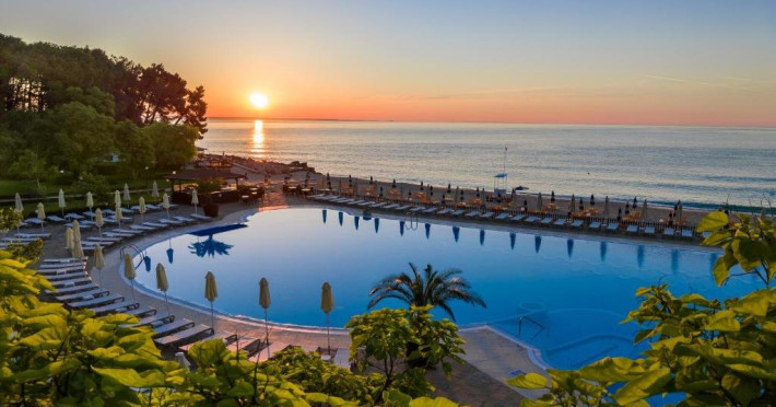 Localizare: Riviera Holiday Club este situat la 17 km de centrul orasului Varna, in imediata apropiere a statiunii Nisipurile de Aur, la 500 m de centrul acesteia. Situat chiar pe malul marii, la doar cativa pasi de o plaja incredibila. Facilitati hotel: Hotelul este format din doua cladiri interconectate. Hotelul pune la dispozitia clientilor lobby bar, restaurant principal, piscine interioare si exterioare, receptie 24/7, parcare, centru spa, teren de tenis, sezlong si umbrela la piscina, prosoape la piscina (se ridica de la receptie), sezlonguri si umbrele pe plaja (in functie de disponibilitate), club pentru copii, loc de joaca exterior, animatie. Hotelul dispune de 1 camera destinata persoanelor cu dizabilitati - la cerere. Dotari camere: Camerele sunt dotate cu aer conditionat, aparat de cafea cu capsule, TV LCD, seif, mini bar, Wi-Fi, uscator de par. -Standard aprox. 35 mp 2 paturi de o persoana sau un pat dublu, fotoliu extensibil sau pat pliabil. Balcon cu vedere la mare. -Family room aprox. 70 mp 2 camere duble standard cu usa interconectata. -Apartament aprox. 65 mp dormitor cu pat dublu, living separat cu canapea extensibila. Balcon cu vedere la mare. -Maisonnette 1-bedroom aprox. 85 mp. La primul etaj: living cu zona de luat masa si terasa, canapea extensibila; la al doilea etaj: dormitor cu pat dublu si pat de o persoan. Contra cost: Masaje, terapii faciale si corporale, hidroterapie, electroterapie, tenis, early check-in si late check-out (in functie de disponibilitate), spalatorie si curatatorie, restaurante a la carte din complex: Fish Restaurant, Beach Restaurant Imperial si Restaurant Oasis. Animale de companie: Nu sunt permise. Site web: https://rivierabulgaria.com/ro/hotels/riviera-beach