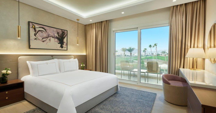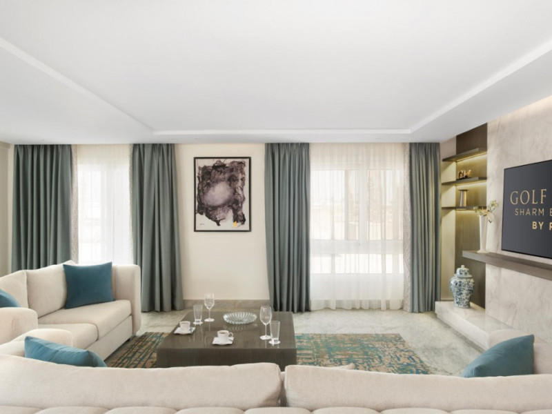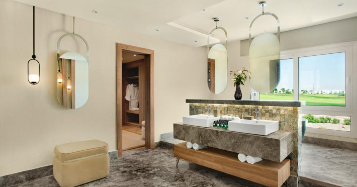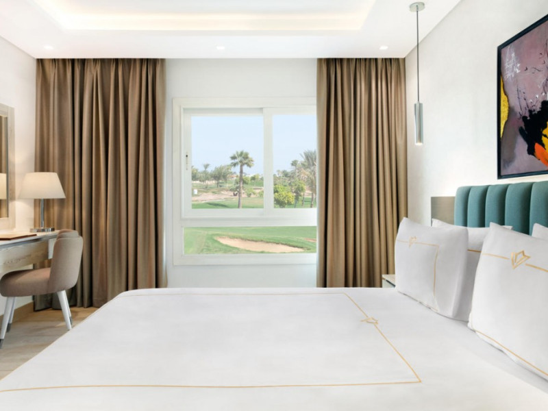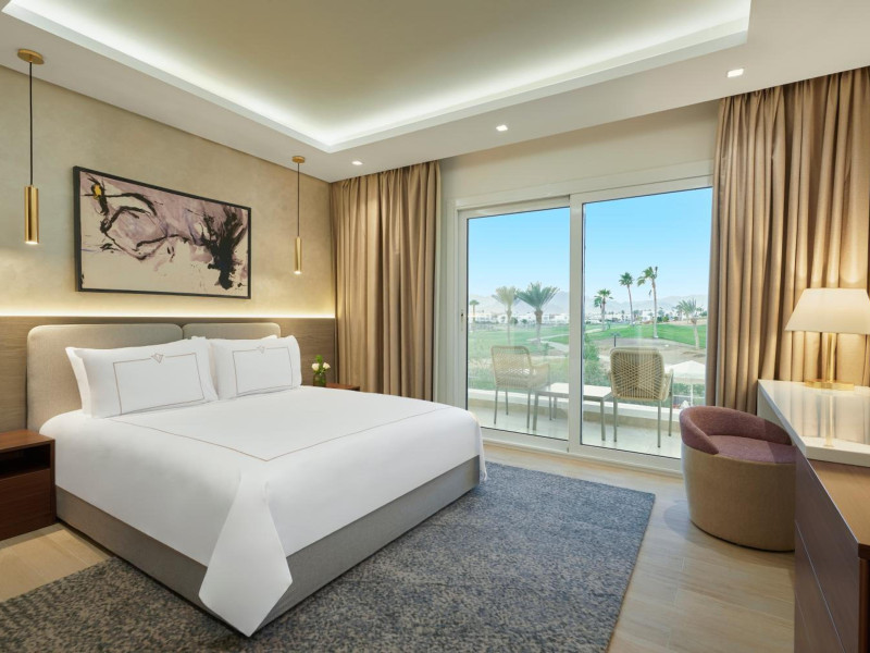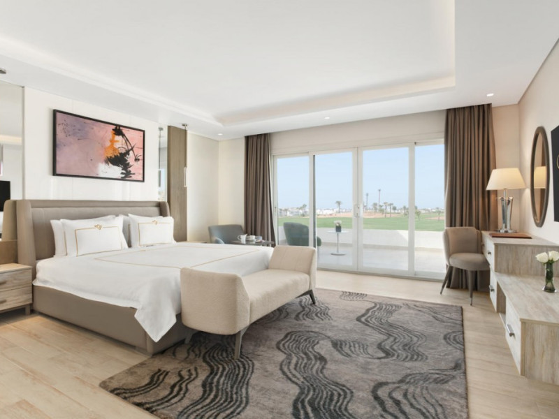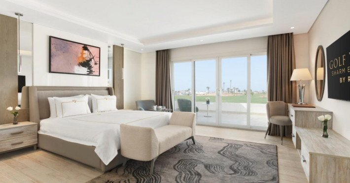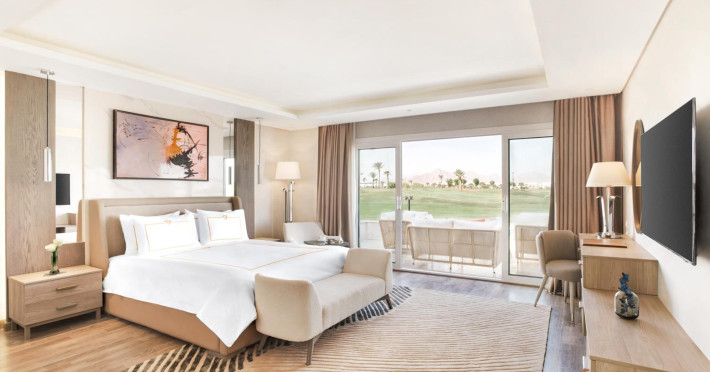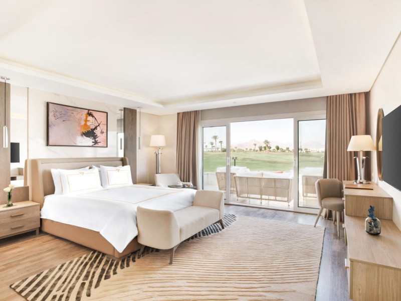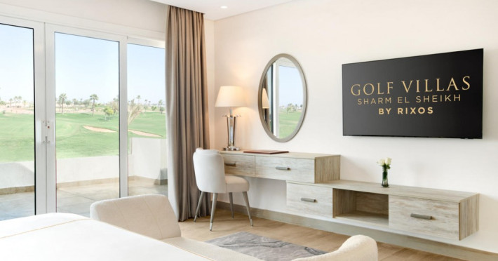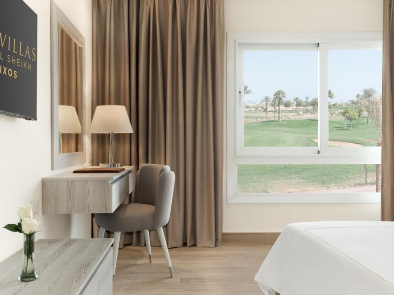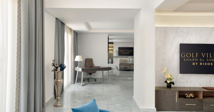 Located in Sharm El Sheikh, Rixos Golf Villas And Suites (Pickalbatros Golf Luxury Suites - All Inclusive) offers an all-inclusive experience for families and couples. The property features an outdoor swimming pool, a fitness centre, a garden, a restaurant, a bar, a sauna, a hammam, and a spa centre. Evening entertainment and room service are available. The air-conditioned rooms include a wardrobe, a coffee machine, a minibar, a safety deposit box, a TV, a terrace, and a private bathroom with a shower. Some rooms are equipped with a kitchen. Breakfast is available daily with buffet, continental and Full English/Irish options. The 24-hour front desk staff speaks Arabic, English, Russian and Turkish. Sharm el-Sheikh International Airport is located 8 km away. The Rixos Golf Villas And Suites Sharm El Sheikh is a hotel.