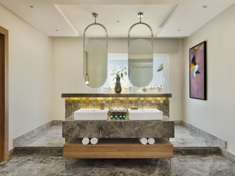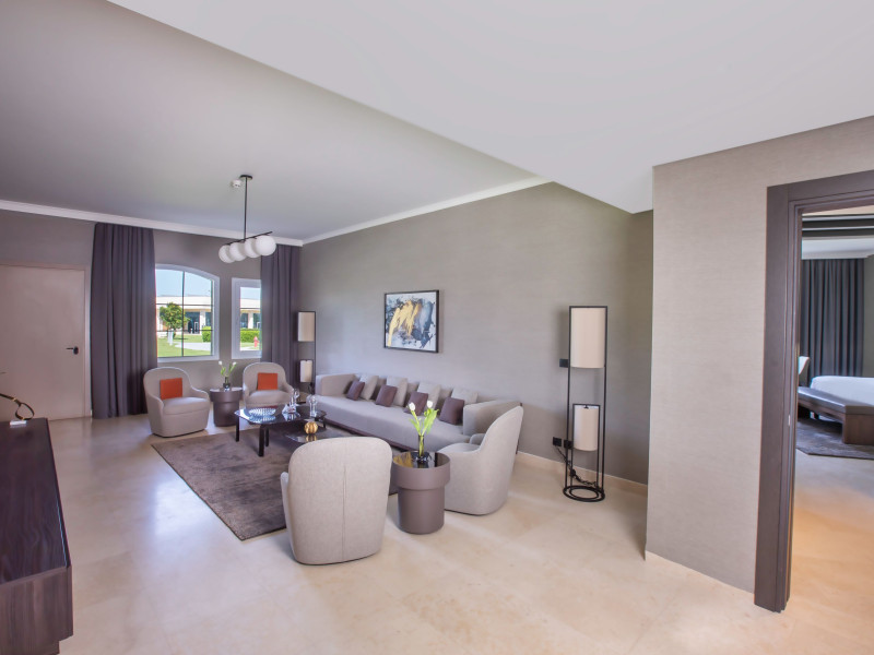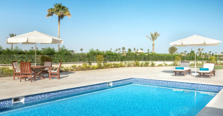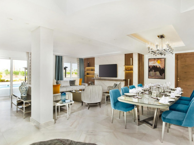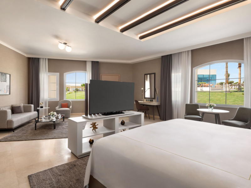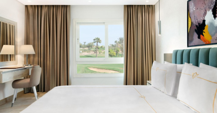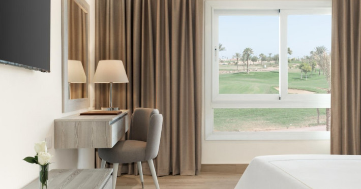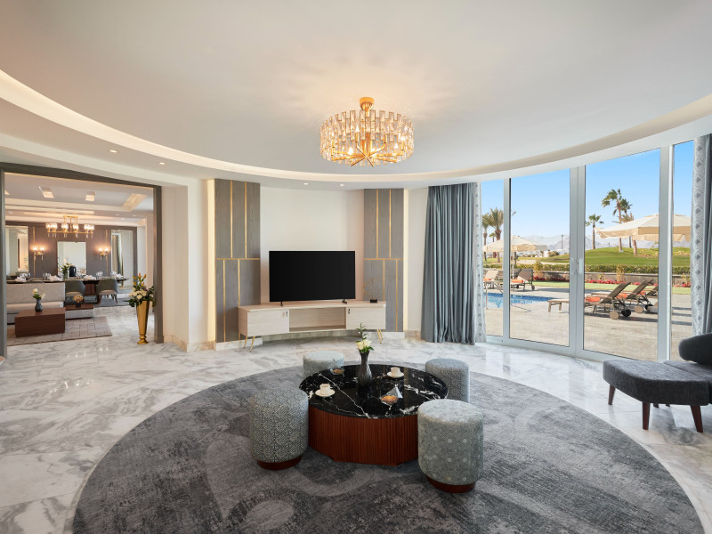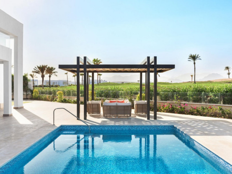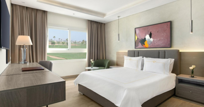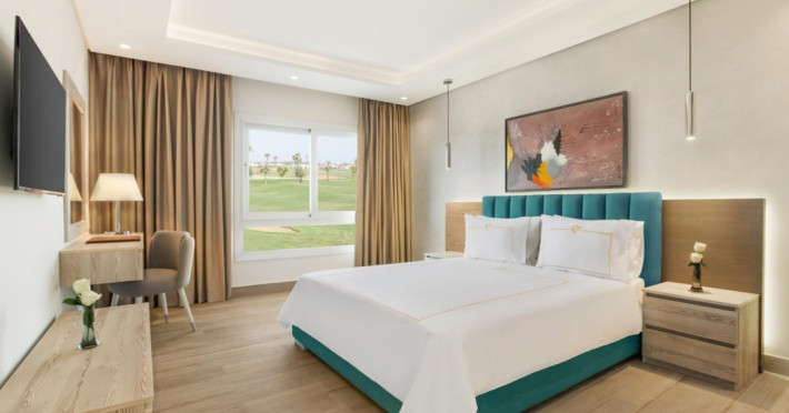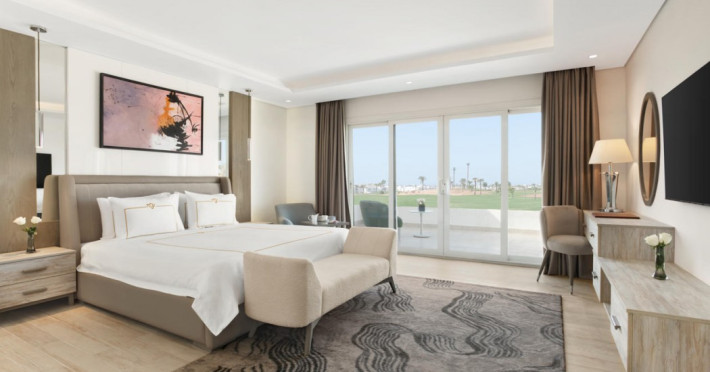 Located in Sharm El Sheikh, Rixos Golf Villas And Suites (Pickalbatros Golf Luxury Suites - All Inclusive) offers an all-inclusive experience for families and couples. The property features an outdoor swimming pool, a fitness centre, a garden, a restaurant, a bar, a sauna, a hammam, and a spa centre. Evening entertainment and room service are available. The air-conditioned rooms include a wardrobe, a coffee machine, a minibar, a safety deposit box, a TV, a terrace, and a private bathroom with a shower. Some rooms are equipped with a kitchen. Breakfast is available daily with buffet, continental and Full English/Irish options. The 24-hour front desk staff speaks Arabic, English, Russian and Turkish. Sharm el-Sheikh International Airport is located 8 km away. The Rixos Golf Villas And Suites Sharm El Sheikh is a hotel.