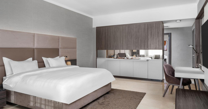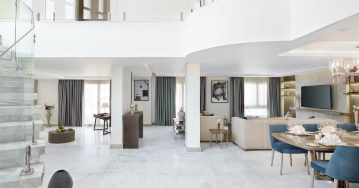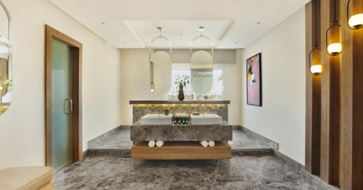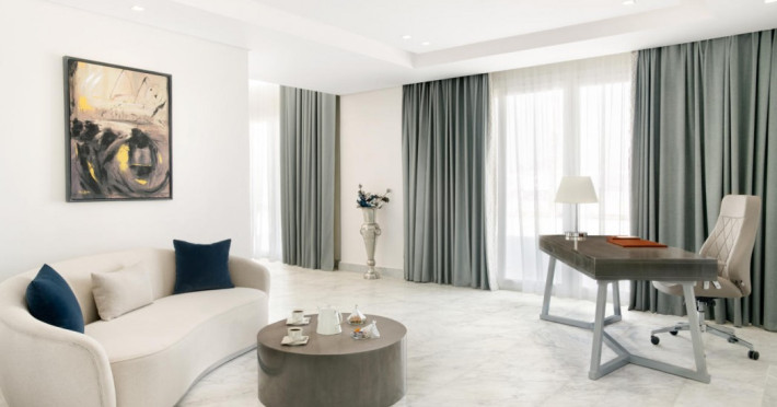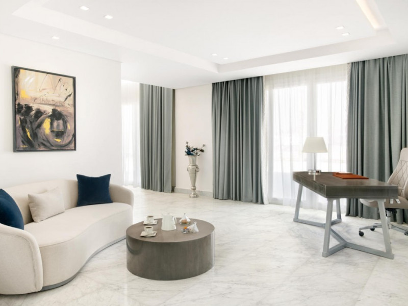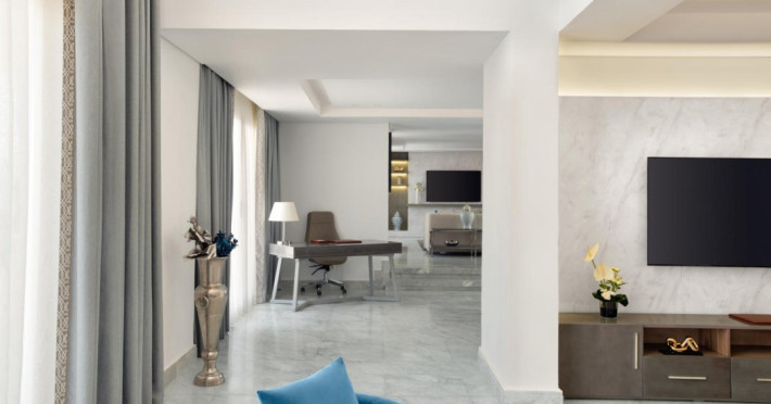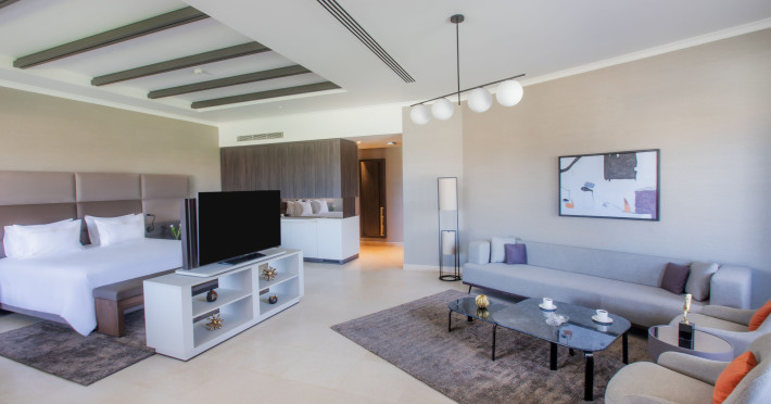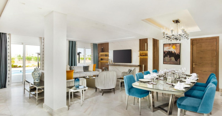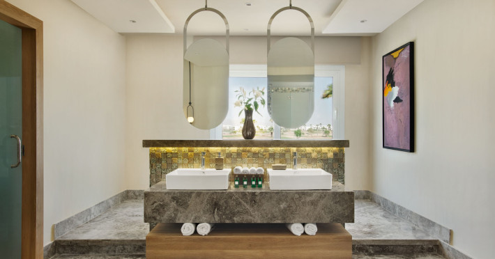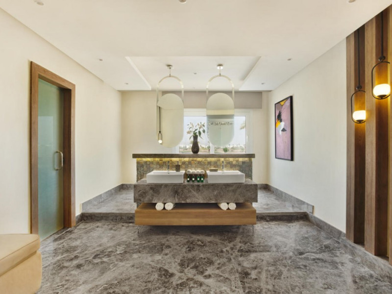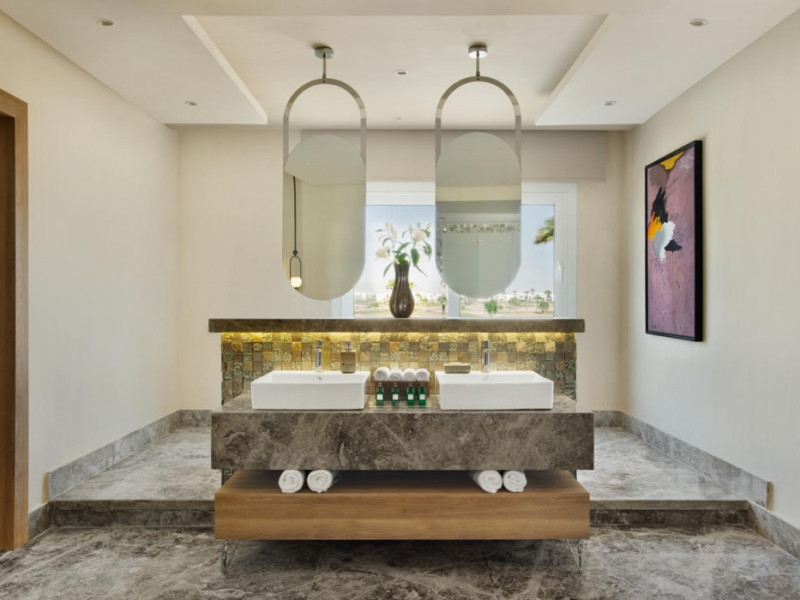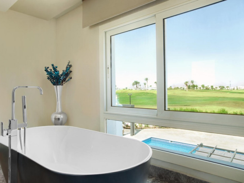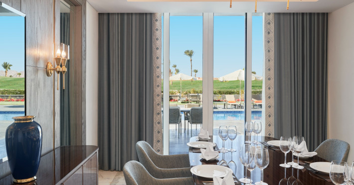 Located in Sharm El Sheikh, Rixos Golf Villas And Suites (Pickalbatros Golf Luxury Suites - All Inclusive) offers an all-inclusive experience for families and couples. The property features an outdoor swimming pool, a fitness centre, a garden, a restaurant, a bar, a sauna, a hammam, and a spa centre. Evening entertainment and room service are available. The air-conditioned rooms include a wardrobe, a coffee machine, a minibar, a safety deposit box, a TV, a terrace, and a private bathroom with a shower. Some rooms are equipped with a kitchen. Breakfast is available daily with buffet, continental and Full English/Irish options. The 24-hour front desk staff speaks Arabic, English, Russian and Turkish. Sharm el-Sheikh International Airport is located 8 km away. The Rixos Golf Villas And Suites Sharm El Sheikh is a hotel.