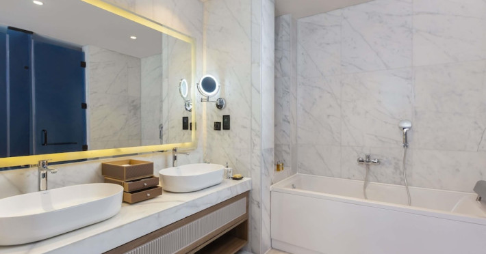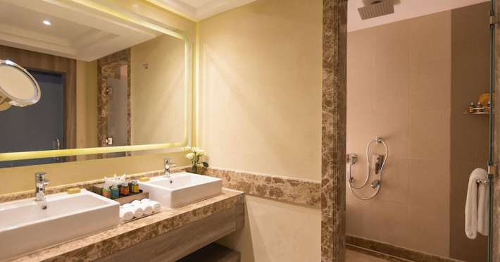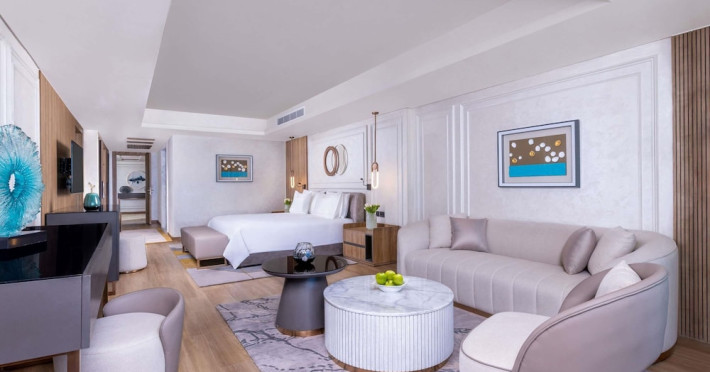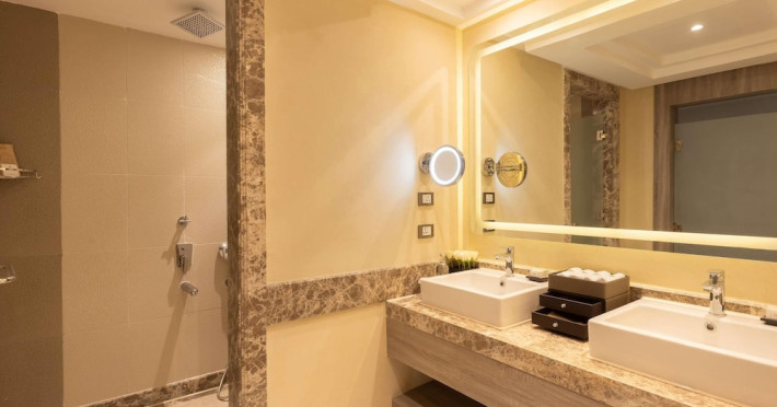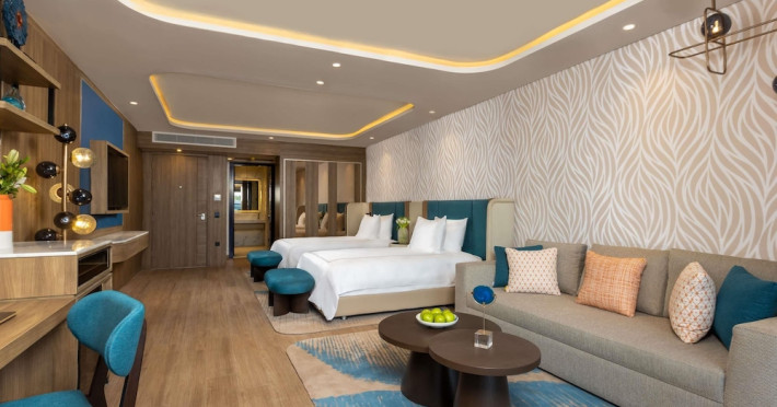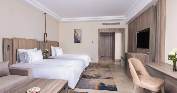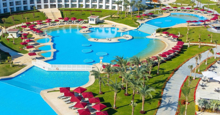 Rixos Radamis Sharm El Sheikh is a 5-star beachfront hotel in Sharm El Sheikh offering an all-inclusive experience with a wide range of activities for families. Guests can enjoy access to a private beach area, outdoor swimming pool, fitness centre, garden, sauna, and hot tub. Dining options include multiple restaurants and coffee shops/cafes, as well as beach, poolside, and standard bars.