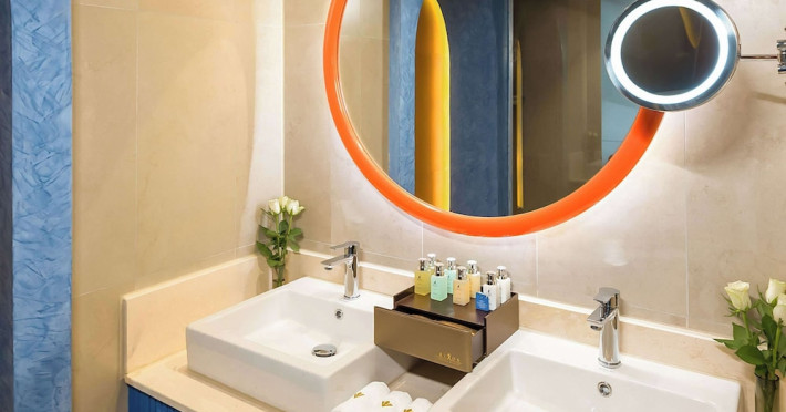 The hotel features guestrooms equipped with air conditioning, LCD televisions with satellite programming, complimentary wireless internet access, laptop-compatible safes, coffee/tea makers, and free minibar items. Private bathrooms include bathtubs or showers, complimentary toiletries, and bidets.