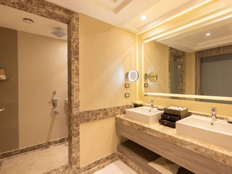 Additional amenities include a 24-hour front desk, concierge services, luggage storage, laundry facilities, a hair salon, and complimentary self-parking. Guests can also enjoy a spa with massages, body treatments, and facials, as well as recreational activities like billiards, table tennis, and darts. A kids club, sports cafés, and game rooms are also available. The hotel is located within driving distance of Sharm El-Sheikh International Convention Center, Sharm El Sheikh Golf Resort, and SOHO Square. Sharm el-Sheikh International Airport is also nearby. The Rixos Radamis Sharm El Sheikh is a hotel.
