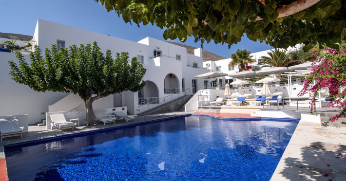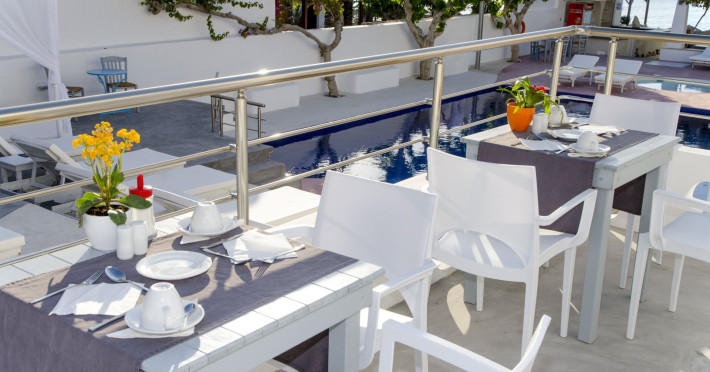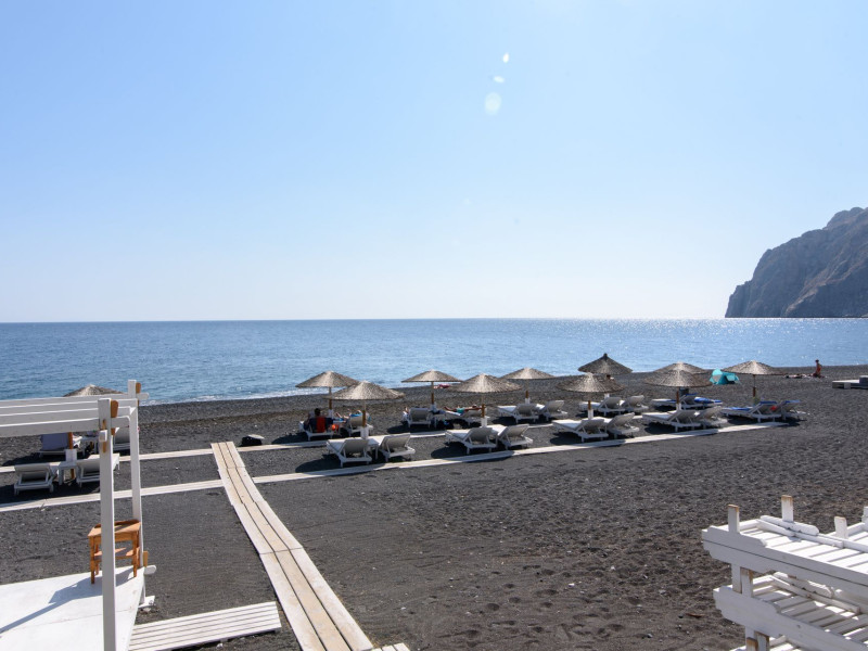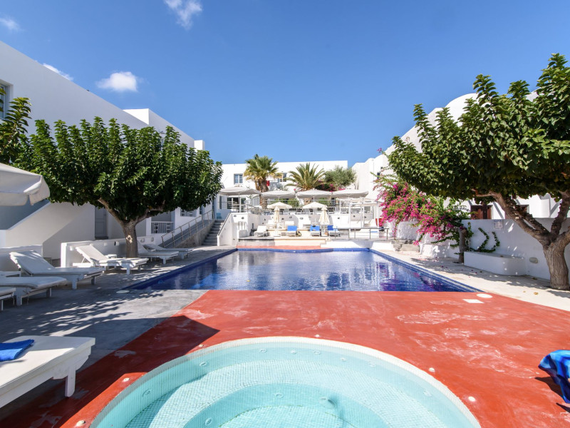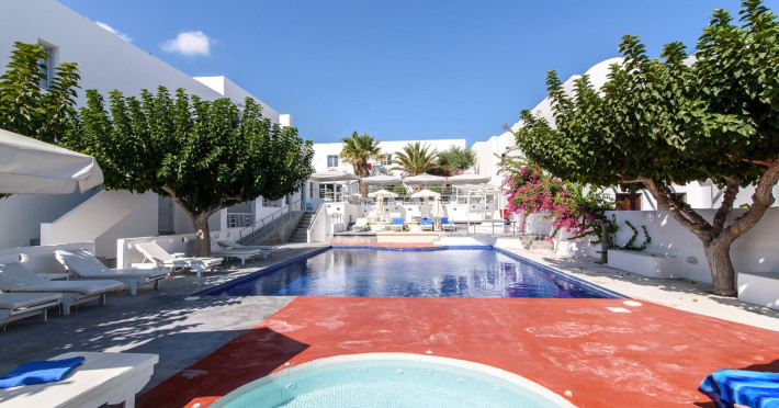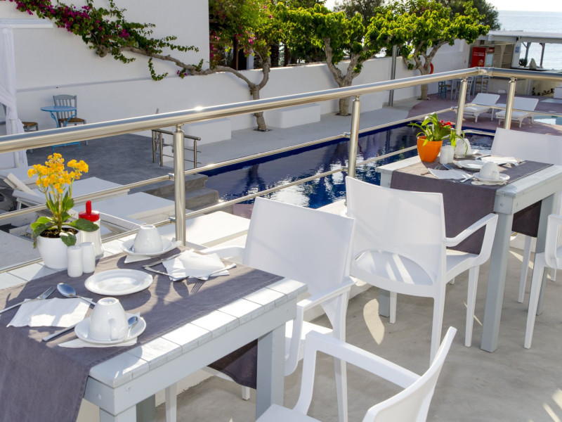 RK BEACH HOTEL **** A fully renovated, in 2013-14, 4 * Boutique Hotel, welcomes you to enjoy privacy, spacious aesthetically decorated rooms and premises along with services provided by our well trained staff.The RK beach Hotel situated on the beach at the center of Kamari Village and with its luxurious chic aesthetic, traditional and unique Cycladic architecture, is ideal for convenient and enjoyable vacations. Exquisitely furnished and elegantly equipped to meet all your needs.Set just on the beach, a short stroll from many restaurants, tavernas, bars and shops, the RK beach Hotel is a popular choice.The hotel’s good-size swimming pool set within its own sun terraces is an excellent alternative to the beach.RK beach Hotel achieves a beautiful balance of comfort, luxury and style. All guests rooms are designed to embody a contemporary minimalist island aesthetic while remaining true to the traditional character and architecture of the Cycladic Islands. All modern amenities and conveniences are provided to ensure an experience of utter comfort, while excellent touches of luxury are added such as Jaccuzzi tubs. We wish you a great accomodation!