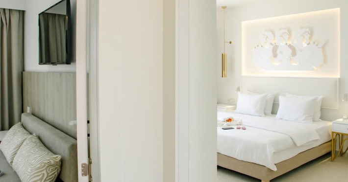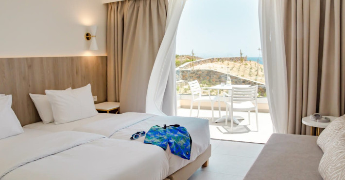 Facilities and services include 24-hour reception, bar, car parking, concierge facilities, conference/banquet facilities (extra charge), gym/fitness facilities, laundry facilities (extra charge), massage (extra charge), outdoor pool, restaurant, sauna (extra charge) and wireless internet. Room features include air conditioning, Wi-Fi, TV, telephone, coffee/tea maker, hairdryer, and bathroom with shower. Address: Koutsounari, Koutsounari, 72200, Greece