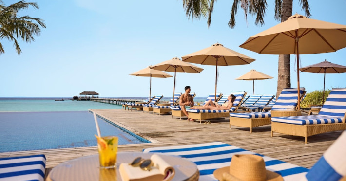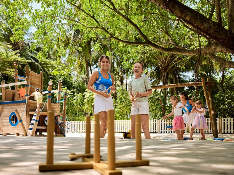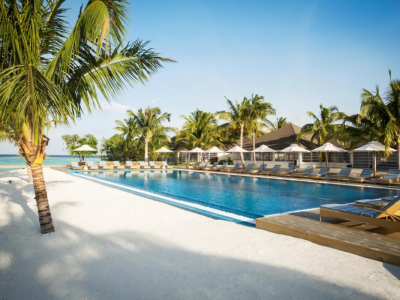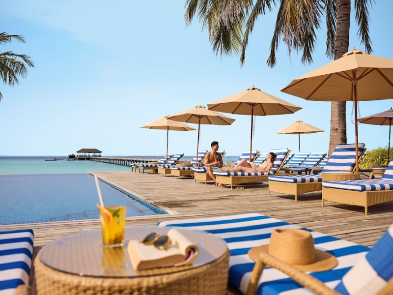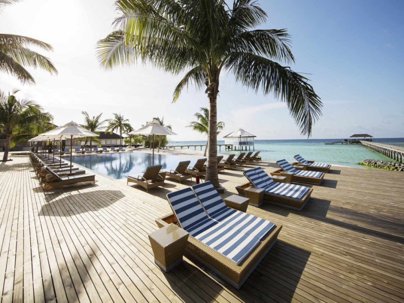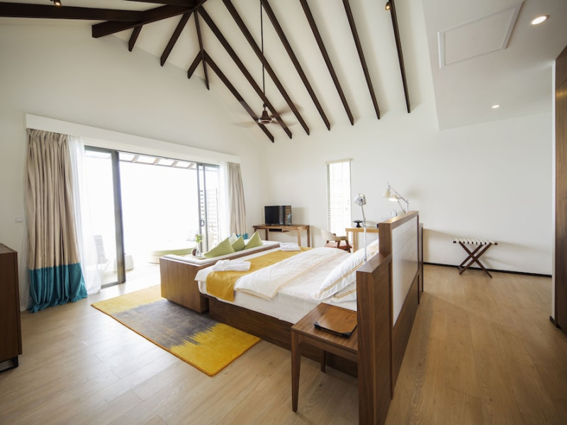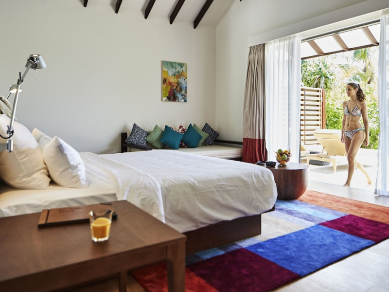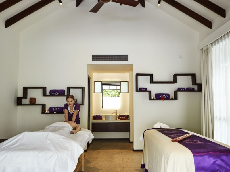 ROBINSON NOONU - All inclusive, a beachfront 5-star property in Manadhoo, offers all-inclusive rates covering meals and beverages at onsite dining establishments (charges may apply for some restaurants, special dinners, certain beverages, and other amenities). The resort features 3 restaurants (including Teppanyaki), 2 bars/lounges, a beach bar, and a poolside bar. A complimentary buffet breakfast is served daily (8:00 AM - 11:00 AM), and 24-hour room service is available. Amenities include a spa (massages, body treatments, facials), health club, outdoor pool, sauna, complimentary Wi-Fi, concierge services, babysitting (surcharge), a 24-hour front desk, multilingual staff, luggage storage, a kids' club, and a nightclub. The 150 air-conditioned rooms offer private balconies or patios, flat-screen TVs, iPod docking stations, private bathrooms with separate bathtubs and showers, designer toiletries, and bidets. Recreational activities include billiards and table tennis. Nearby points of interest include Velaa Private Island (10.4 km), Orimasvaru Island Pier (10.6 km), Randheli Arrival Jetty (13 km), and Grand Friday Mosque (13.2 km). The preferred airport is Velana Intl. Airport (MLE), 181.6 km away. Naifaru (LMV-Madivaru) airport is also nearby (39.1 km). The Robinson Noonu is a hotel.
