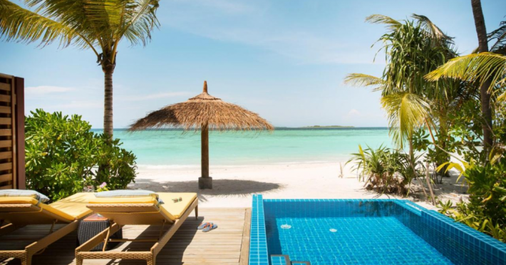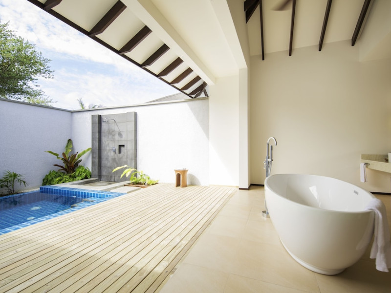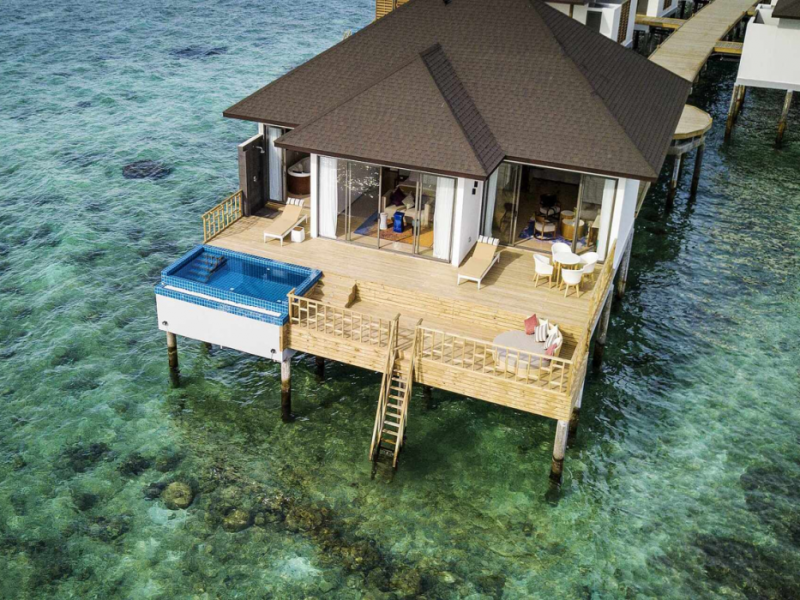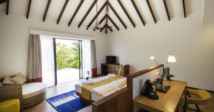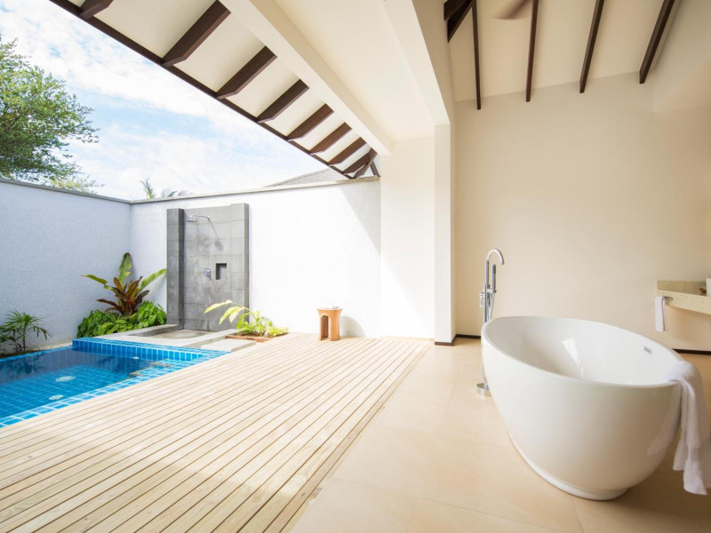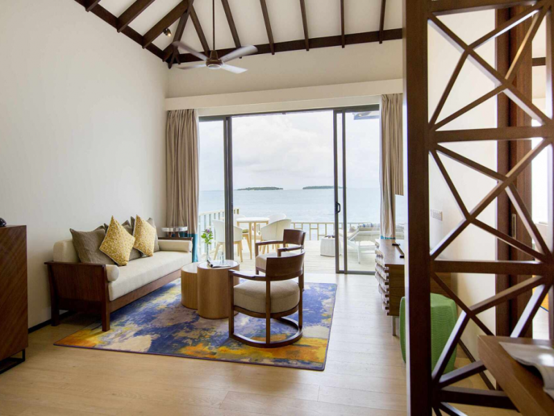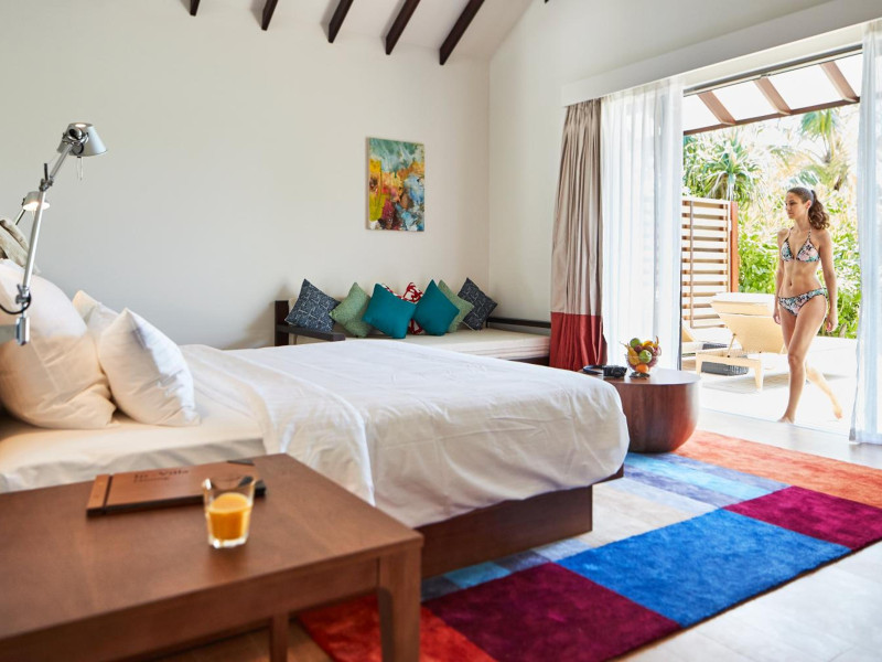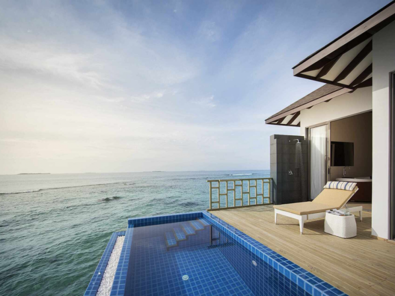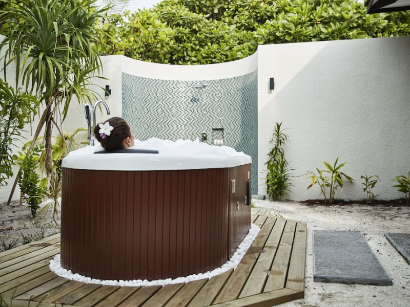 ROBINSON NOONU - All inclusive, a beachfront 5-star property in Manadhoo, offers all-inclusive rates covering meals and beverages at onsite dining establishments (charges may apply for some restaurants, special dinners, certain beverages, and other amenities). The resort features 3 restaurants (including Teppanyaki), 2 bars/lounges, a beach bar, and a poolside bar. A complimentary buffet breakfast is served daily (8:00 AM - 11:00 AM), and 24-hour room service is available. Amenities include a spa (massages, body treatments, facials), health club, outdoor pool, sauna, complimentary Wi-Fi, concierge services, babysitting (surcharge), a 24-hour front desk, multilingual staff, luggage storage, a kids' club, and a nightclub. The 150 air-conditioned rooms offer private balconies or patios, flat-screen TVs, iPod docking stations, private bathrooms with separate bathtubs and showers, designer toiletries, and bidets. Recreational activities include billiards and table tennis. Nearby points of interest include Velaa Private Island (10.4 km), Orimasvaru Island Pier (10.6 km), Randheli Arrival Jetty (13 km), and Grand Friday Mosque (13.2 km). The preferred airport is Velana Intl. Airport (MLE), 181.6 km away. Naifaru (LMV-Madivaru) airport is also nearby (39.1 km). The Robinson Noonu is a hotel.