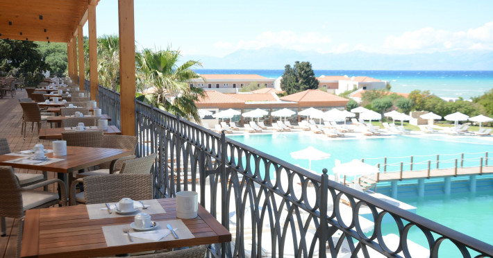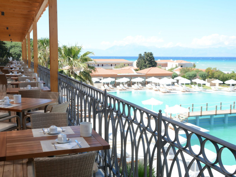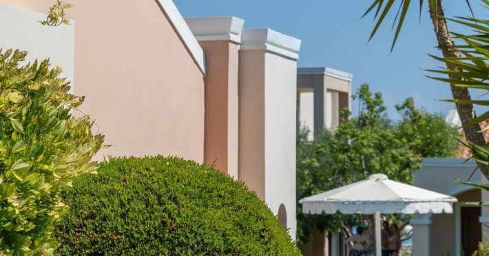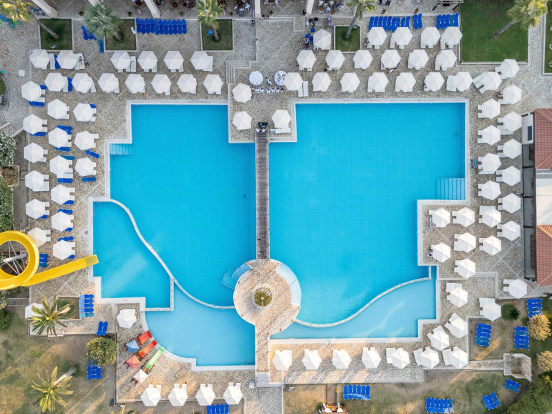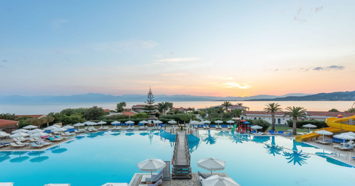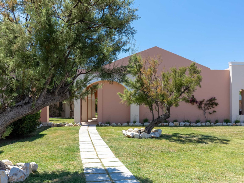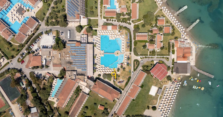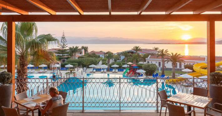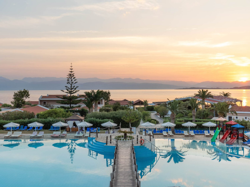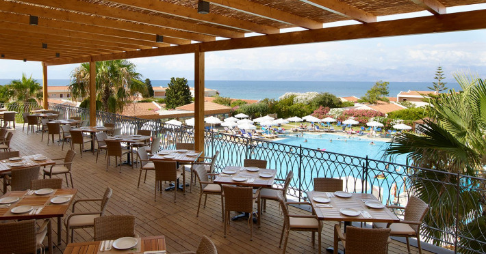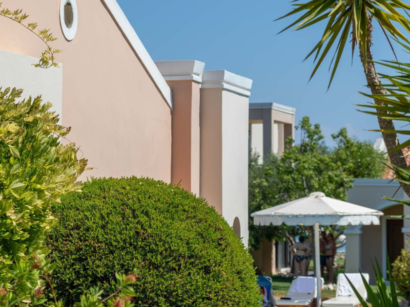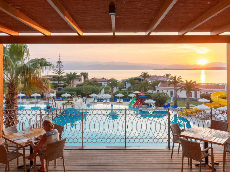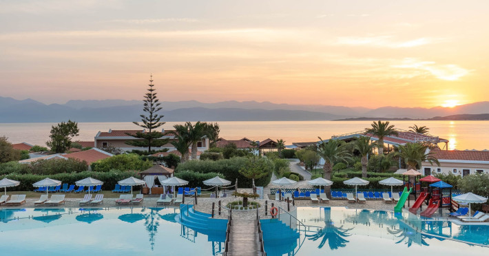 The 5-star Roda Beach Resort is located 500 metres from Roda Village, at the north-eastern coast of Corfu. Spread out into 25 acres of beautiful gardens, it reaches its own sandy beach and the turquoise of the Ionian Sea.The resort has 6 outdoor swimming pools with sea water, all with free sun-lounging facilities. The warmly decorated rooms are in the main building or scattered across the beautiful gardens. They all have individually controlled air-conditioning and heating, mini fridge, satellite TV and a balcony or terrace with sea or garden view. The all-inclusive Roda Beach Resort offers 4 restaurants and 5 bars. The main restaurant serves an American breakfast buffet and rich buffets for lunch and dinner with local and international cuisine. Guests can also choose to dine at the Italian, Asian and Greek A la carte-restaurants (reservation requirement).The Roda Beach Resort & Spa offers an indoor swimming pool and a variety of facial and body treatments. The wealth of sports facilities offered, includes, outdoor fitness area fully equipped, mini golf, tennis, beach volley, canoe and pedal boat. Two children’s pools with water slides are also available, as well as a mini club for our young guestsRoda Beach is 36 km from Corfu Town, Corfu airport and port. Free guest parking is available on site.