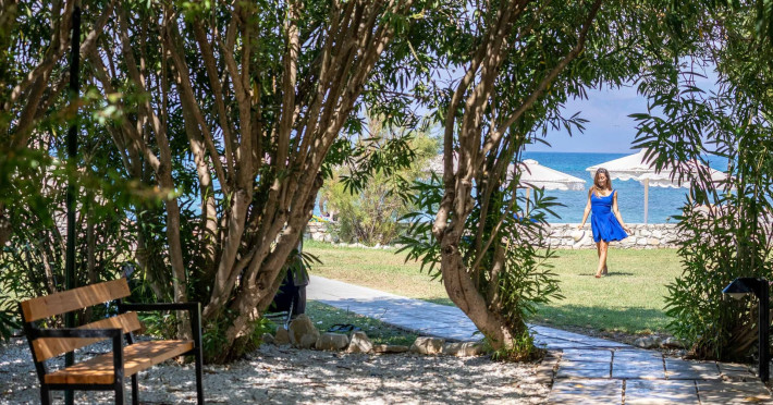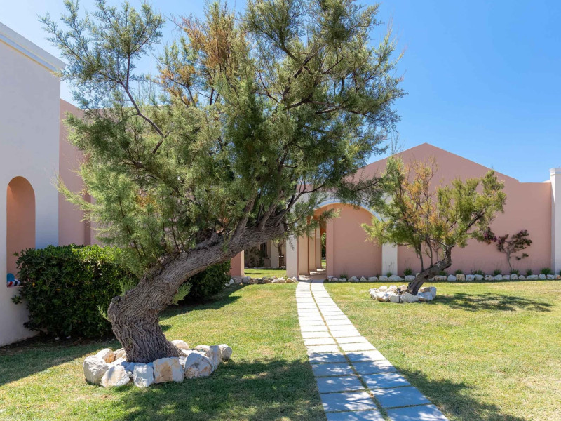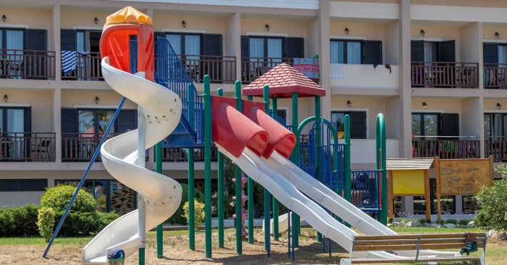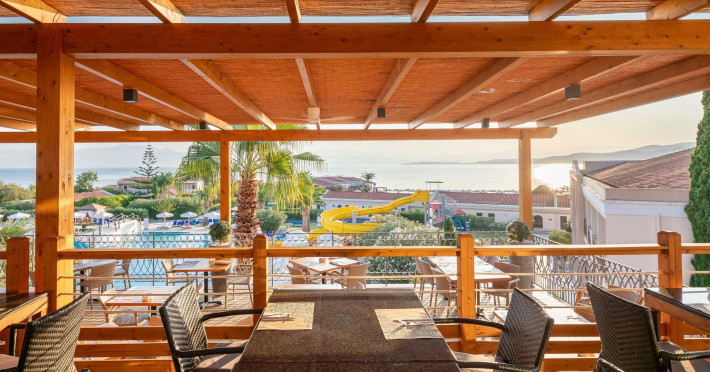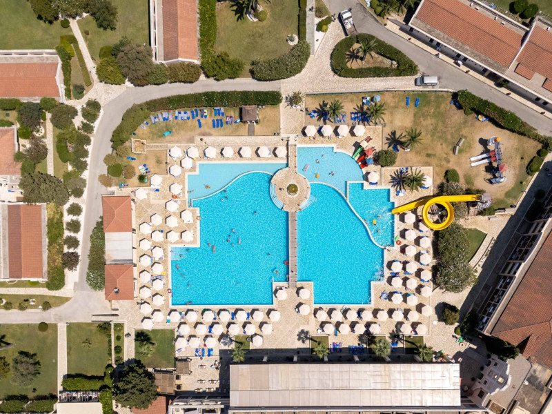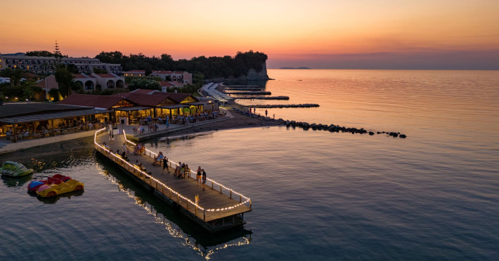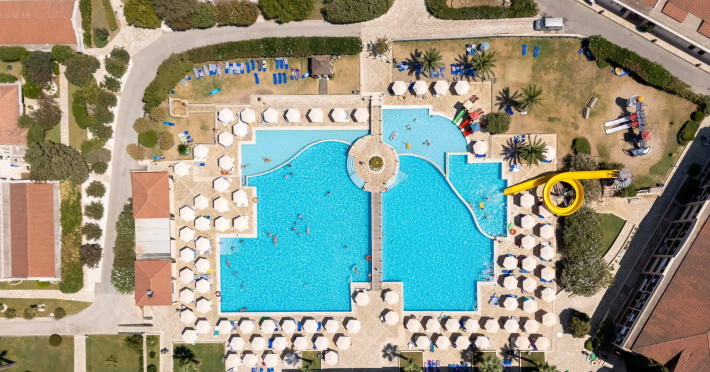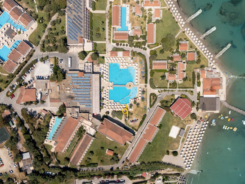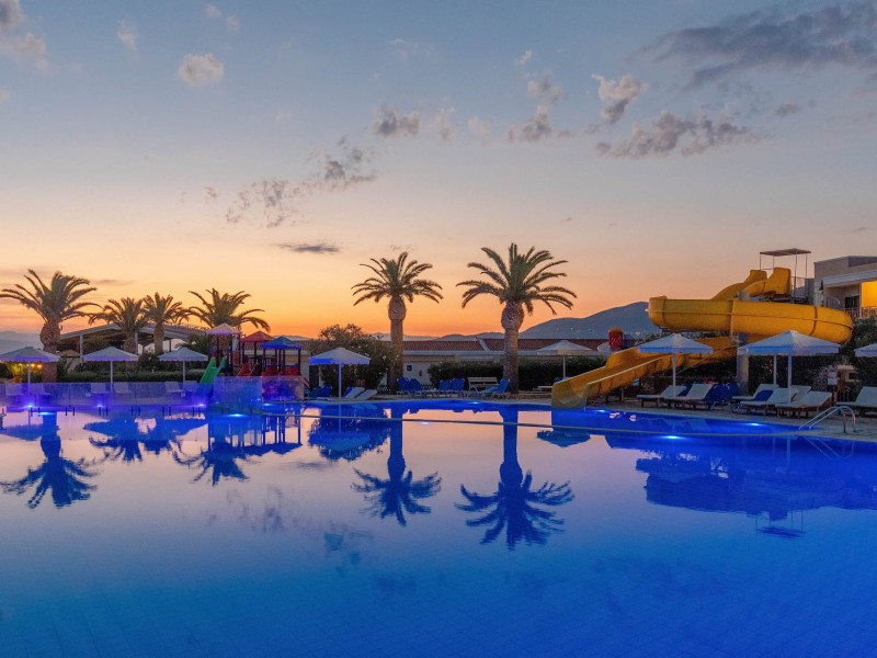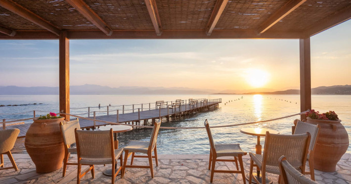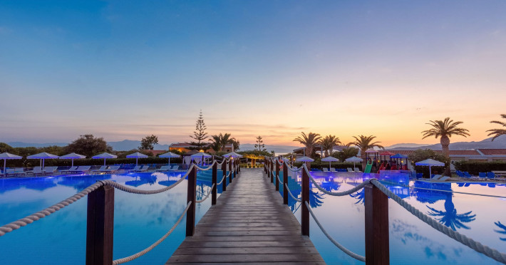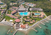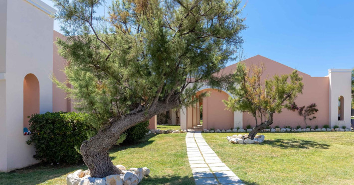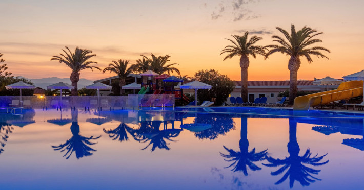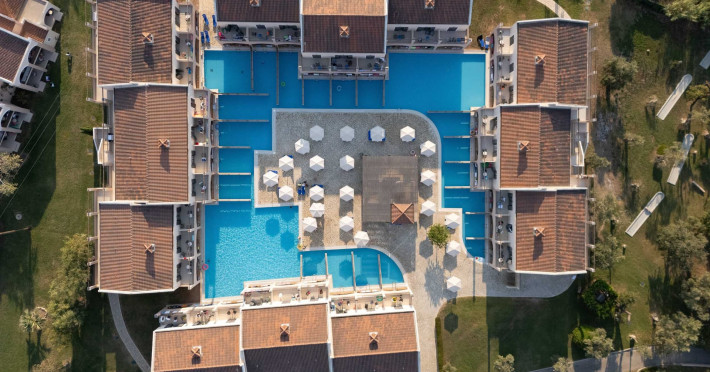 The 5-star Roda Beach Resort is located 500 metres from Roda Village, at the north-eastern coast of Corfu. Spread out into 25 acres of beautiful gardens, it reaches its own sandy beach and the turquoise of the Ionian Sea.The resort has 6 outdoor swimming pools with sea water, all with free sun-lounging facilities. The warmly decorated rooms are in the main building or scattered across the beautiful gardens. They all have individually controlled air-conditioning and heating, mini fridge, satellite TV and a balcony or terrace with sea or garden view. The all-inclusive Roda Beach Resort offers 4 restaurants and 5 bars. The main restaurant serves an American breakfast buffet and rich buffets for lunch and dinner with local and international cuisine. Guests can also choose to dine at the Italian, Asian and Greek A la carte-restaurants (reservation requirement).The Roda Beach Resort & Spa offers an indoor swimming pool and a variety of facial and body treatments. The wealth of sports facilities offered, includes, outdoor fitness area fully equipped, mini golf, tennis, beach volley, canoe and pedal boat. Two children’s pools with water slides are also available, as well as a mini club for our young guestsRoda Beach is 36 km from Corfu Town, Corfu airport and port. Free guest parking is available on site.