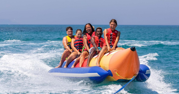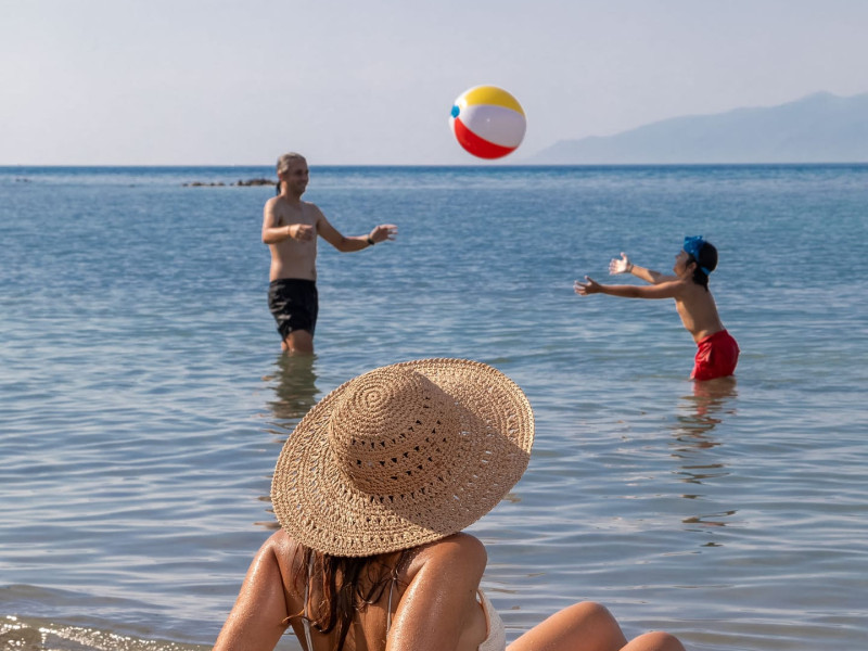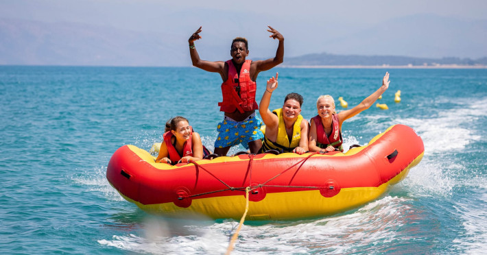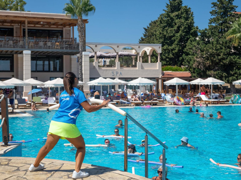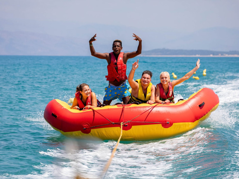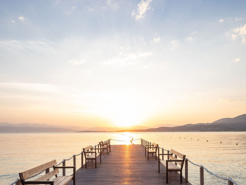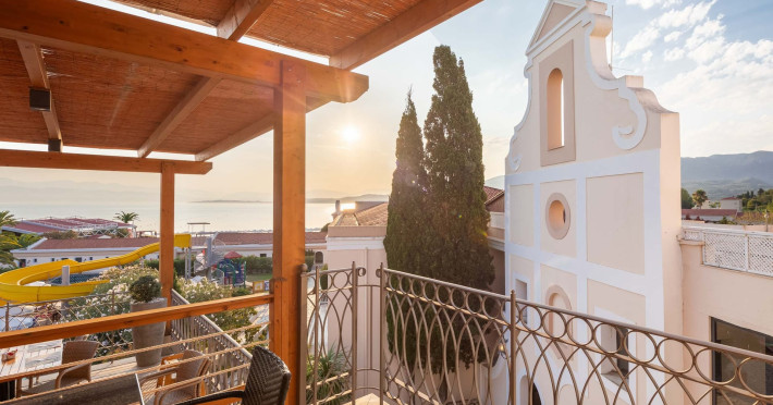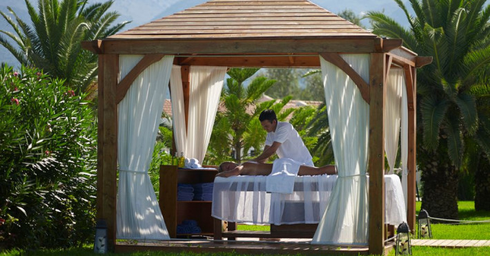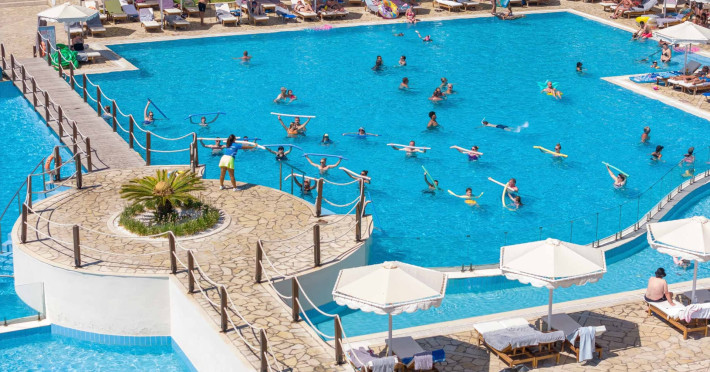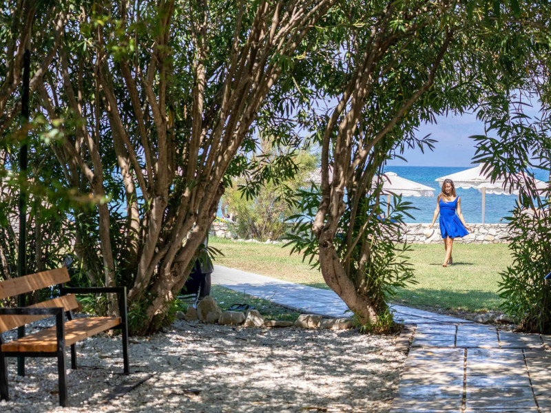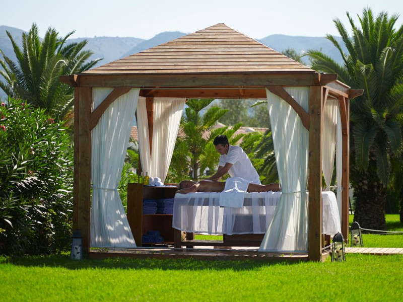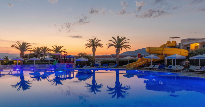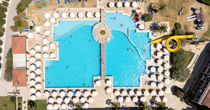 The 5-star Roda Beach Resort is located 500 metres from Roda Village, at the north-eastern coast of Corfu. Spread out into 25 acres of beautiful gardens, it reaches its own sandy beach and the turquoise of the Ionian Sea.The resort has 6 outdoor swimming pools with sea water, all with free sun-lounging facilities. The warmly decorated rooms are in the main building or scattered across the beautiful gardens. They all have individually controlled air-conditioning and heating, mini fridge, satellite TV and a balcony or terrace with sea or garden view. The all-inclusive Roda Beach Resort offers 4 restaurants and 5 bars. The main restaurant serves an American breakfast buffet and rich buffets for lunch and dinner with local and international cuisine. Guests can also choose to dine at the Italian, Asian and Greek A la carte-restaurants (reservation requirement).The Roda Beach Resort & Spa offers an indoor swimming pool and a variety of facial and body treatments. The wealth of sports facilities offered, includes, outdoor fitness area fully equipped, mini golf, tennis, beach volley, canoe and pedal boat. Two children’s pools with water slides are also available, as well as a mini club for our young guestsRoda Beach is 36 km from Corfu Town, Corfu airport and port. Free guest parking is available on site.