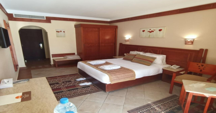 Facilities and services include aqua park, swimming pools (heated during winter), private beach, spa center, gym, tennis, football, basketball court, diving center, water sports, limousine service, tennis table, billiards, medical service, laundry service, Wi-Fi, conference room, ATM and beauty center.Rooms feature shower, hairdryer, air conditioning, telephone, safe, satellite TV and kettle.In case of choosing the option of "all inclusive":The All Inclusive-concept includes all meals (breakfast, lunch, dinner and snacks) and mealtime drinks such as soft drinks, beer, wine, water and alcoholic drinks, all of local brands. Drinks are served from morning until late evening (approx until 22.00 -24.00 hrs). Opening times vary between different hotels. In certain hotels the activities program is also included.**Regency Plaza Hotels Mobile Application:**The application allows guests to access all hotel facilities, make reservations at à la carte restaurants, stay informed about the daily animation program, and communicate directly with hotel staff to address any concerns promptly. Available in English, Russian, and Italian, the application ensures seamless communication and accessibility for our diverse international guests.Address: Qesm Sharm Ash Sheikh, 8754010, Egipto Sharm el Sheikh, Egypt.