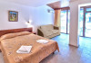APARTAMENT CU 2 DORMITOARE: Suprafata aproximativa 50 mp. Apartamentelesunt confortabile si dotate cu aer conditionat, constand din doua dormitoareseparate + un pat single, un living cu canapea extensibila si zona comuna deluat masa cu bucatarie complet utilata (fierbator, frigider, plita, hota, veselasi chiuveta). Fiecare dormitor are baie proprie, TV LED cu cablu, Wi-Fi gratuitsi telefon. Terasa mare cu mobilier de exterior. Capacitate maxima: 4 adulti si2 copii sau 5 adulti si 1 copil.