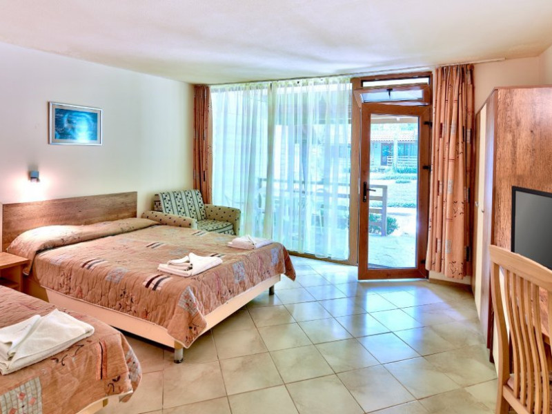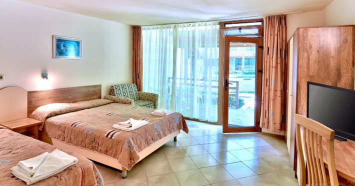 Despre complex:Restaurantul principal Ropotamo dispune de o sala cu aer conditionat, cu zonaacoperita si terase in aer liber cu vedere la mare, parc si scena, avand ocapacitate de 550 locuri. Se ofera bufet bogat cu produse ecologice,show-cooking si gratar pe carbuni. Complexul are doua piscine cu salvamari(08:00-18:00), sezlonguri gratuite la piscina si Wi-Fi gratuit in zona.