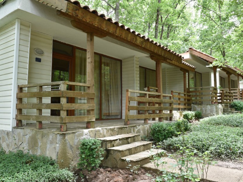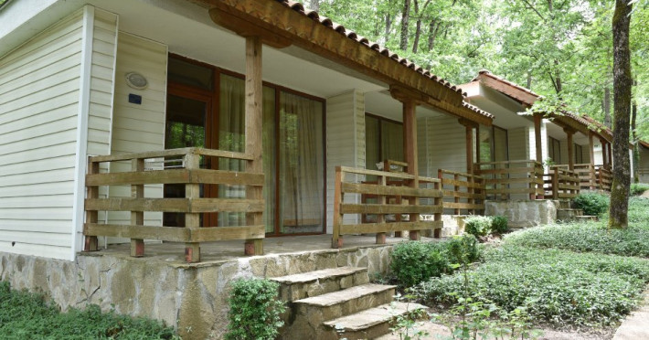 BUNGALOW: Suprafata aproximativa 25 mp. Este dotat cu un pat dublu, un pat single siun fotoliu extensibil. Camera este open-space, cu aer conditionat, mobilierconfortabil, chicineta utilata cu fierbator electric, frigider, plita, hota, veselasi chiuveta. Toate camerele au baie proprie, TV LED cu cablu, Wi-Fi gratuit sitelefon. Terasa mare cu vedere panoramica spre copacii seculari, dotata cumobilier de exterior. Capacitate maxima: 3 adulti si 1 copil sau 2 adulti si 2copii.