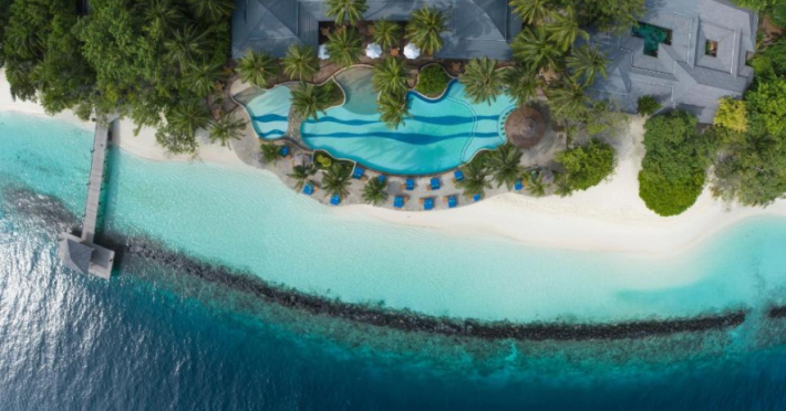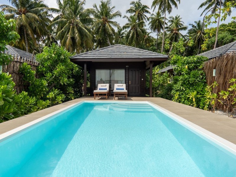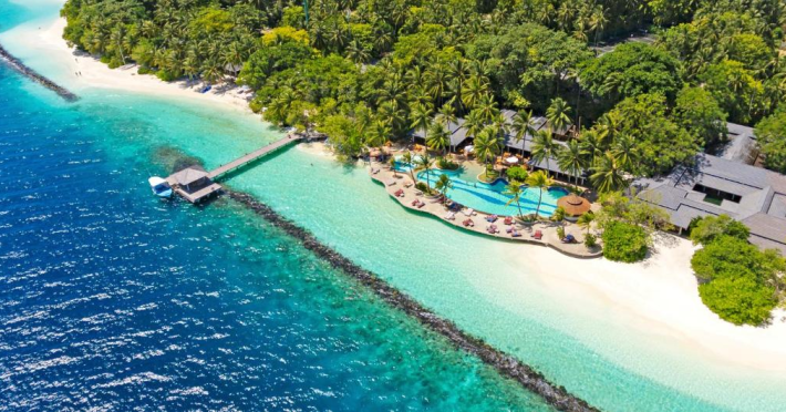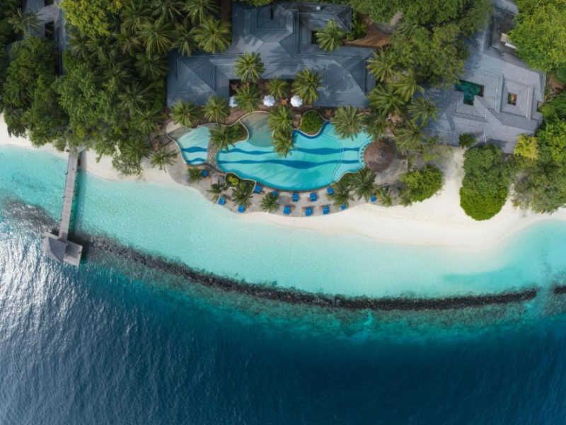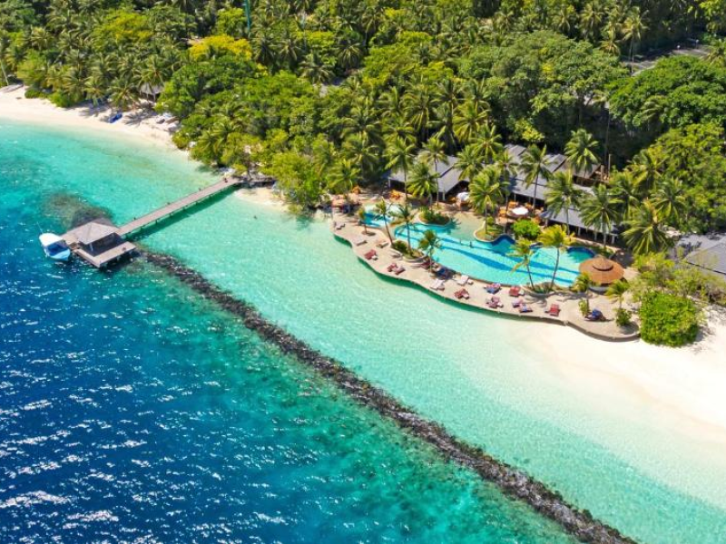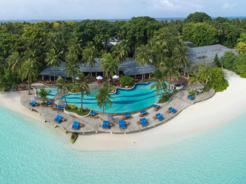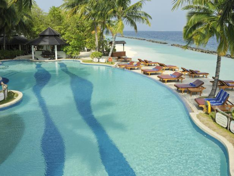 This luxury hotel is situated on the island paradise of Horubadhoo, which measures 800 m in length and 220 m in breadth and is found in the relatively little-known and barely developed eastern part of the Baa Atoll. By the hotel, guests will find tropical vegetation, a sandy beach sloping gently into the turquoise lagoon and a reef 10-80 m away ideally suited for bathing and snorkelling.