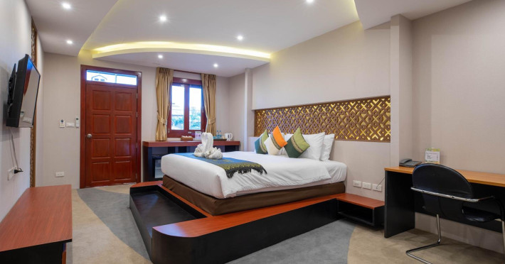 Located in Patong, Royal Phawadee Village offers comfortable accommodation with private balconies in a tropical garden setting, 150 metres from Patong Beach. Bangla Road and Jungceylon Shopping Mall are a 10-minute walk away. Guests can enjoy the outdoor swimming pool and fitness center. Rooms are air-conditioned and feature complimentary Wi-Fi, cable TV, and a refrigerator. Bathrooms include showers, complimentary toiletries, and hair dryers. Dining options include Lai Thai Restaurant (Thai cuisine), La Boucherie Steakhouse, a bar/lounge, and a poolside bar. Room service is available during limited hours, and continental breakfast is offered for a fee. The hotel provides 24-hour security, daily housekeeping, concierge services, a business center, complimentary newspapers in the lobby, and dry cleaning/laundry services. An airport shuttle is available for a surcharge, and free self-parking is provided. Phuket International Airport is approximately a 45-minute drive away. The Royal Phawadee Village is a hotel. Located in Beach - Patong Beach area.