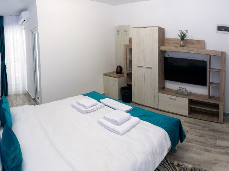 Va informam ca incepand cu sezonul 2023, se va incasa la receptie in momentul cazarii taxa de statiune, reprezentand 1% din valoarea tarifului de cazare fara T.V.A, pentru fiecare noapte de cazare conform HCL NR. 614/27.12.2022. DOTARI SI SERVICII Hotelul are 4 etaje si pune la dispozitia oaspetilor sai 44 de spatii de cazare, dintre care 41 sunt camere duble si 3 garsoniere, toate amenajate elegant si dotate cu facilitati moderne. Ofera camere cu vedere frontala la mare, vedere laterala sau vedere la oras. Balcon au doar camerele de la etajele superioare, la parter nu au balcon. Garsonierele ofera vedere frontala mare si balcon. La fiercare 2 zile se vor schimba prosoapele si la 4 zile zile lenjeria. In afara intervalului mentionat, schimbarea lenjeriei la cerere va fii contra cost. Ruxo Hotel are o colaborare special cu Taboo Beach, situat la 350 de metri de hotel. Turistii hotelului beneficiaz de un sezlong gratuit la fiecare doua sezlonguri comandate. Parcare proprie gratuita in limita disponibilitatii. Nu se accepta animale de companie. DOTARI CAMERE Camerele duble au vedere frontala la mare, laterala sau spre oras si balcon doar la etaj; pat matrimonial (160x200 cm), baie proprie cu walk-in shower, produse de igiena in baie (gel de dus, sampon, hartie igienic), prosoape (fata, corp, picioare), TV LED, minibar, uscator de par, aer conditionat. Garsonierele au vedere frontala la mare si balcon, pat matrimonial (160x200 cm) si canapea extensibila (160x200 cm), baie proprie cu walk-in shower produse de igiena in baie (gel de dus,sampon, hartie igienica), prosoape (fata, corp, picioare), TV LED, minibar, uscator de par, aer conditionat.