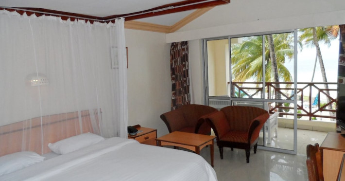 Located on Bamburi Beach, Sai Rock Beach Hotel & Spa offers ocean views and features 81 air-conditioned rooms with fireplaces. Guests can enjoy a range of amenities including a restaurant, coffee shop/cafe, bar/lounge, and poolside bar, as well as room service during limited hours. A complimentary buffet breakfast is served daily from 7 AM to 10 AM. The hotel boasts 2 spa tubs, a water park (surcharge), and a health club, along with onsite massage, body treatment, and facial services. Additional amenities include complimentary wireless internet access, concierge services, babysitting (surcharge), and an area shuttle (surcharge). For convenience, the hotel offers complimentary wired internet access, express check-in, and express check-out. A roundtrip airport shuttle is available for a surcharge, and free valet parking is provided. Nearby attractions include Haller Park and Nguuni Nature Sanctuary. The Sai Rock Beach Hotel & Spa is a hotel.