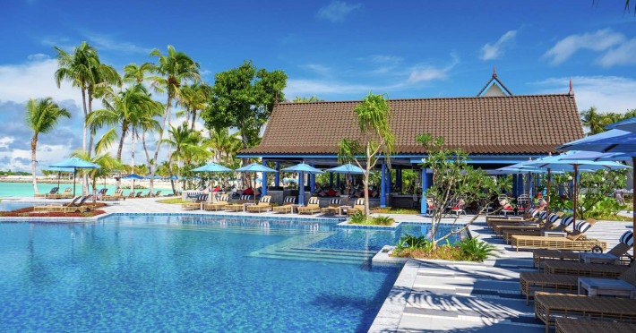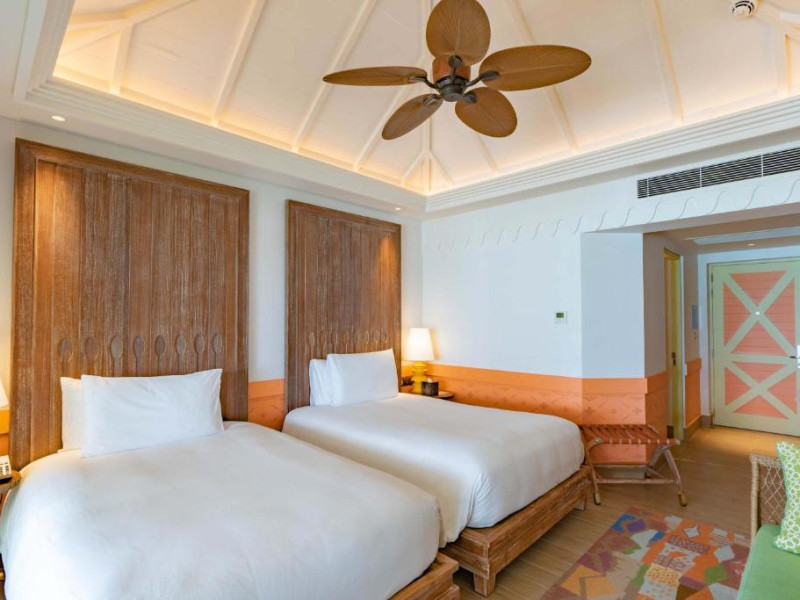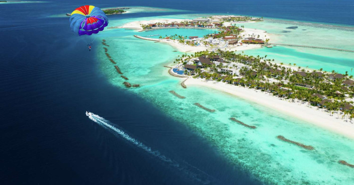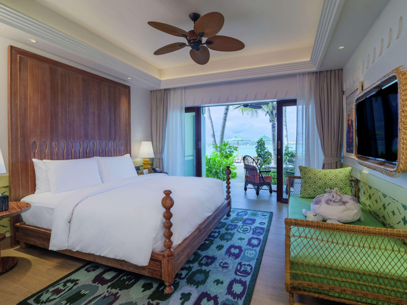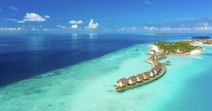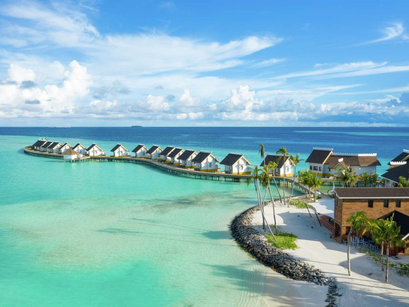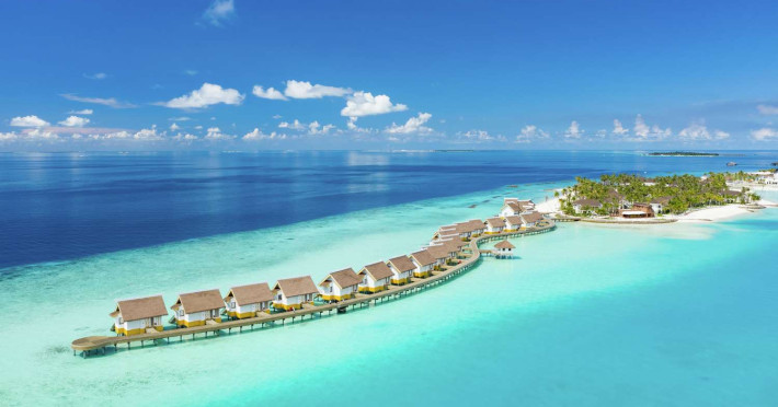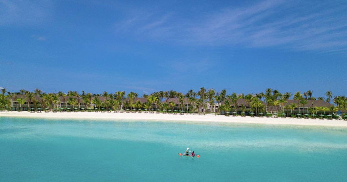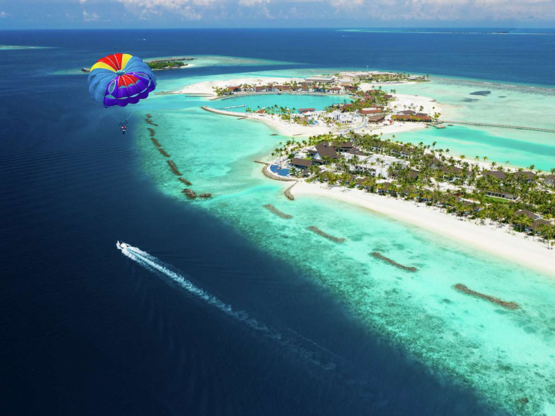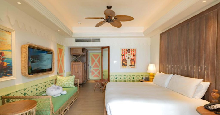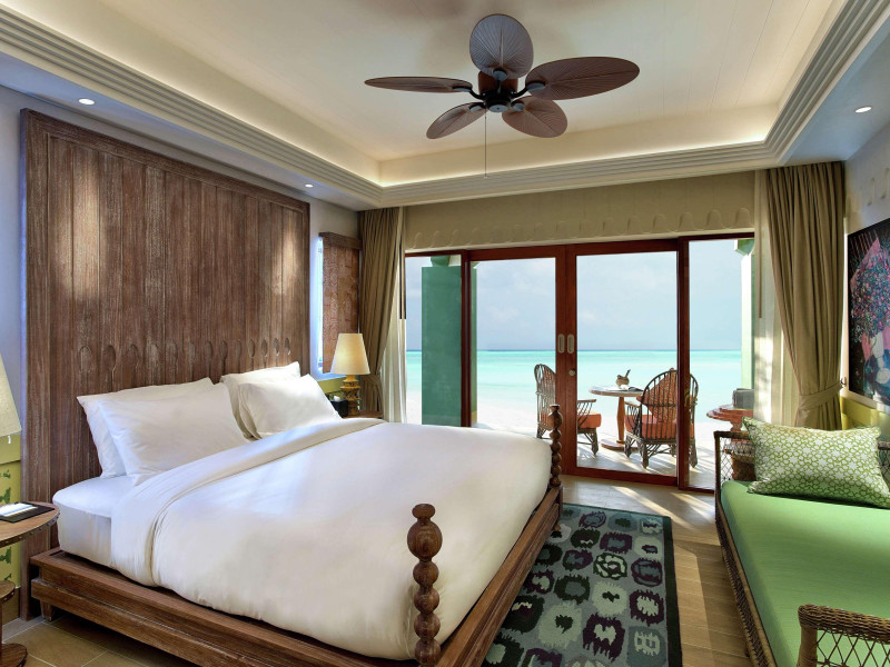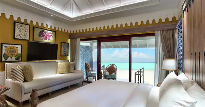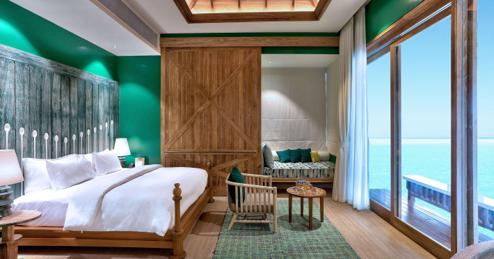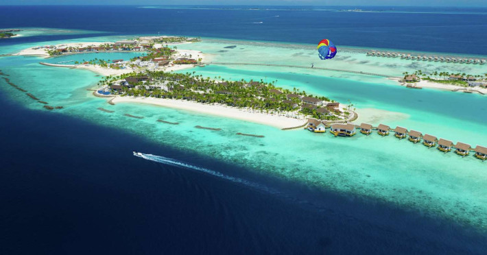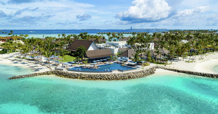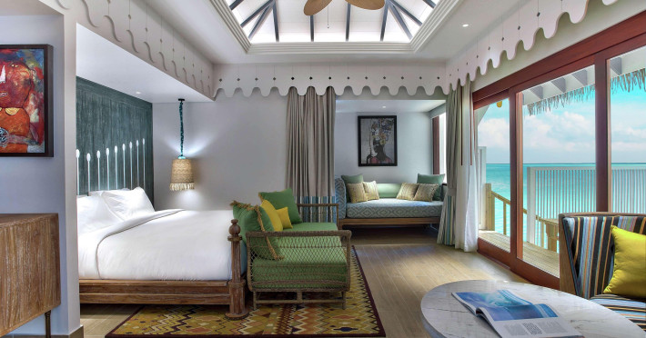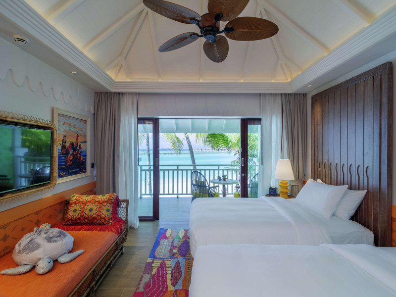 SAii Lagoon Maldives, Curio Collection by Hilton, is a luxurious beachfront resort located in Emboodhoo Lagoon, a 15-minute speedboat ride from Velana International Airport (MLE). The resort offers various room types, including rooms with ocean views, beach villas, and overwater villas (some with private pools). All rooms feature boho-chic decor, natural textures, free Wi-Fi, HDTV, complimentary tea and coffee, a large bathroom with a waterfall shower, and a furnished balcony or deck. Dining options include Miss Olive Oyl (Mediterranean seafood), Mr. Tomyam (Thai fusion), bean/Co (coffee and tea), and Café del Mar (gourmet breakfast). Resort amenities include an infinity pool, a 24-hour fitness center, a full-service spa, a business center, concierge services, babysitting (surcharge), and bicycle rentals. All-inclusive rates are available. The resort also offers proximity to CROSSROADS Island, providing access to shopping, dining, and entertainment. The resort has approximately 3509 square feet of event space. The SAii Lagoon Maldives, Curio Collection by Hilton is a hotel.