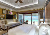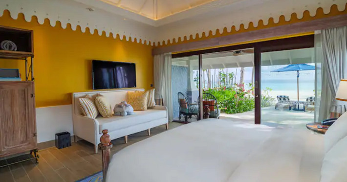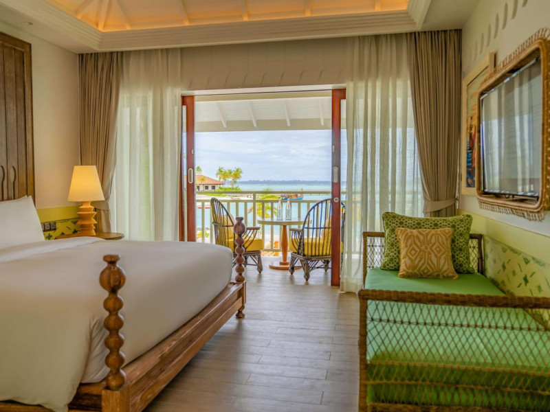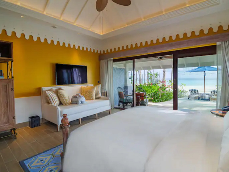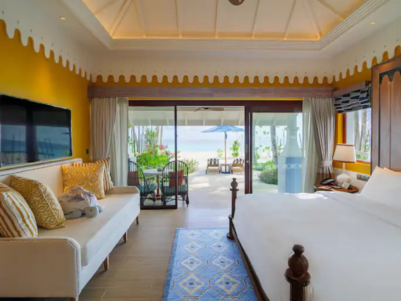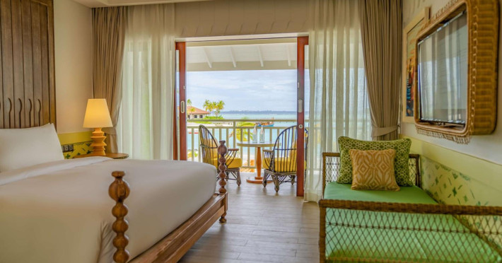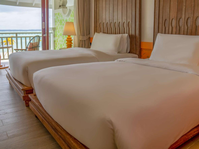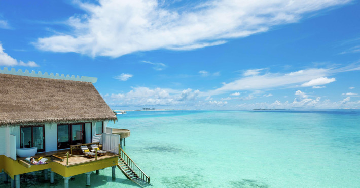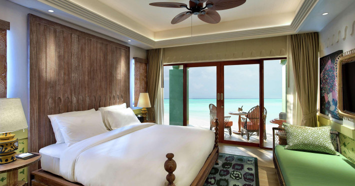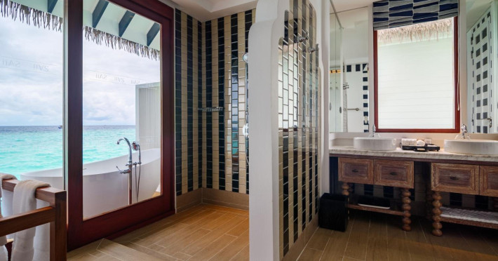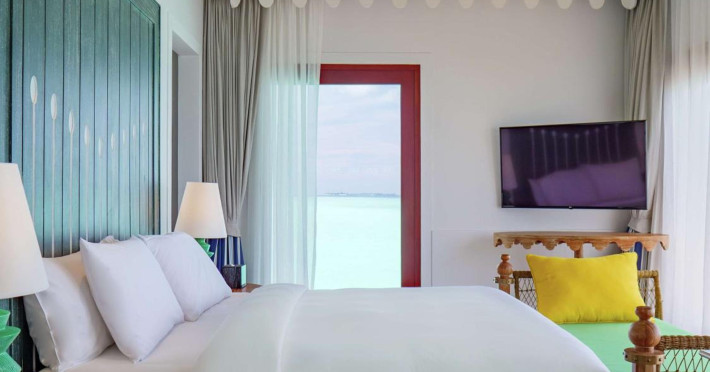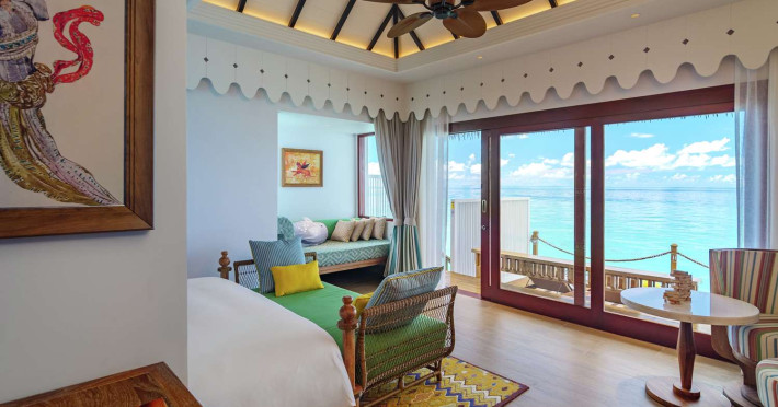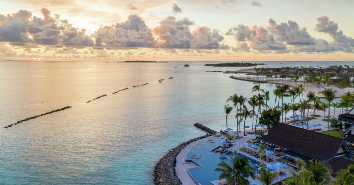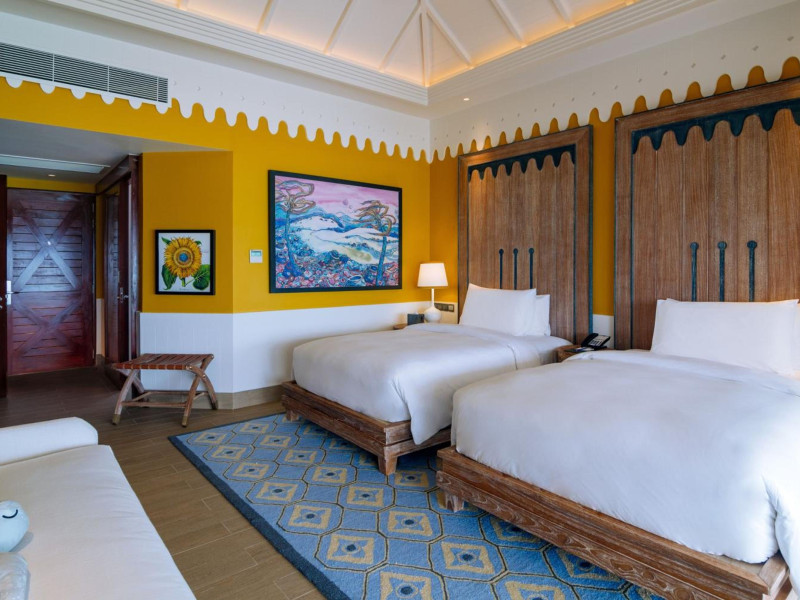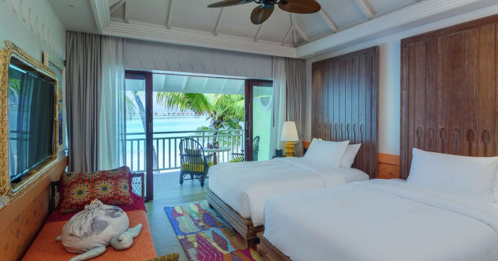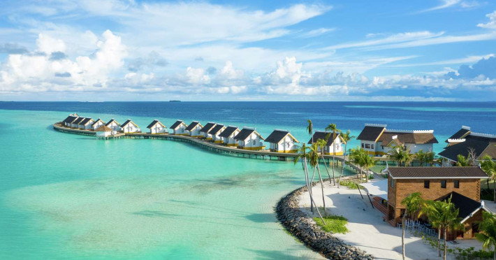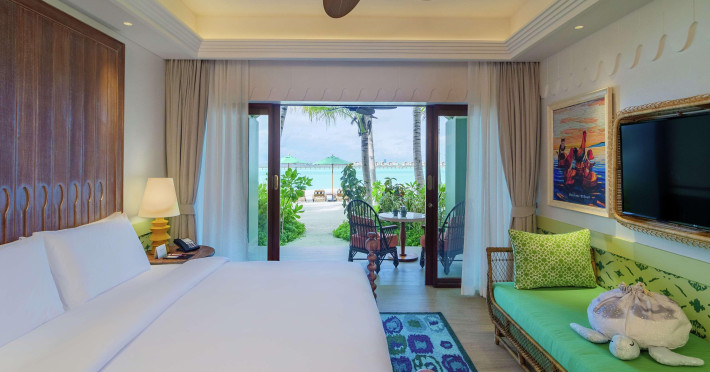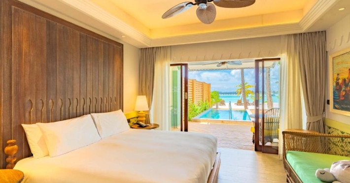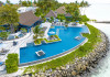 SAii Lagoon Maldives, Curio Collection by Hilton, is a luxurious beachfront resort located in Emboodhoo Lagoon, a 15-minute speedboat ride from Velana International Airport (MLE). The resort offers various room types, including rooms with ocean views, beach villas, and overwater villas (some with private pools). All rooms feature boho-chic decor, natural textures, free Wi-Fi, HDTV, complimentary tea and coffee, a large bathroom with a waterfall shower, and a furnished balcony or deck. Dining options include Miss Olive Oyl (Mediterranean seafood), Mr. Tomyam (Thai fusion), bean/Co (coffee and tea), and Café del Mar (gourmet breakfast). Resort amenities include an infinity pool, a 24-hour fitness center, a full-service spa, a business center, concierge services, babysitting (surcharge), and bicycle rentals. All-inclusive rates are available. The resort also offers proximity to CROSSROADS Island, providing access to shopping, dining, and entertainment. The resort has approximately 3509 square feet of event space. The SAii Lagoon Maldives, Curio Collection by Hilton is a hotel.