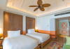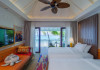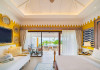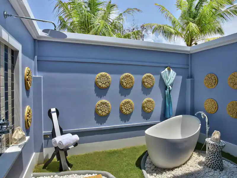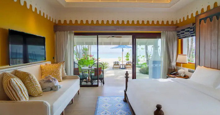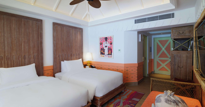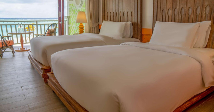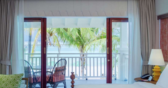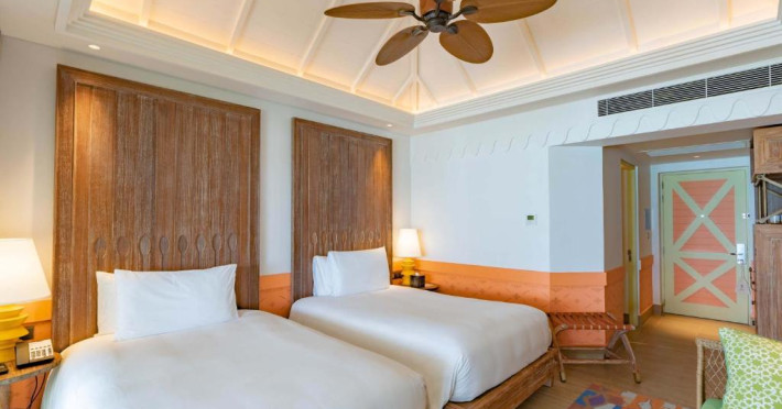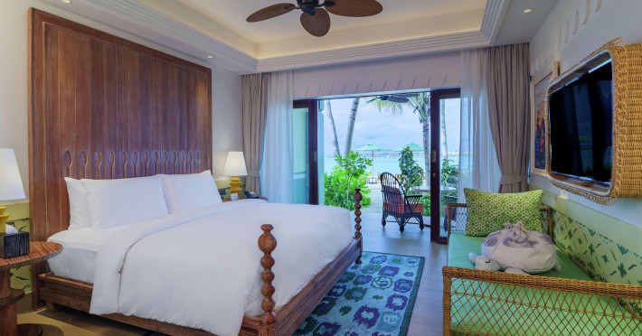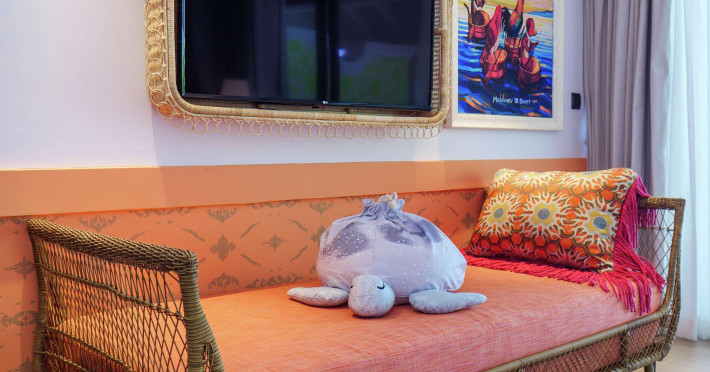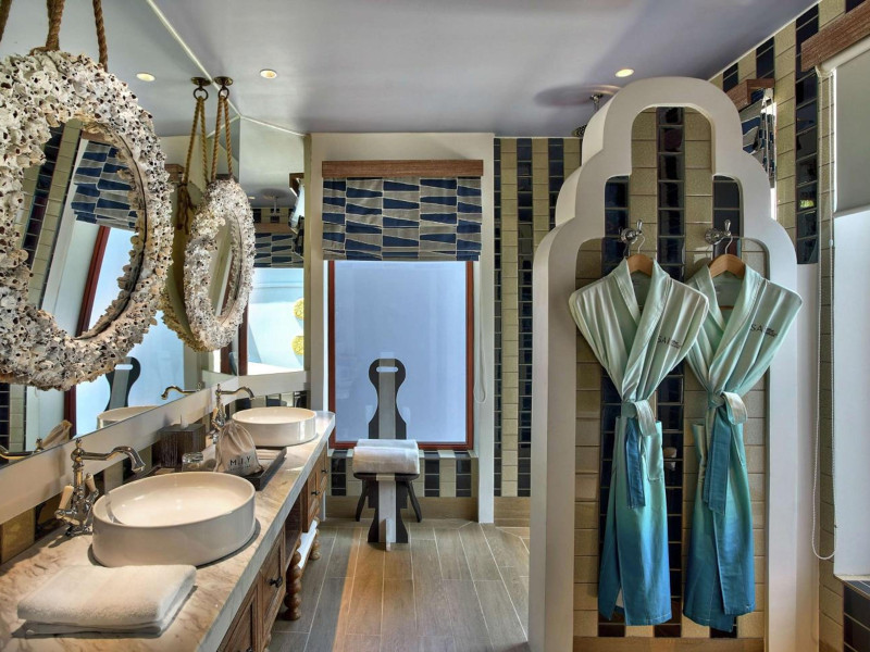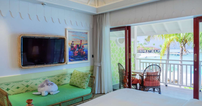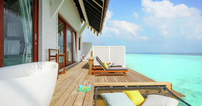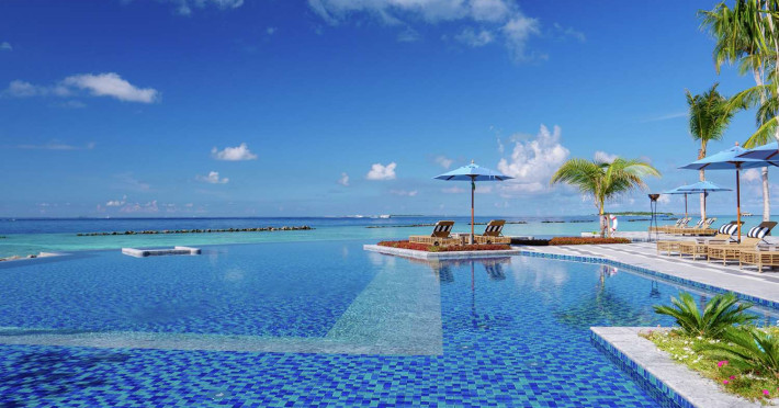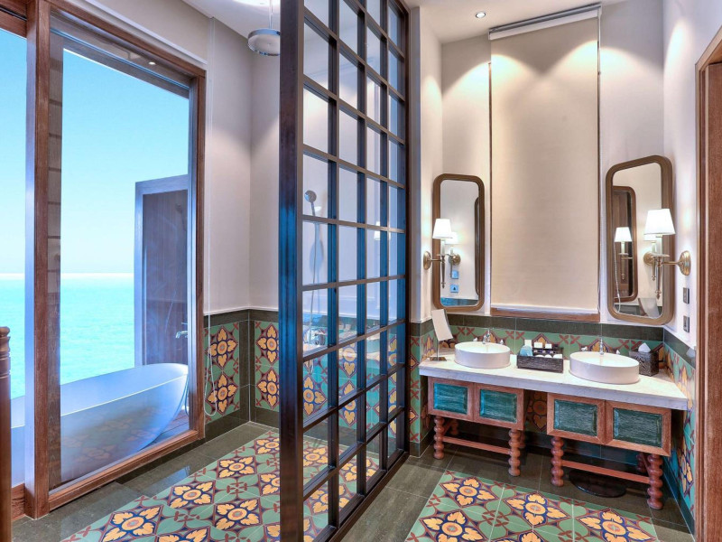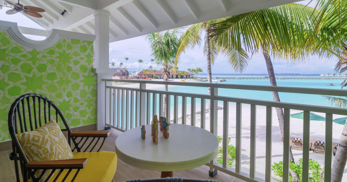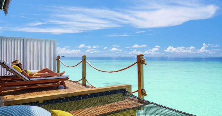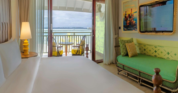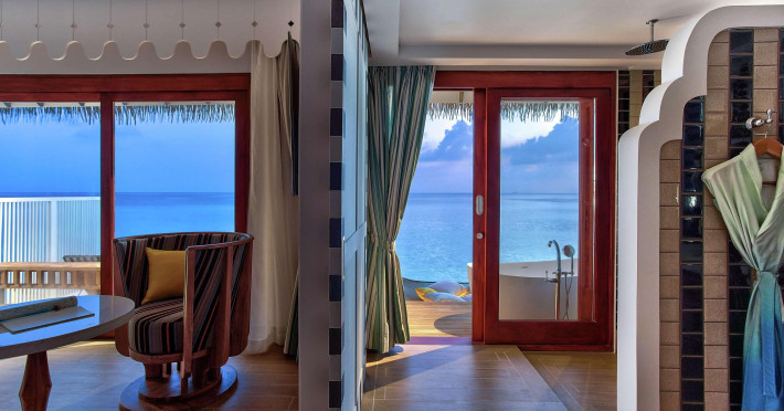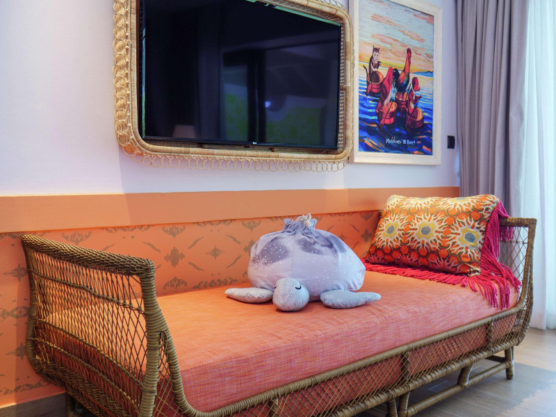 SAii Lagoon Maldives, Curio Collection by Hilton, is a luxurious beachfront resort located in Emboodhoo Lagoon, a 15-minute speedboat ride from Velana International Airport (MLE). The resort offers various room types, including rooms with ocean views, beach villas, and overwater villas (some with private pools). All rooms feature boho-chic decor, natural textures, free Wi-Fi, HDTV, complimentary tea and coffee, a large bathroom with a waterfall shower, and a furnished balcony or deck. Dining options include Miss Olive Oyl (Mediterranean seafood), Mr. Tomyam (Thai fusion), bean/Co (coffee and tea), and Café del Mar (gourmet breakfast). Resort amenities include an infinity pool, a 24-hour fitness center, a full-service spa, a business center, concierge services, babysitting (surcharge), and bicycle rentals. All-inclusive rates are available. The resort also offers proximity to CROSSROADS Island, providing access to shopping, dining, and entertainment. The resort has approximately 3509 square feet of event space. The SAii Lagoon Maldives, Curio Collection by Hilton is a hotel.