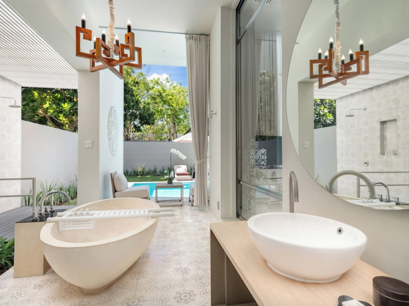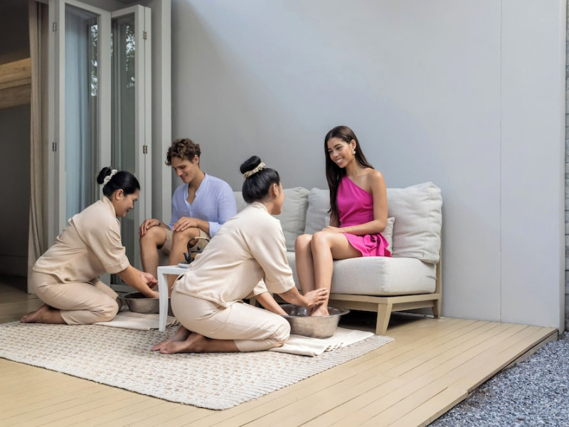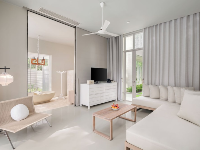 SALA Phuket Mai Khao Beach Resort is a beachfront destination located on Mai Khao Beach, approximately 20 minutes from Phuket International Airport. The resort offers complimentary WiFi throughout the property and features multiple swimming pools, a full-service spa, a steam room, and a fitness center. Dining options include a restaurant, poolside bar, and a bar/lounge. Guests can enjoy amenities such as a business center, concierge service, luggage storage, and dry cleaning/laundry services. The resort provides airport transfer services, taxi, car hire and shuttle amenities. Free self-parking is available. All rooms feature complimentary wireless internet access, satellite programming, minibars, and a balcony or patio. Bathrooms include separate bathtubs and showers with deep soaking bathtubs and rainfall showerheads. The resort also offers 24-hour room service, daily housekeeping, and a ticket service for tours. Guests can enjoy a daily buffet breakfast (for a fee) and access on-site BBQ facilities. Recreational amenities include a hot tub and massage services. Smoking is prohibited in the resort, with designated smoking zones available. Nearby attractions include Sirinat National Park and Mai Khao Beach. The Sala Phuket Mai Khao Beach Resort is a Honeymoon, Leisure, Resort, Spa Resort, Tourist, Villa Resort hotel. The nightlife/restaurants are easily accessible by taxi or bus from the hotel.