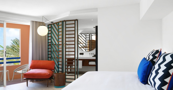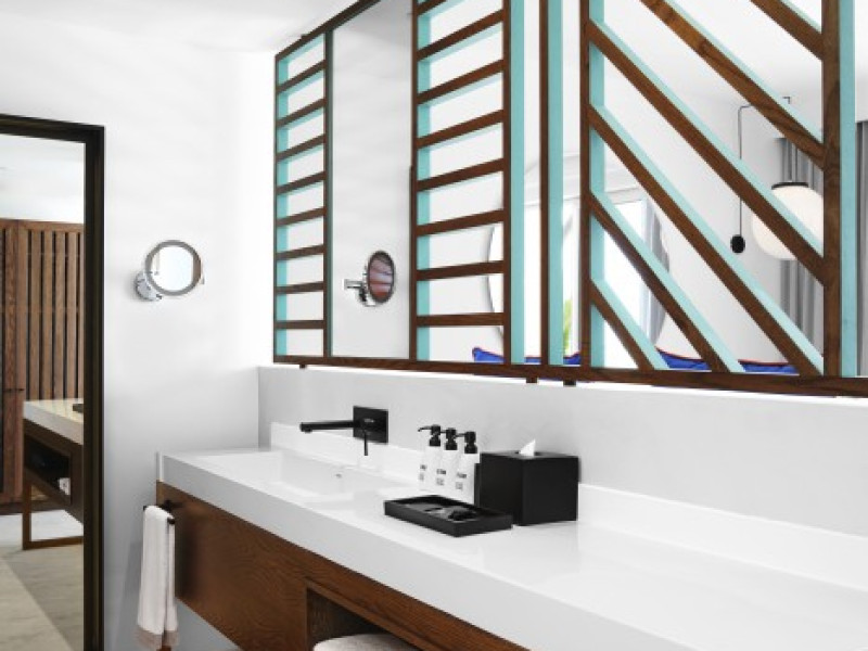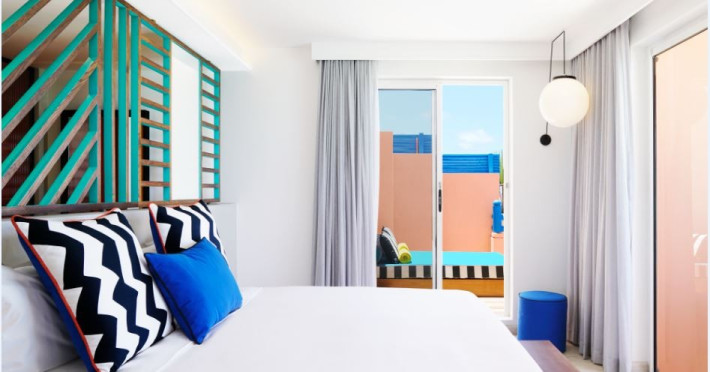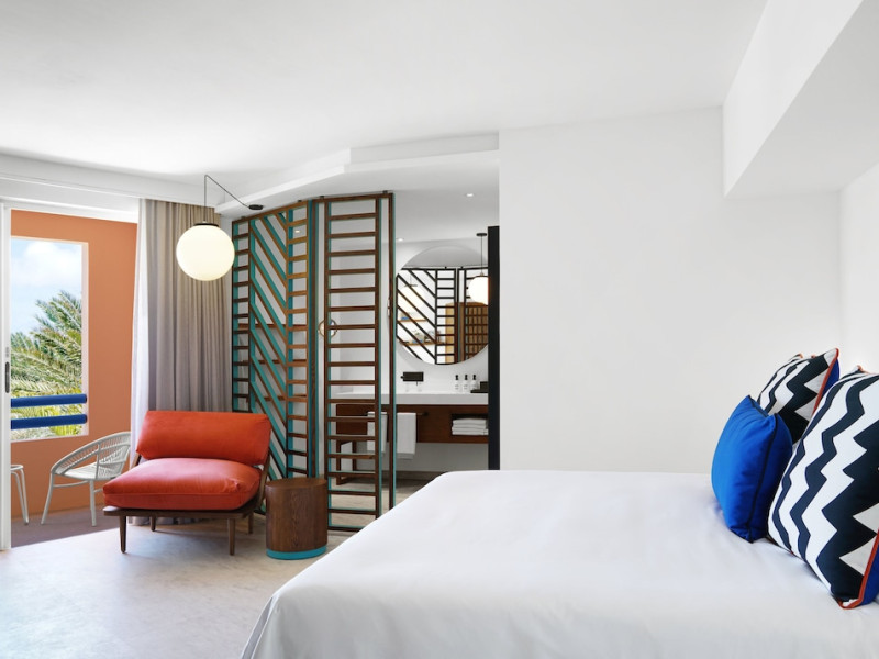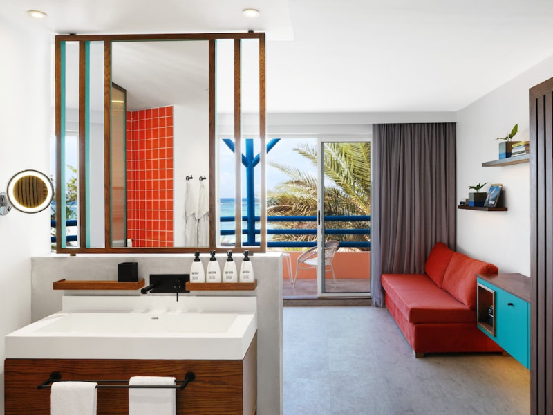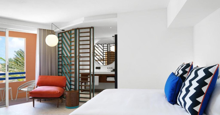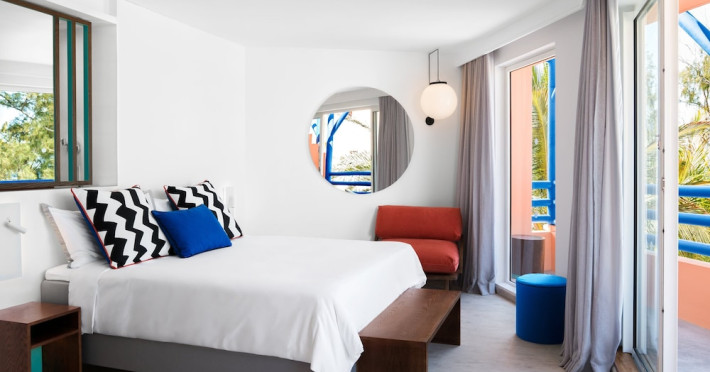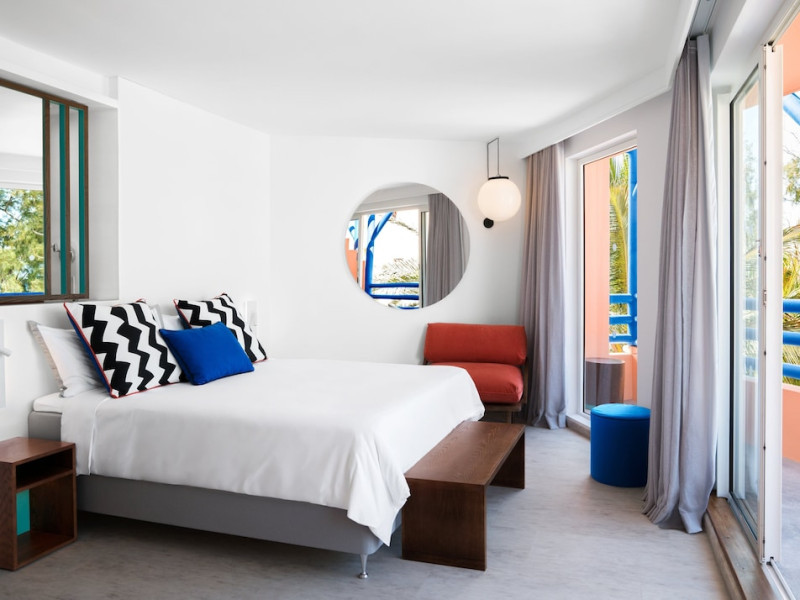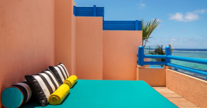 Located on the east coast of Mauritius in Belle Mare, SALT of Palmar is an adult-only boutique hotel on the white sandy beach of Palmar, near Belle Mare Beach. Designed in collaboration with Camille Walala and local architecture studio JFA, the hotel showcases a unique and inspiring style with Mauritian influences. It offers complimentary wireless internet access throughout the property. Guests can enjoy international cuisine at the beachfront restaurant, relax at the beach bar or poolside bar, and take advantage of 24-hour room service. The hotel features an outdoor pool, a fitness center, bicycles for rent, and a spa offering massages, body treatments, and facials. Additional amenities include concierge services, express check-in/check-out, and dry cleaning/laundry services. The hotel has guestrooms with private furnished balconies and private bathrooms with rainfall showerheads and designer toiletries. Sir Seewoosagur Ramgoolam International Airport is approximately 47 km away. The SALT of Palmar, an Adult-only Boutique Hotel is a hotel.