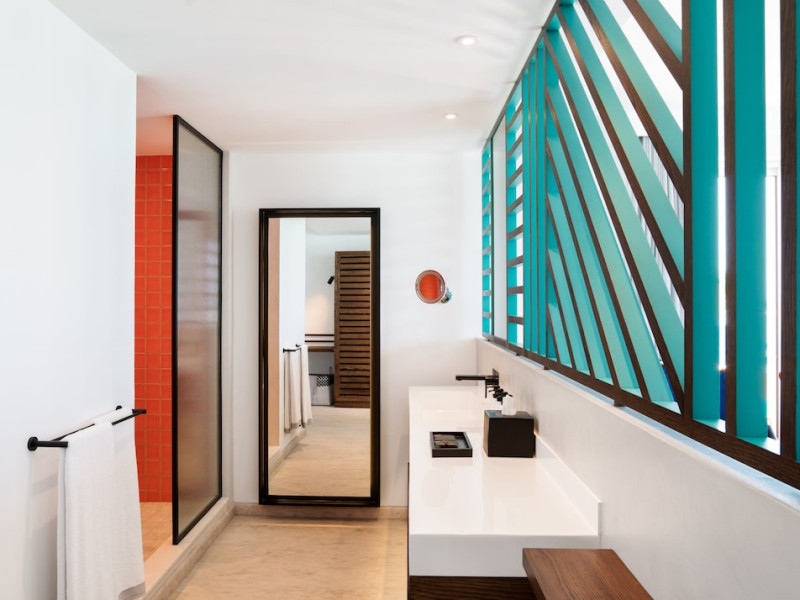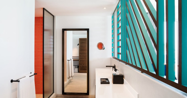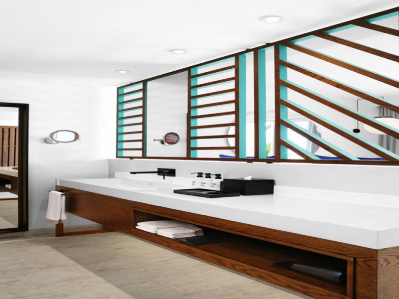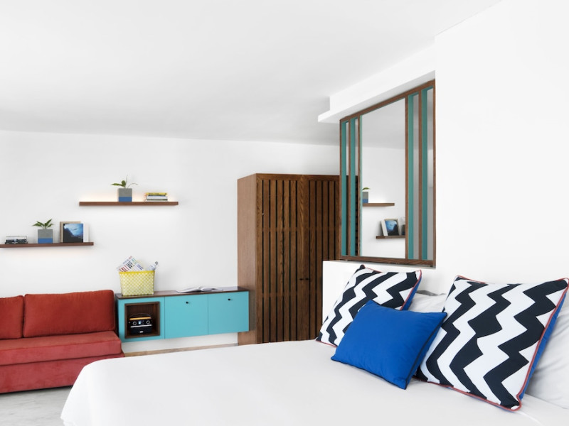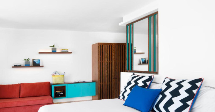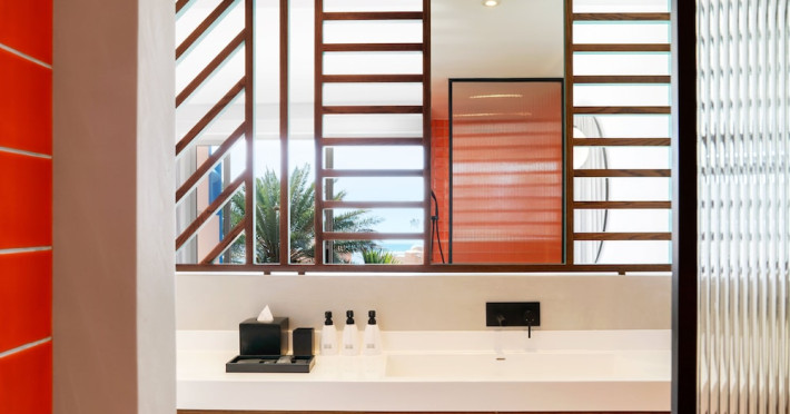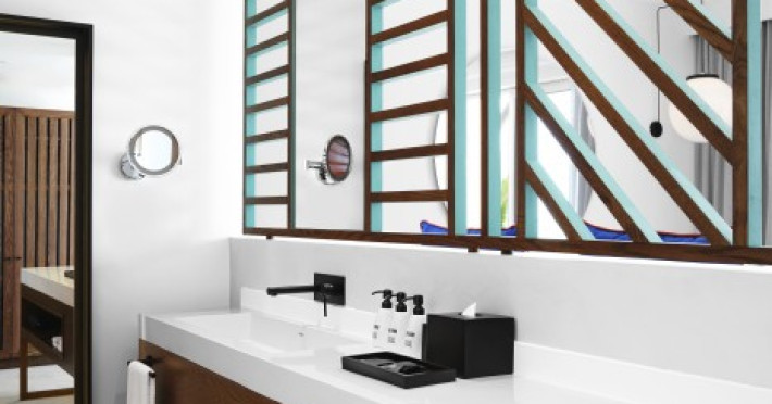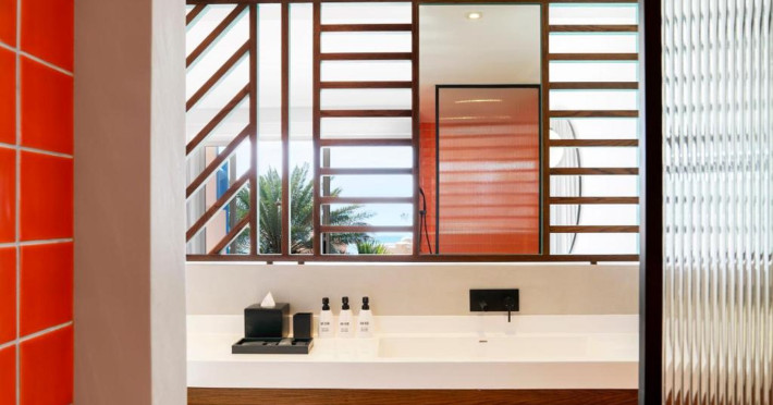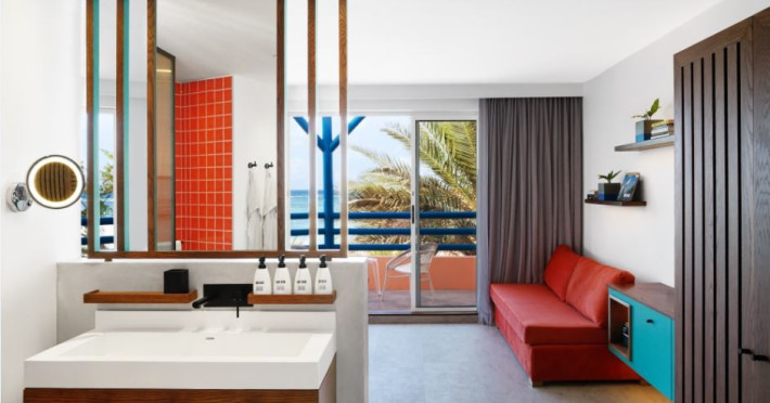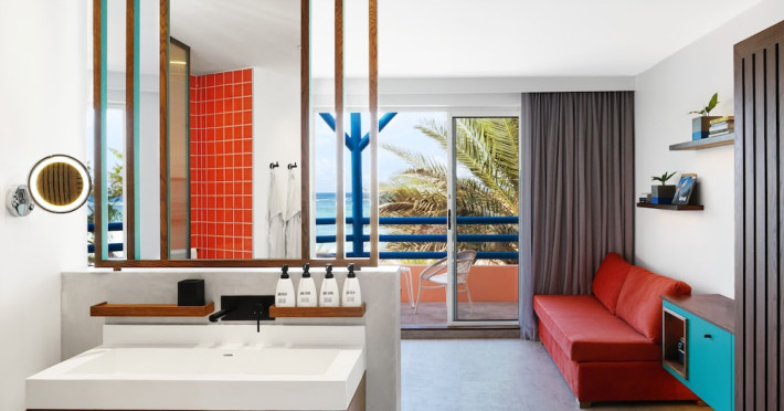 Located on the east coast of Mauritius in Belle Mare, SALT of Palmar is an adult-only boutique hotel on the white sandy beach of Palmar, near Belle Mare Beach. Designed in collaboration with Camille Walala and local architecture studio JFA, the hotel showcases a unique and inspiring style with Mauritian influences. It offers complimentary wireless internet access throughout the property. Guests can enjoy international cuisine at the beachfront restaurant, relax at the beach bar or poolside bar, and take advantage of 24-hour room service. The hotel features an outdoor pool, a fitness center, bicycles for rent, and a spa offering massages, body treatments, and facials. Additional amenities include concierge services, express check-in/check-out, and dry cleaning/laundry services. The hotel has guestrooms with private furnished balconies and private bathrooms with rainfall showerheads and designer toiletries. Sir Seewoosagur Ramgoolam International Airport is approximately 47 km away. The SALT of Palmar, an Adult-only Boutique Hotel is a hotel.