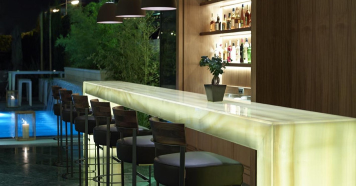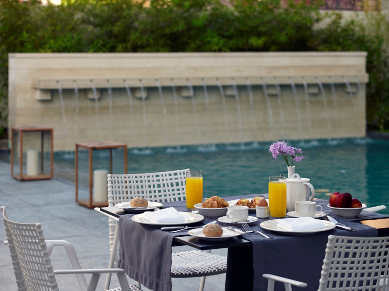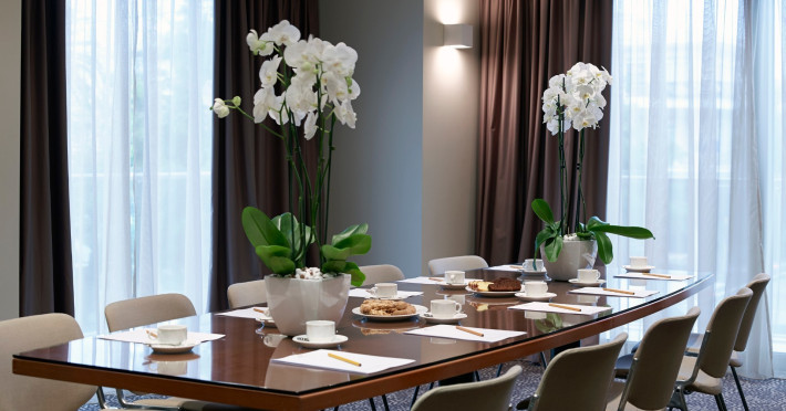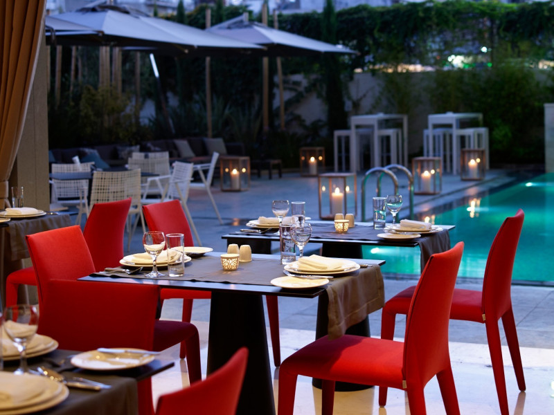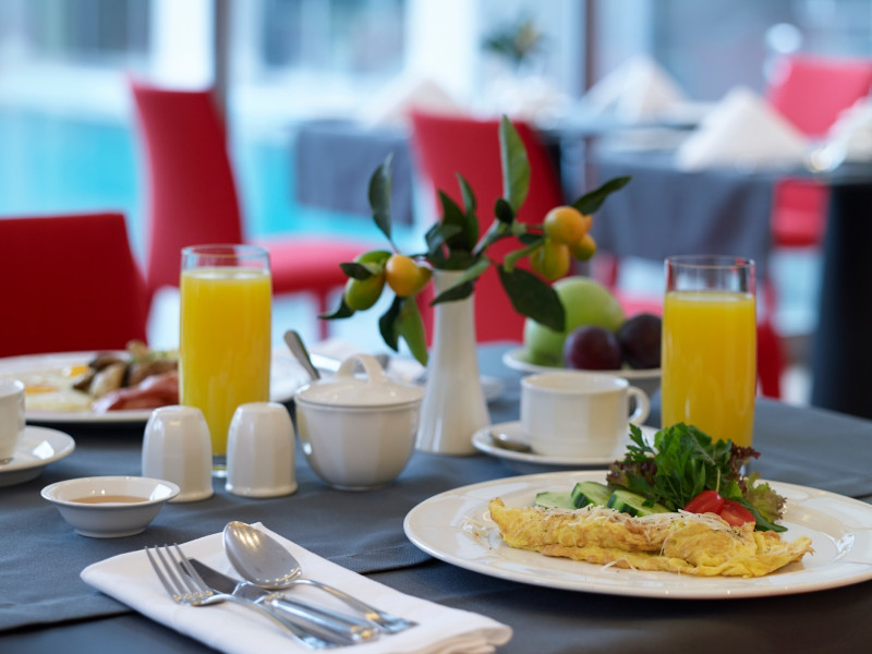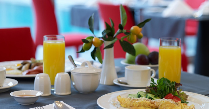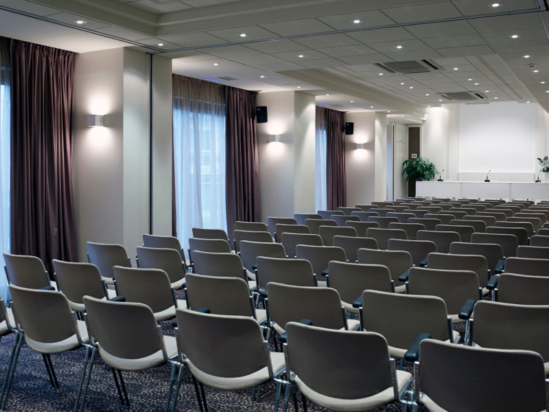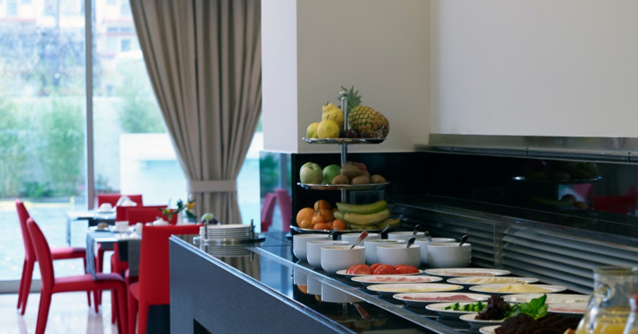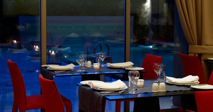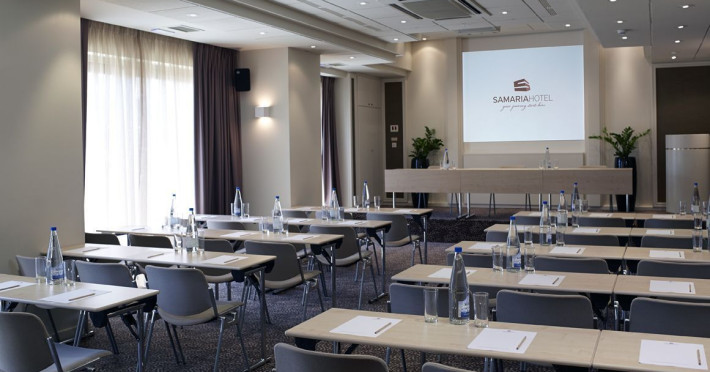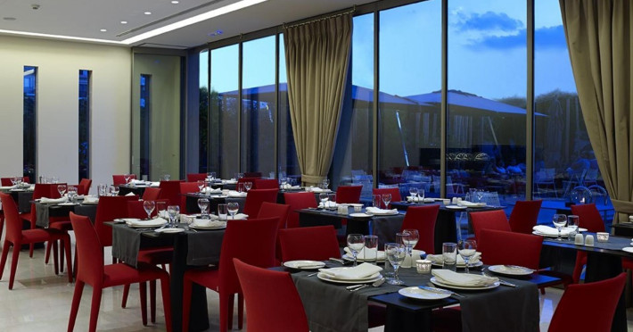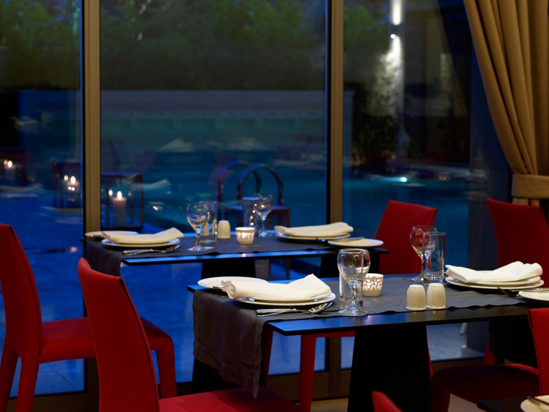 The hotel has been renovated to include Café-Bistro 1866, a modern à la carte restaurant serving local and Mediterranean cuisine, a large outdoor swimming pool, a fully equipped fitness center, a business room with secretarial support, and convenient private parking. The multipurpose rooms are located on the first floor of the hotel and are specially designed for conference events. These venues feature natural lighting, independent air conditioning, and all modern technical equipment, and can accommodate meetings, conferences, and events ranging from 12 to 140 attendees. The hotel offers high-speed wireless (Wi-Fi) and wired Internet access throughout the premises at no extra charge.