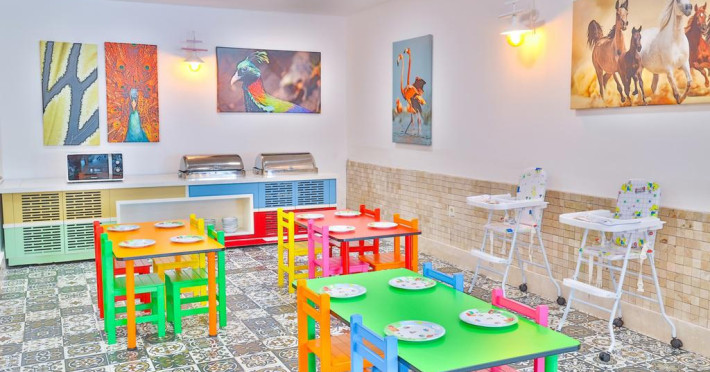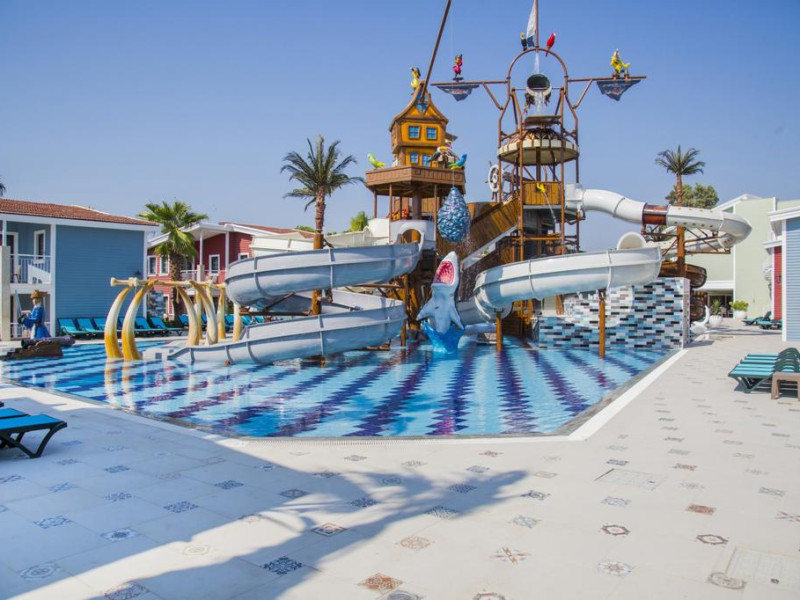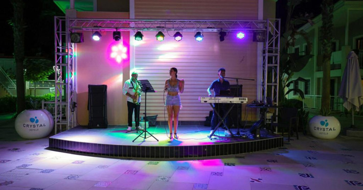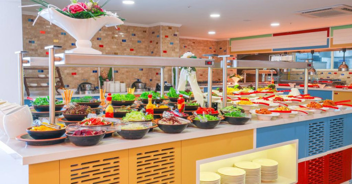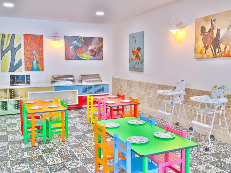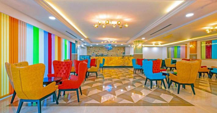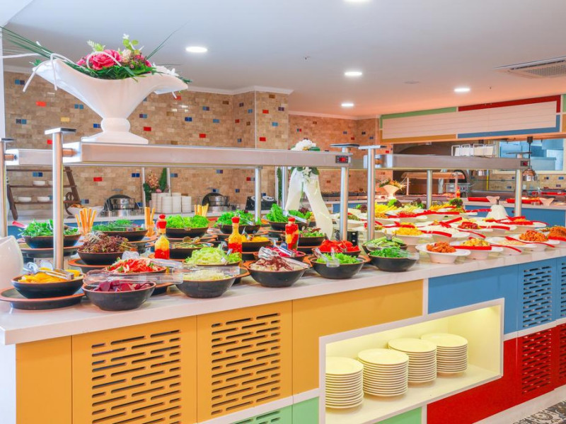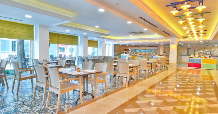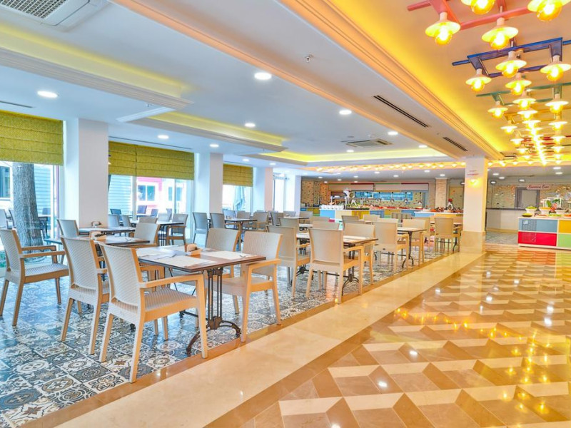 Restaurant cu terasa langa plaja cu meniu international si a la carte, snack bar si bar langa plaja, 2 saloane cu TV, discoteca, magazine, internet (cu plata), baie turceasca si masaj (cu plata); piscina exterioara cu sectiune pentru copii. Hoteluri organizeaza serii cu specific: seara oriental, seara turceasca, seara cu muzica Rock on Roll.