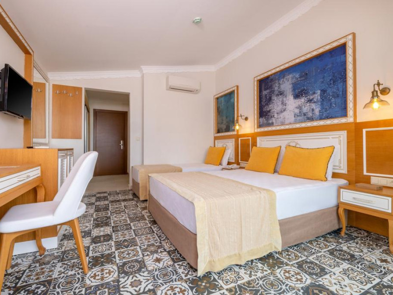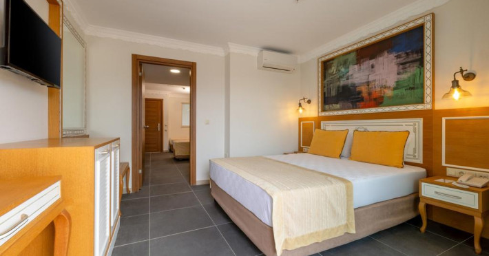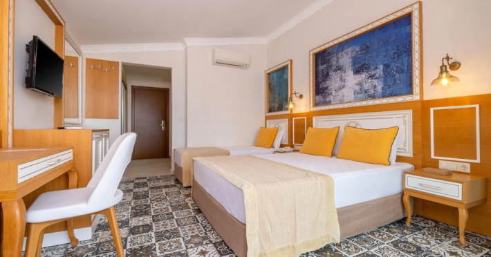 Camerele sunt mobilate in stil specific turcesc, dotate cu telefon, aer conditionat, televizor, baie cu dus si uscator de par, telefon.