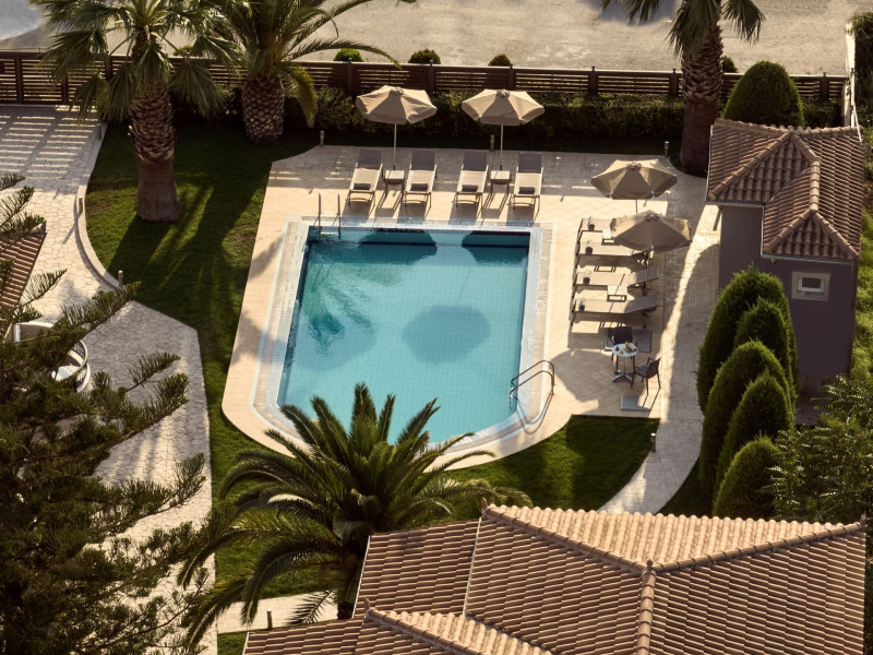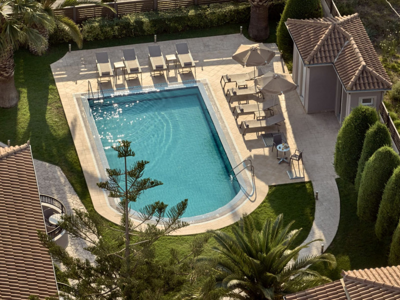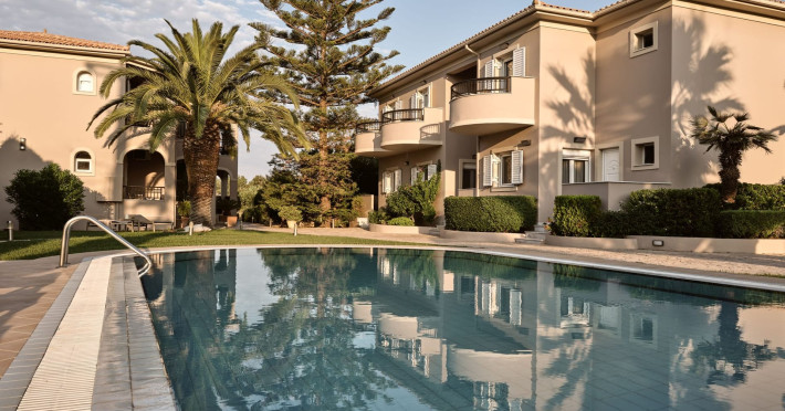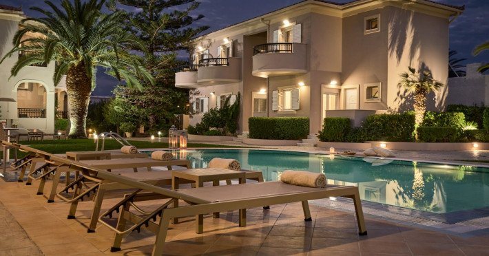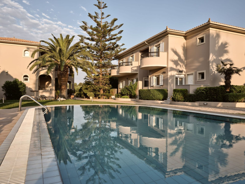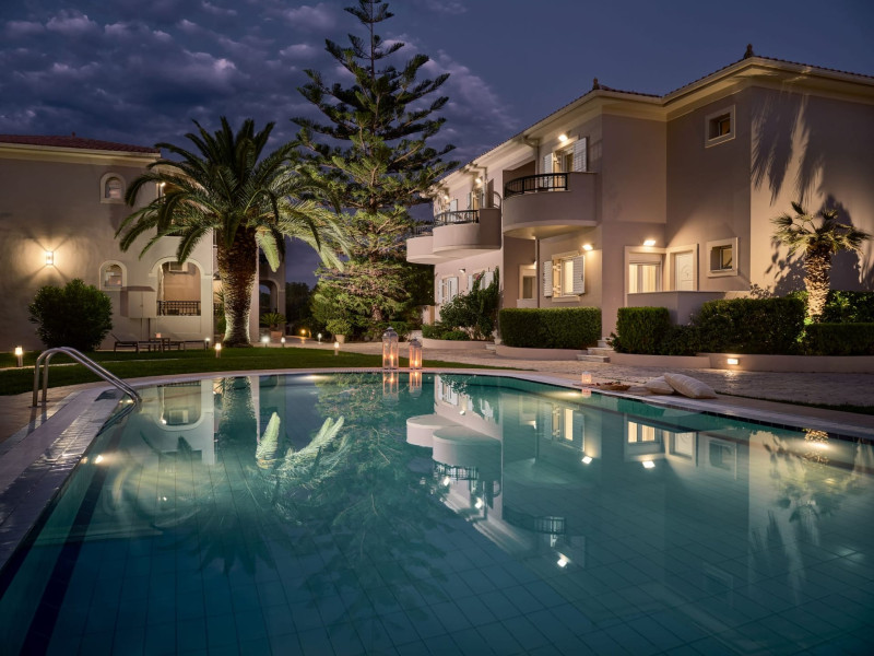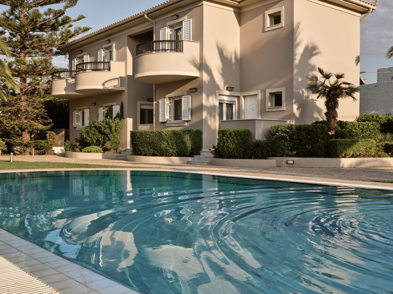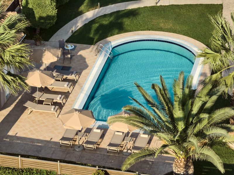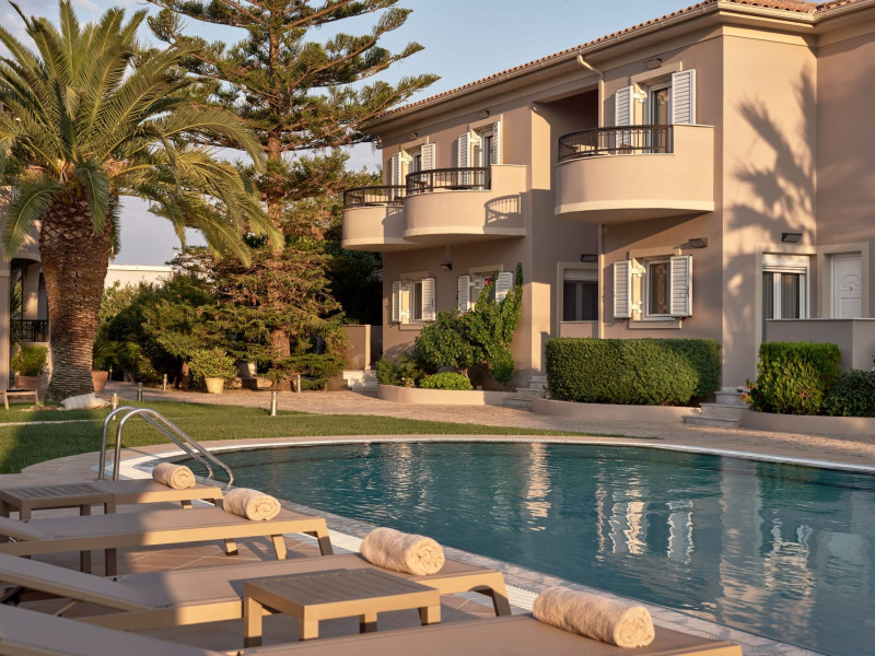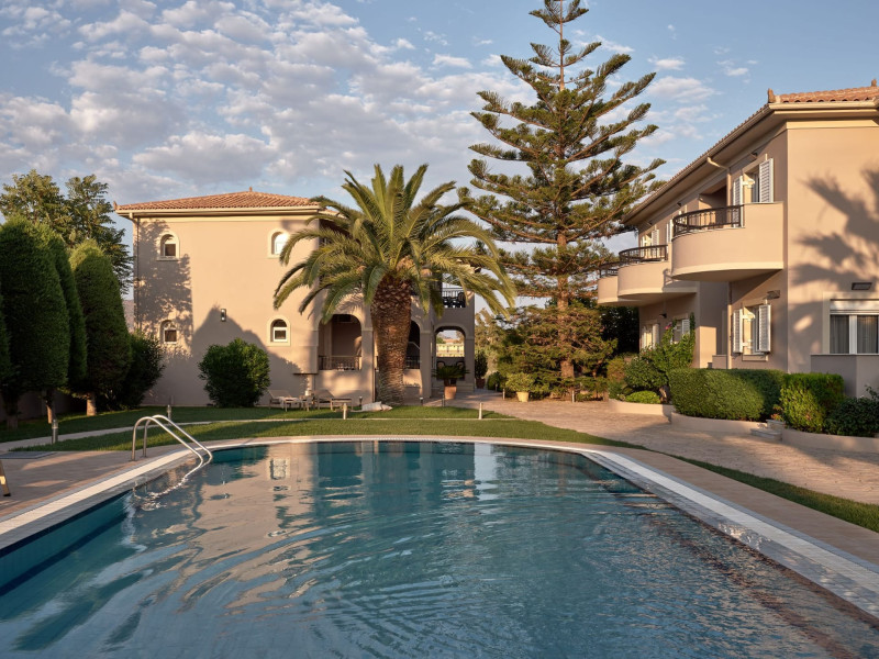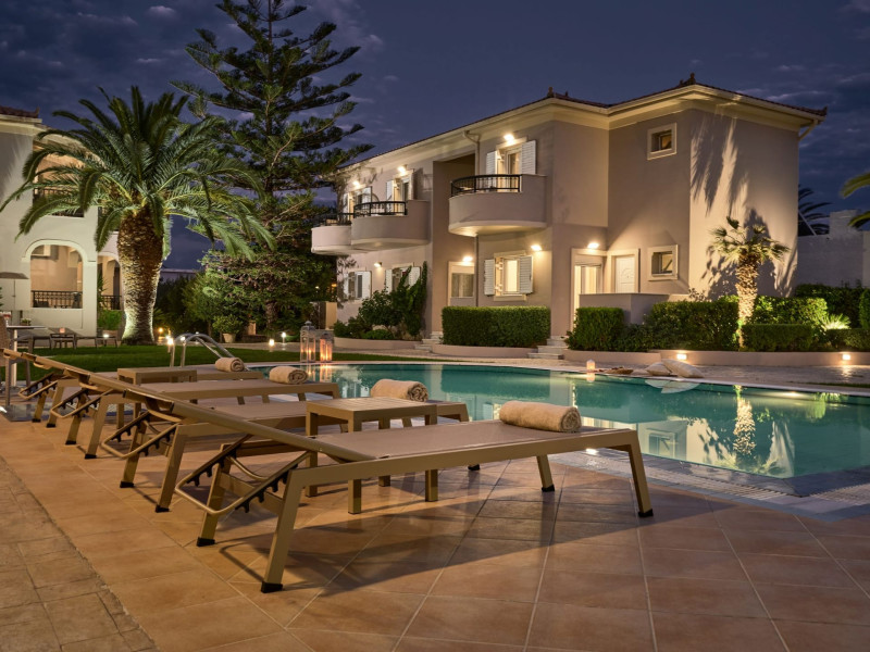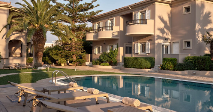 The long sandy beach with the warm and shallow waters is home to the endangered Caretta Caretta turtles as they choose it to lay their eggs. It is located at a small distance from the complex along with the centre of the resort and guests can spend their days swimming, sunbathing or doing water sports and their evenings at one of the many restaurants, tavernas, bars and clubs close by.