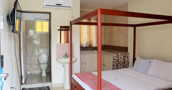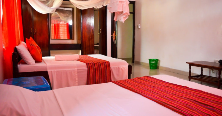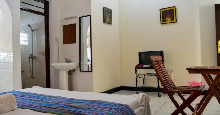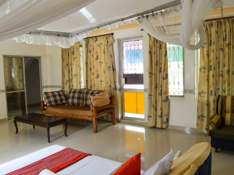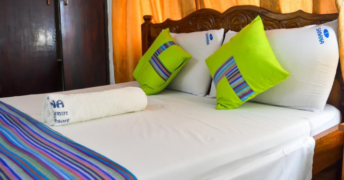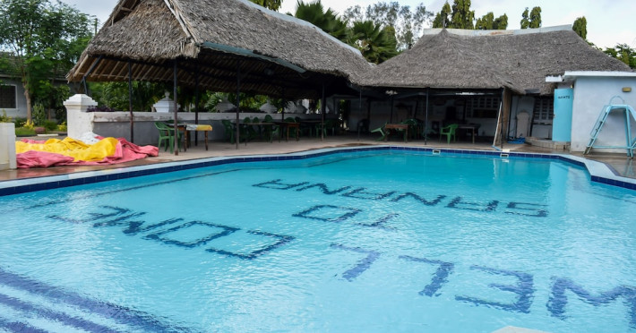 Located near Nyali Beach in Mombasa, Sanana Conference Center and Holiday Resort offers accommodation with an outdoor swimming pool, fitness center, a restaurant serving African cuisine, a bar/lounge, and a poolside bar. It features complimentary wireless internet access, concierge services, a banquet hall, and a 24-hour front desk. Services include dry cleaning/laundry, luggage storage, and room service. The hotel offers 15 air-conditioned guestrooms, each with a private balcony or patio, a desk, a flat-screen TV, and a private bathroom with complimentary toiletries. Airport transfers are available for a surcharge. Nearby attractions include Mamba Village, Wild Waters, and Mombasa Marine National Park. The Sanana Conference Center is a hotel.