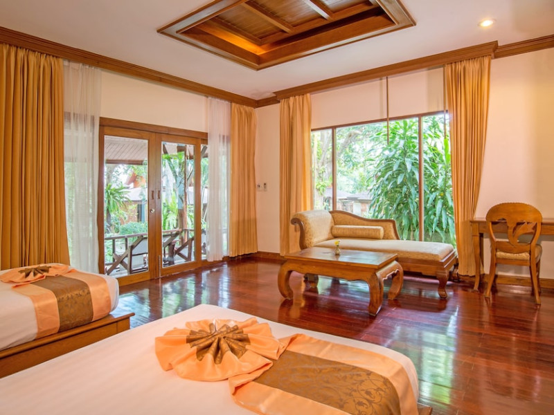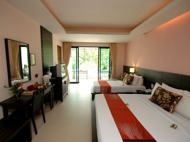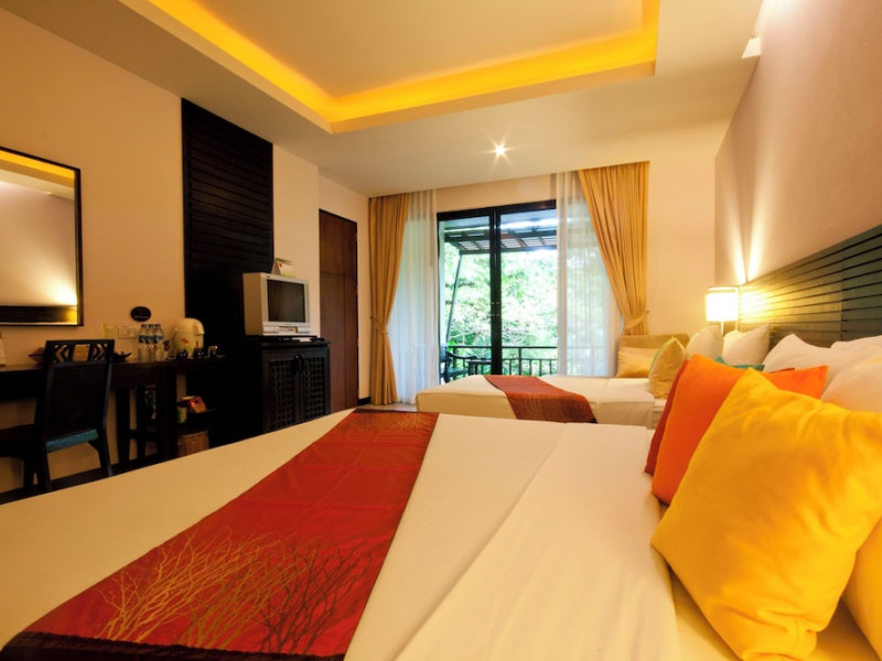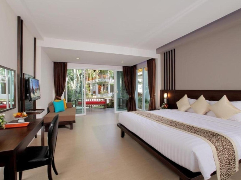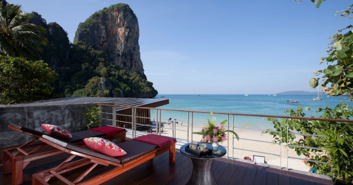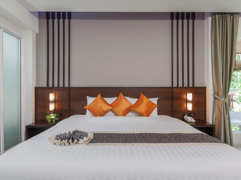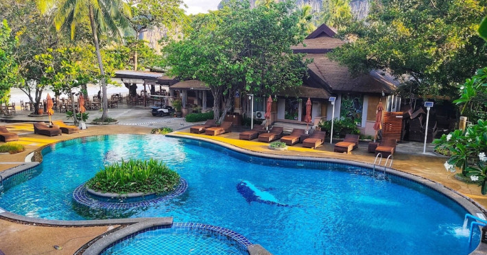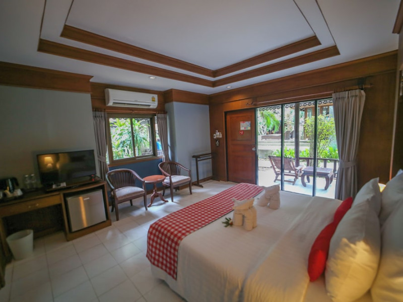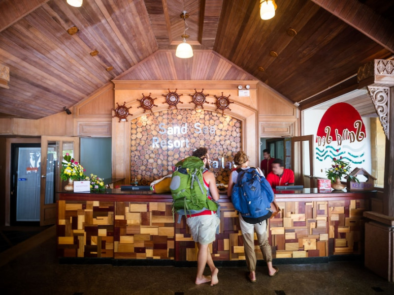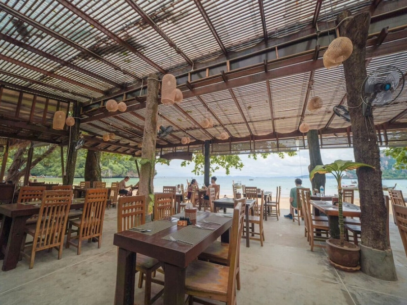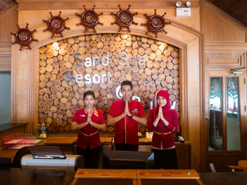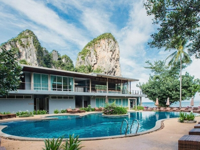 Sand Sea Resort Railay Beach is located just 10 meters from Railay West Beach. The resort offers 123 air-conditioned rooms with private balconies, refrigerators, and complimentary Wi-Fi. Each room includes a private bathroom with complimentary toiletries and a hairdryer. Onsite amenities include two outdoor swimming pools (one with a children's section), a fitness center, a beachfront restaurant (Sunset Restaurant) with ocean views, a beach bar, room service (limited hours), and a restaurant serving local and international dishes. Additional amenities include complimentary Wi-Fi in public areas, concierge services, shopping on site, dry cleaning/laundry services, a 24-hour front desk, multilingual staff, and limited onsite parking. A roundtrip airport shuttle is available for a surcharge. Buffet breakfast is available daily (fee applies). Nearby attractions include Phra Nang Cave and Princess Lagoon (1 km), Ao Nang (800m), Poda Island (2km), and various other beaches within a short distance (see detailed list of distances provided in original descriptions). Boat trips to Krabi Town and Ao Nang Beach are available. Canoeing trips are offered. The resort also offers car rental services and a tour desk for sightseeing and travel arrangements. The Sand Sea Resort Railay Beach is a City hotel, Tourist hotel. The nightlife/restaurants are easily accessible by taxi or bus from the hotel.