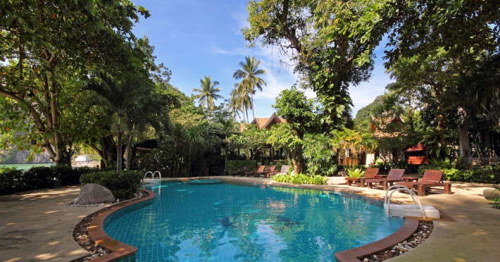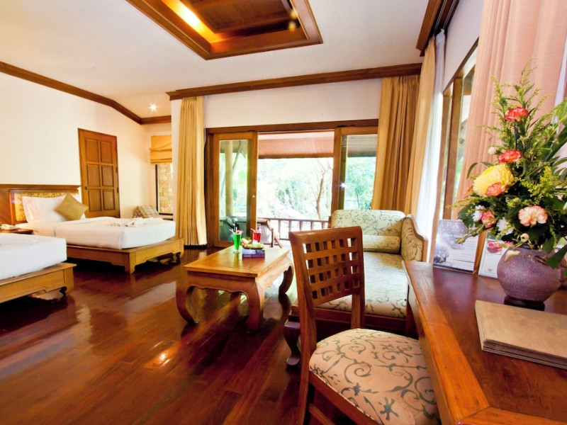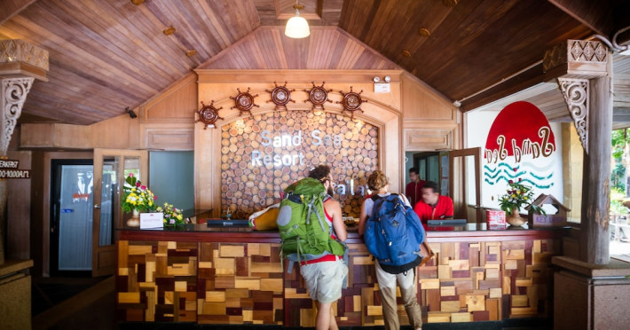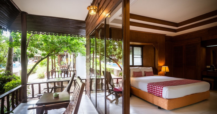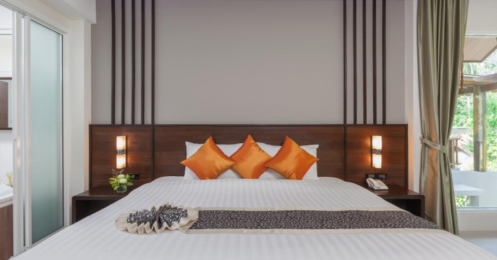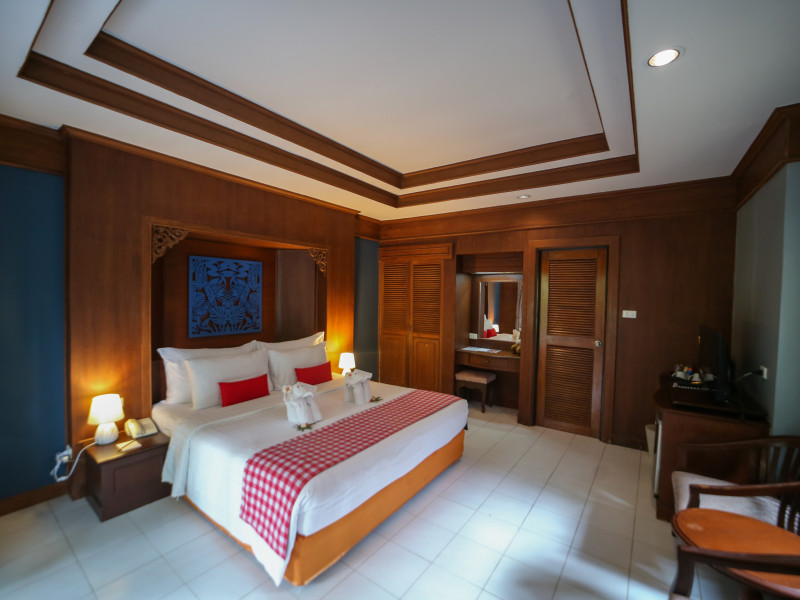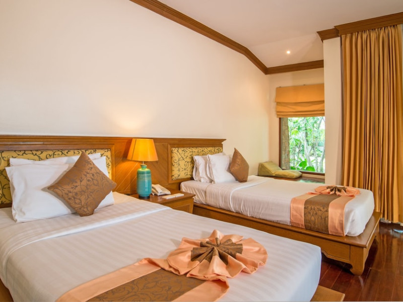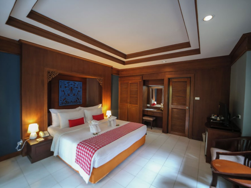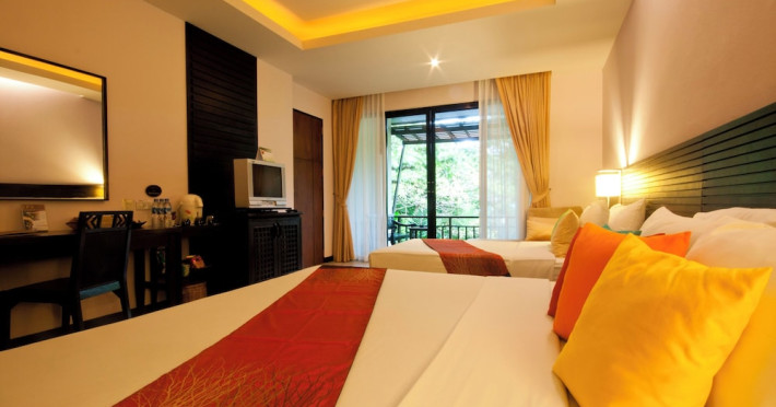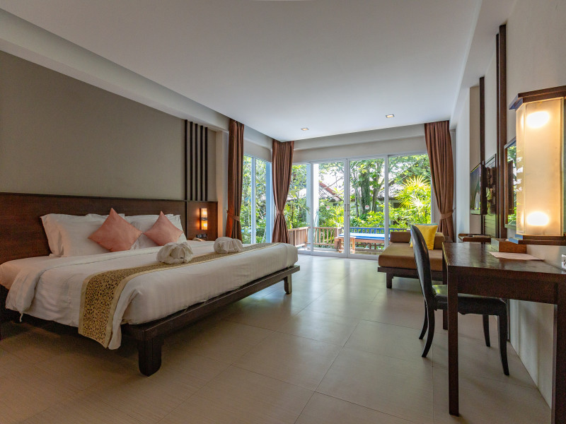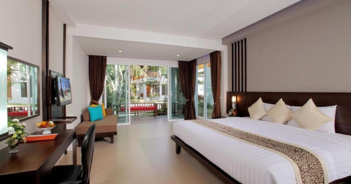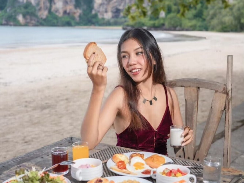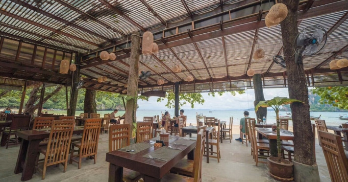 Sand Sea Resort Railay Beach is located just 10 meters from Railay West Beach. The resort offers 123 air-conditioned rooms with private balconies, refrigerators, and complimentary Wi-Fi. Each room includes a private bathroom with complimentary toiletries and a hairdryer. Onsite amenities include two outdoor swimming pools (one with a children's section), a fitness center, a beachfront restaurant (Sunset Restaurant) with ocean views, a beach bar, room service (limited hours), and a restaurant serving local and international dishes. Additional amenities include complimentary Wi-Fi in public areas, concierge services, shopping on site, dry cleaning/laundry services, a 24-hour front desk, multilingual staff, and limited onsite parking. A roundtrip airport shuttle is available for a surcharge. Buffet breakfast is available daily (fee applies). Nearby attractions include Phra Nang Cave and Princess Lagoon (1 km), Ao Nang (800m), Poda Island (2km), and various other beaches within a short distance (see detailed list of distances provided in original descriptions). Boat trips to Krabi Town and Ao Nang Beach are available. Canoeing trips are offered. The resort also offers car rental services and a tour desk for sightseeing and travel arrangements. The Sand Sea Resort Railay Beach is a City hotel, Tourist hotel. The nightlife/restaurants are easily accessible by taxi or bus from the hotel.