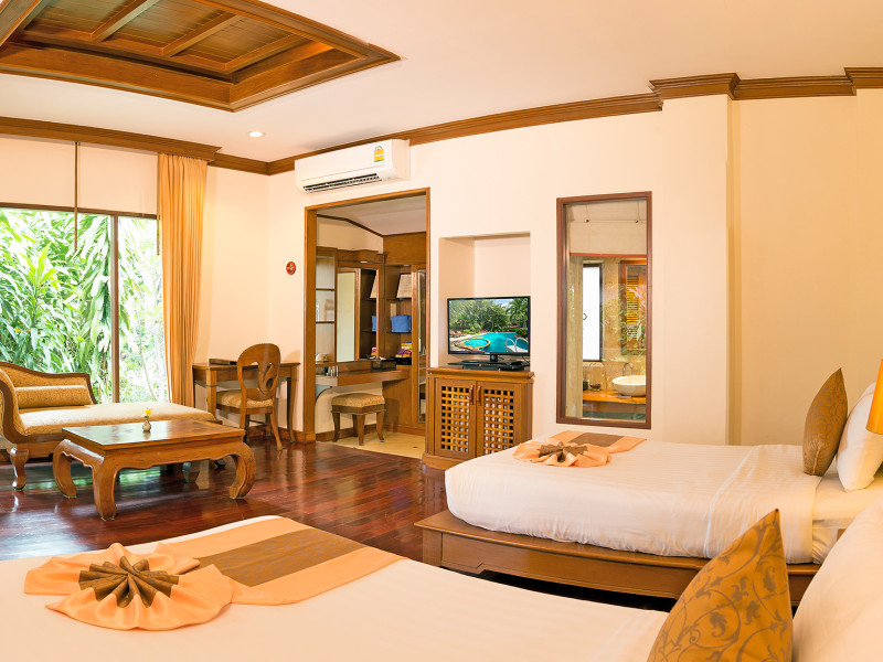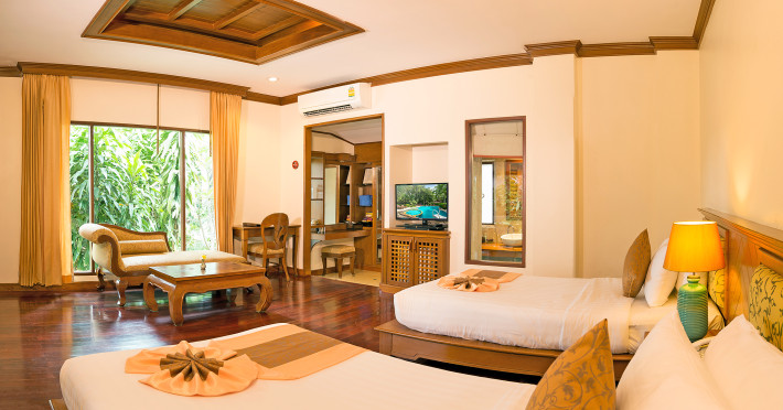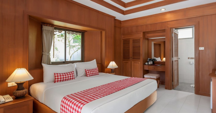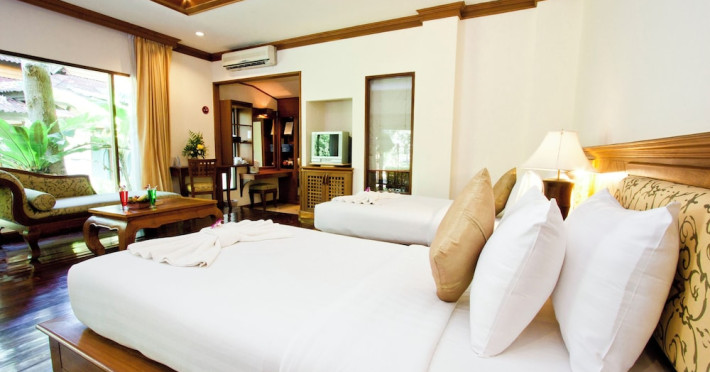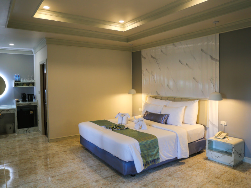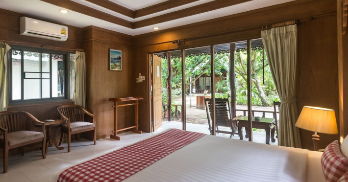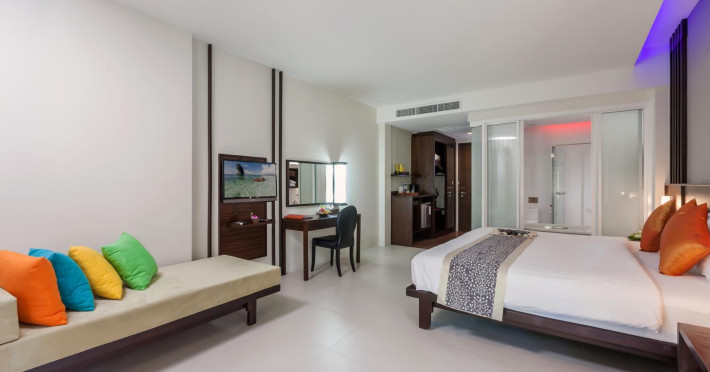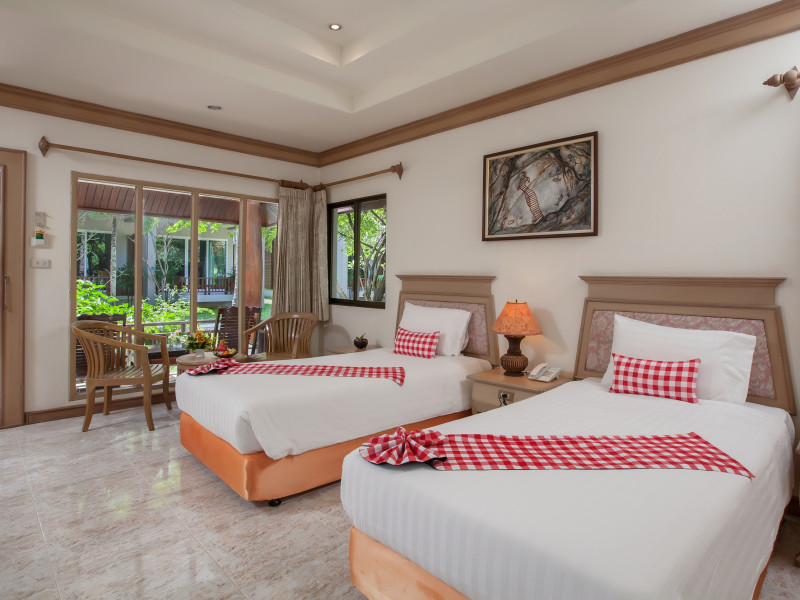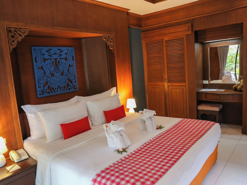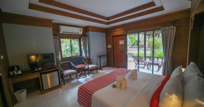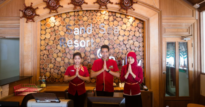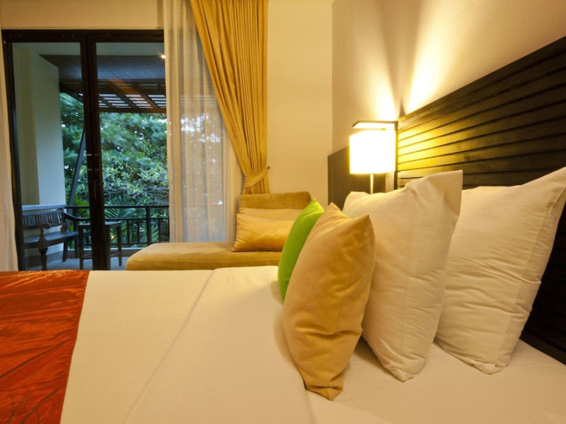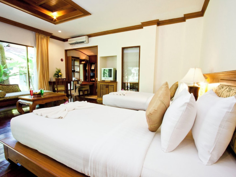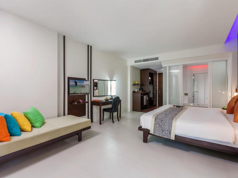 Sand Sea Resort Railay Beach is located just 10 meters from Railay West Beach. The resort offers 123 air-conditioned rooms with private balconies, refrigerators, and complimentary Wi-Fi. Each room includes a private bathroom with complimentary toiletries and a hairdryer. Onsite amenities include two outdoor swimming pools (one with a children's section), a fitness center, a beachfront restaurant (Sunset Restaurant) with ocean views, a beach bar, room service (limited hours), and a restaurant serving local and international dishes. Additional amenities include complimentary Wi-Fi in public areas, concierge services, shopping on site, dry cleaning/laundry services, a 24-hour front desk, multilingual staff, and limited onsite parking. A roundtrip airport shuttle is available for a surcharge. Buffet breakfast is available daily (fee applies). Nearby attractions include Phra Nang Cave and Princess Lagoon (1 km), Ao Nang (800m), Poda Island (2km), and various other beaches within a short distance (see detailed list of distances provided in original descriptions). Boat trips to Krabi Town and Ao Nang Beach are available. Canoeing trips are offered. The resort also offers car rental services and a tour desk for sightseeing and travel arrangements. The Sand Sea Resort Railay Beach is a City hotel, Tourist hotel. The nightlife/restaurants are easily accessible by taxi or bus from the hotel.