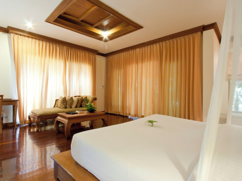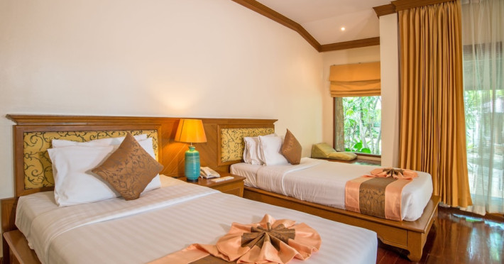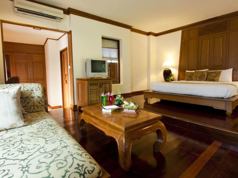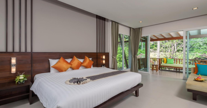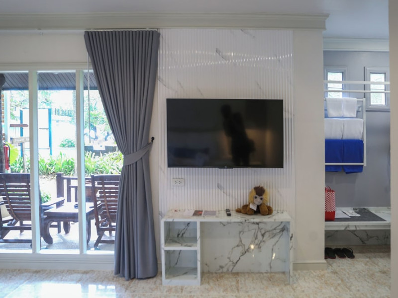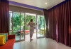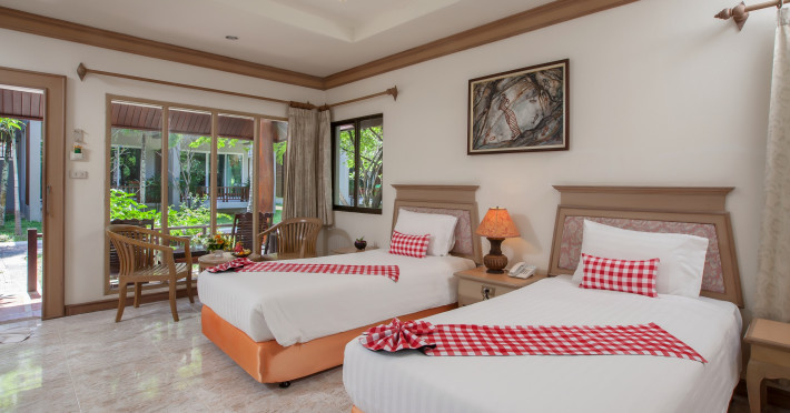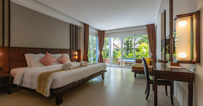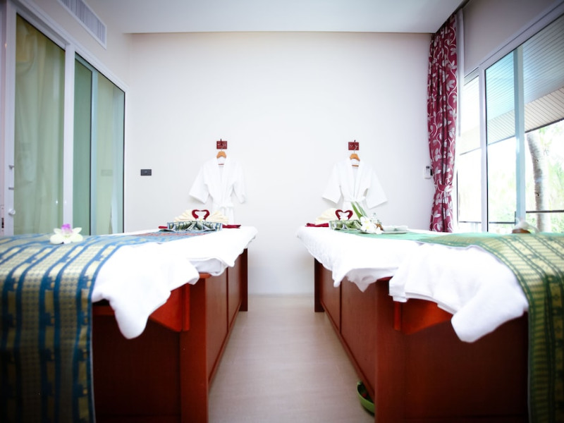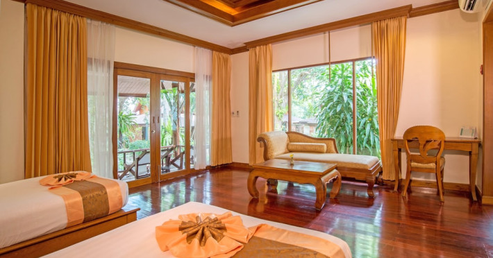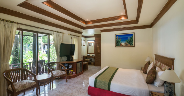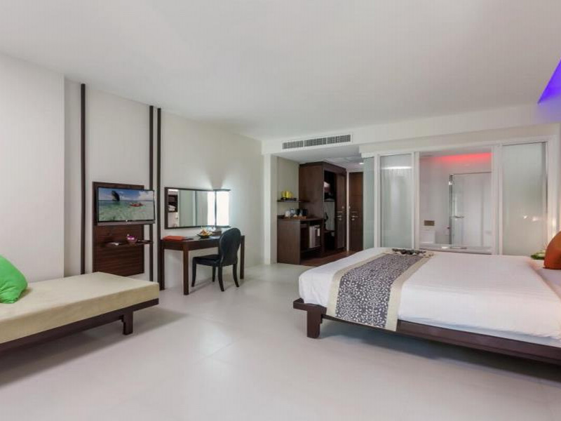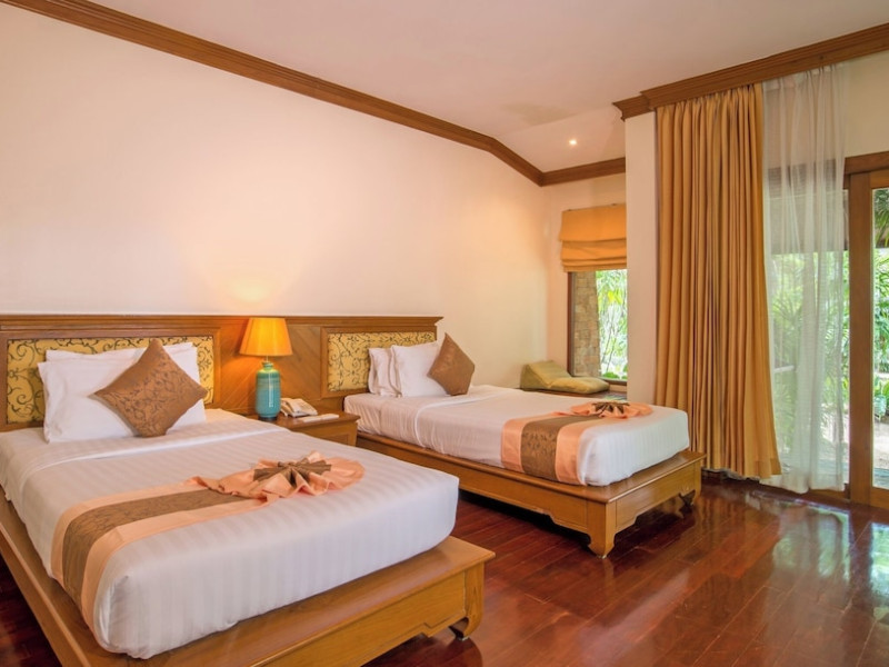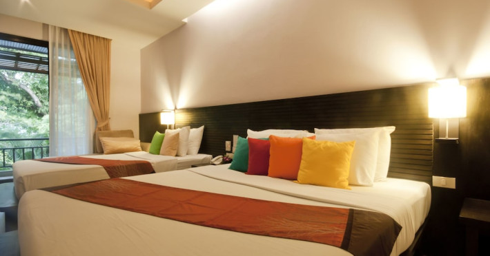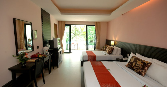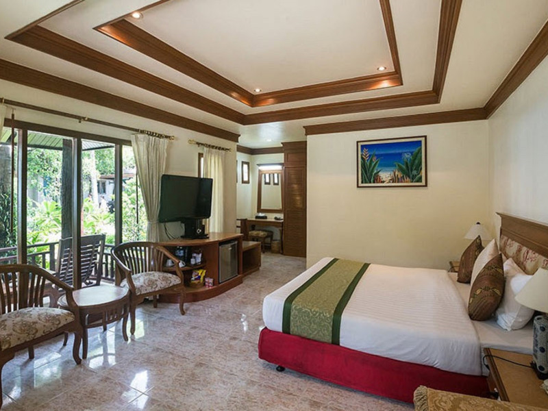 Sand Sea Resort Railay Beach is located just 10 meters from Railay West Beach. The resort offers 123 air-conditioned rooms with private balconies, refrigerators, and complimentary Wi-Fi. Each room includes a private bathroom with complimentary toiletries and a hairdryer. Onsite amenities include two outdoor swimming pools (one with a children's section), a fitness center, a beachfront restaurant (Sunset Restaurant) with ocean views, a beach bar, room service (limited hours), and a restaurant serving local and international dishes. Additional amenities include complimentary Wi-Fi in public areas, concierge services, shopping on site, dry cleaning/laundry services, a 24-hour front desk, multilingual staff, and limited onsite parking. A roundtrip airport shuttle is available for a surcharge. Buffet breakfast is available daily (fee applies). Nearby attractions include Phra Nang Cave and Princess Lagoon (1 km), Ao Nang (800m), Poda Island (2km), and various other beaches within a short distance (see detailed list of distances provided in original descriptions). Boat trips to Krabi Town and Ao Nang Beach are available. Canoeing trips are offered. The resort also offers car rental services and a tour desk for sightseeing and travel arrangements. The Sand Sea Resort Railay Beach is a City hotel, Tourist hotel. The nightlife/restaurants are easily accessible by taxi or bus from the hotel.