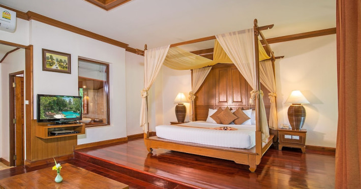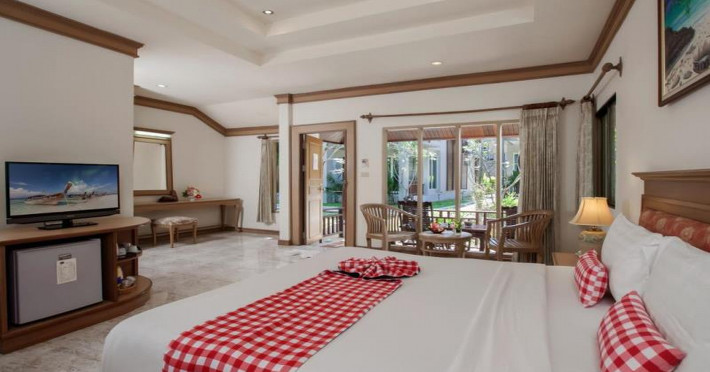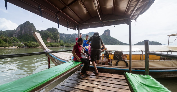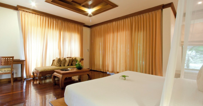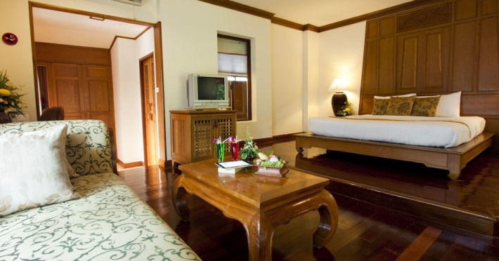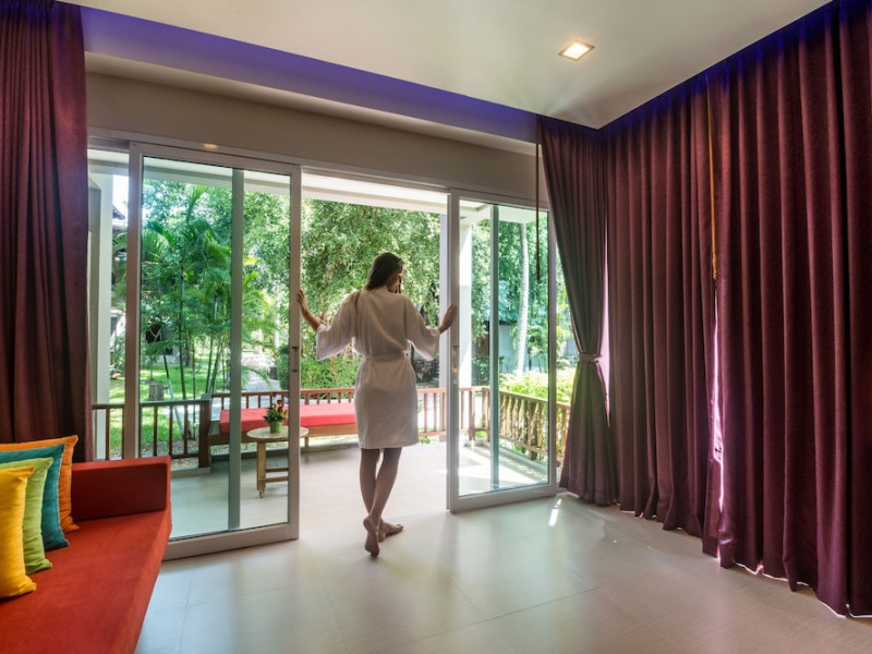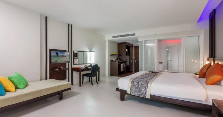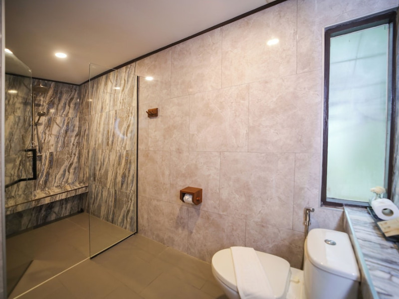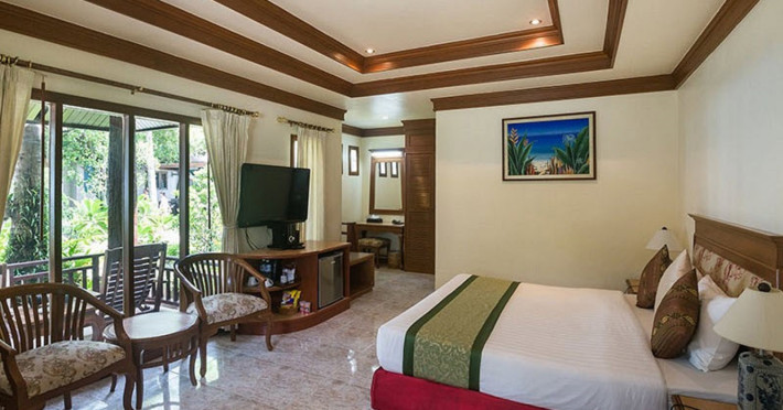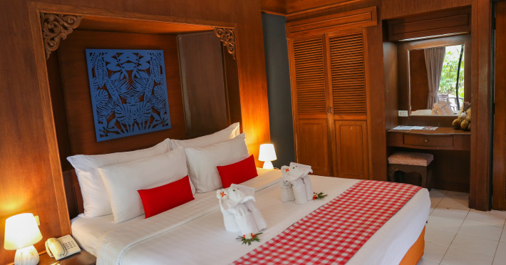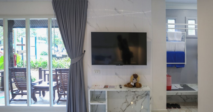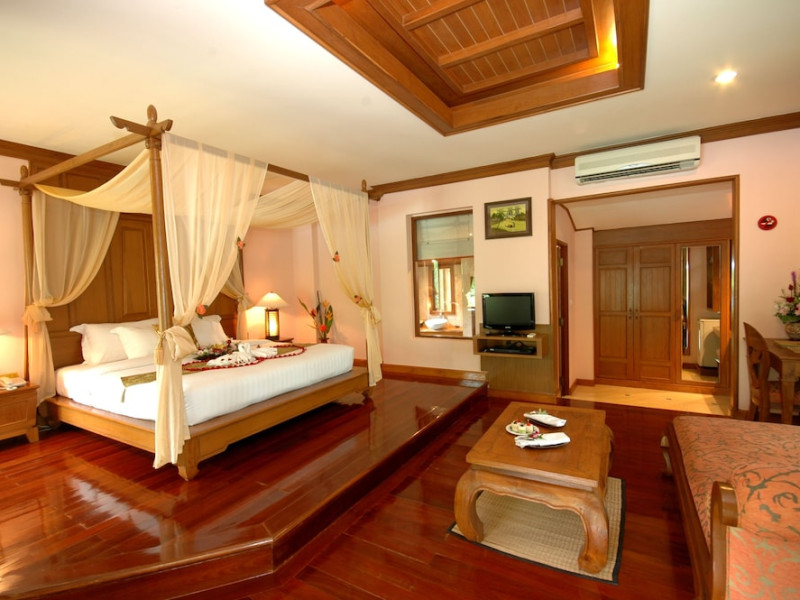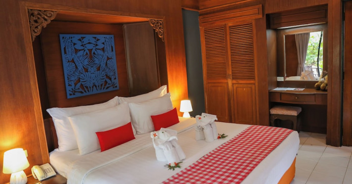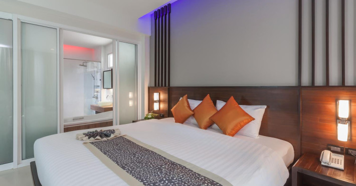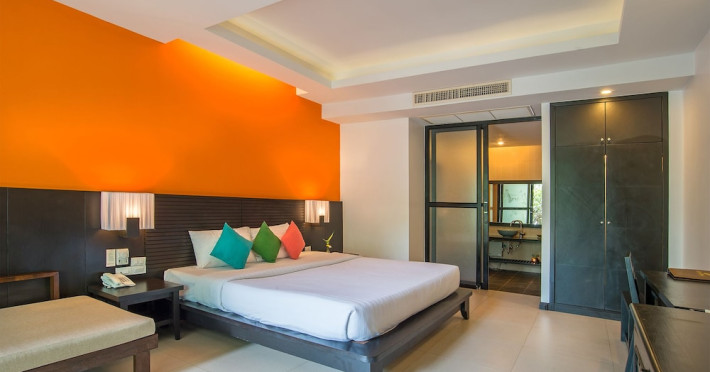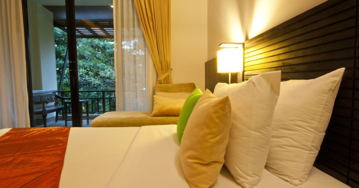 Sand Sea Resort Railay Beach is located just 10 meters from Railay West Beach. The resort offers 123 air-conditioned rooms with private balconies, refrigerators, and complimentary Wi-Fi. Each room includes a private bathroom with complimentary toiletries and a hairdryer. Onsite amenities include two outdoor swimming pools (one with a children's section), a fitness center, a beachfront restaurant (Sunset Restaurant) with ocean views, a beach bar, room service (limited hours), and a restaurant serving local and international dishes. Additional amenities include complimentary Wi-Fi in public areas, concierge services, shopping on site, dry cleaning/laundry services, a 24-hour front desk, multilingual staff, and limited onsite parking. A roundtrip airport shuttle is available for a surcharge. Buffet breakfast is available daily (fee applies). Nearby attractions include Phra Nang Cave and Princess Lagoon (1 km), Ao Nang (800m), Poda Island (2km), and various other beaches within a short distance (see detailed list of distances provided in original descriptions). Boat trips to Krabi Town and Ao Nang Beach are available. Canoeing trips are offered. The resort also offers car rental services and a tour desk for sightseeing and travel arrangements. The Sand Sea Resort Railay Beach is a City hotel, Tourist hotel. The nightlife/restaurants are easily accessible by taxi or bus from the hotel.