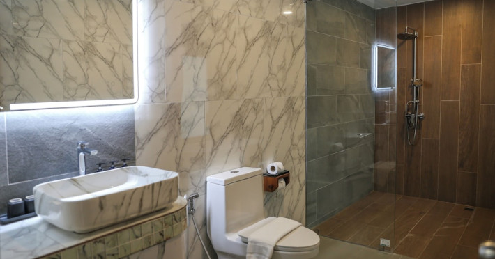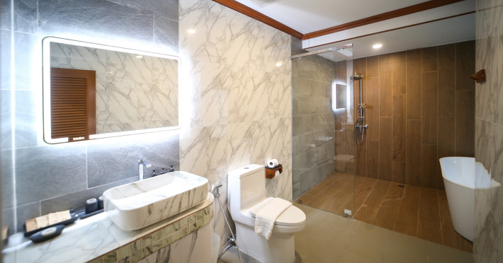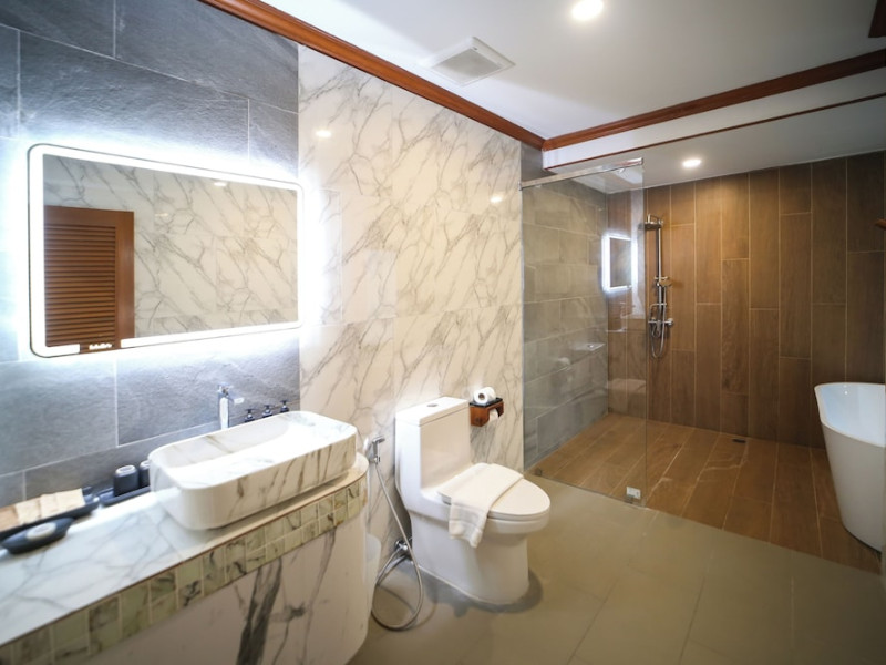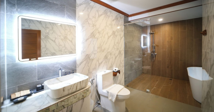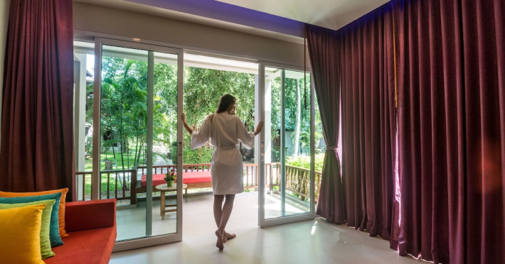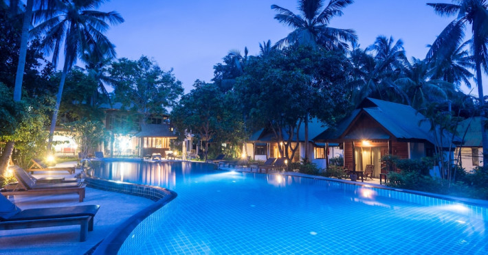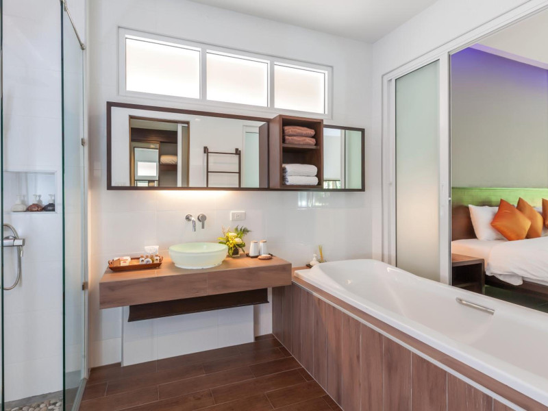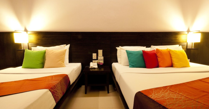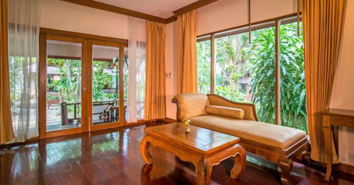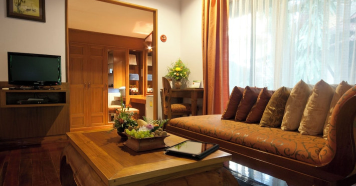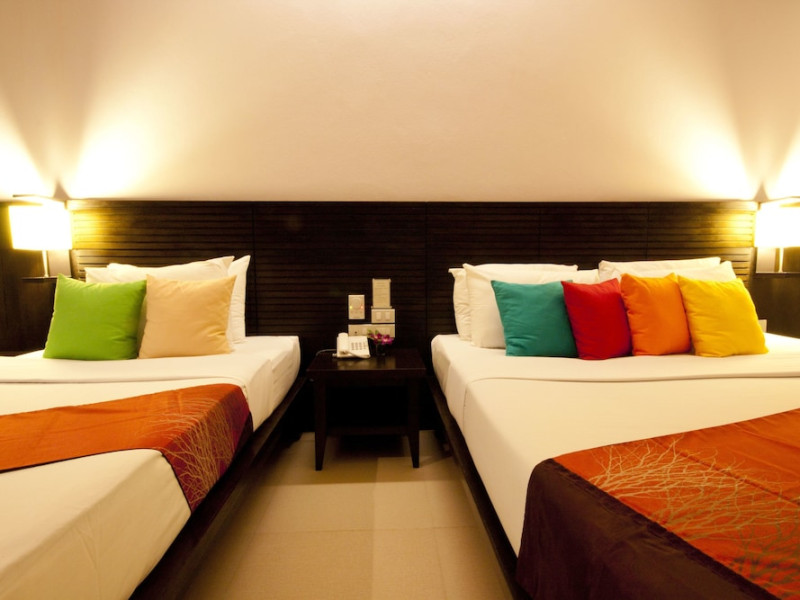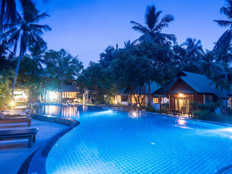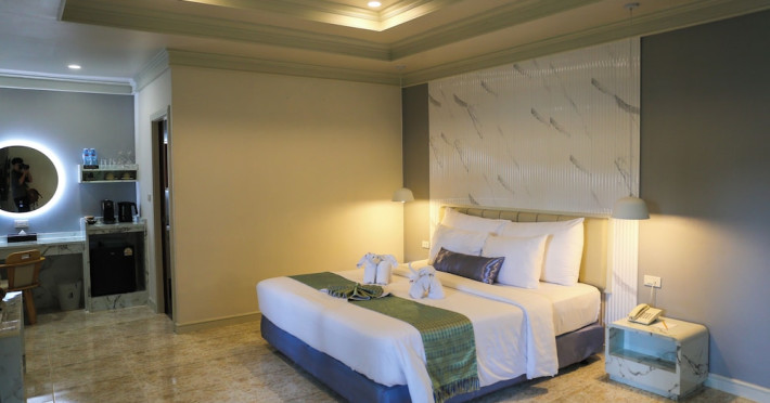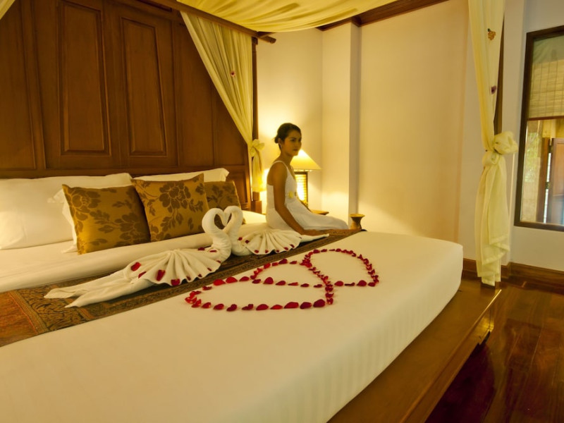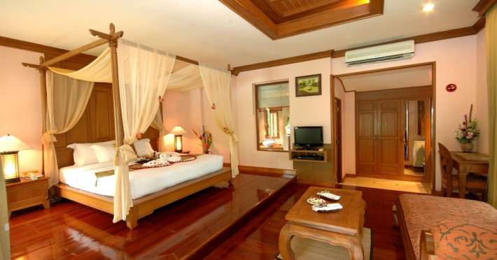 Sand Sea Resort Railay Beach is located just 10 meters from Railay West Beach. The resort offers 123 air-conditioned rooms with private balconies, refrigerators, and complimentary Wi-Fi. Each room includes a private bathroom with complimentary toiletries and a hairdryer. Onsite amenities include two outdoor swimming pools (one with a children's section), a fitness center, a beachfront restaurant (Sunset Restaurant) with ocean views, a beach bar, room service (limited hours), and a restaurant serving local and international dishes. Additional amenities include complimentary Wi-Fi in public areas, concierge services, shopping on site, dry cleaning/laundry services, a 24-hour front desk, multilingual staff, and limited onsite parking. A roundtrip airport shuttle is available for a surcharge. Buffet breakfast is available daily (fee applies). Nearby attractions include Phra Nang Cave and Princess Lagoon (1 km), Ao Nang (800m), Poda Island (2km), and various other beaches within a short distance (see detailed list of distances provided in original descriptions). Boat trips to Krabi Town and Ao Nang Beach are available. Canoeing trips are offered. The resort also offers car rental services and a tour desk for sightseeing and travel arrangements. The Sand Sea Resort Railay Beach is a City hotel, Tourist hotel. The nightlife/restaurants are easily accessible by taxi or bus from the hotel.