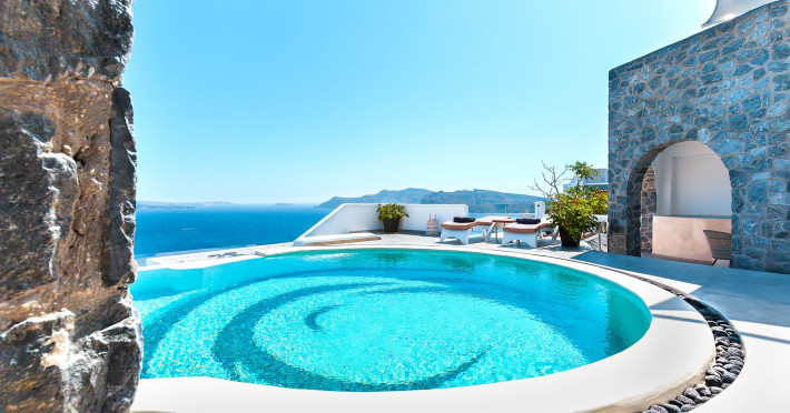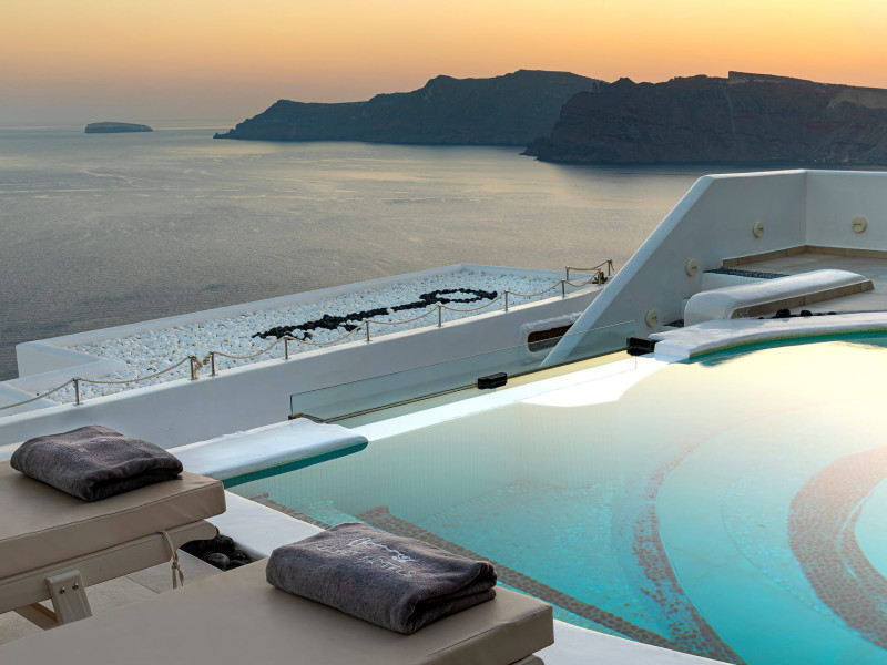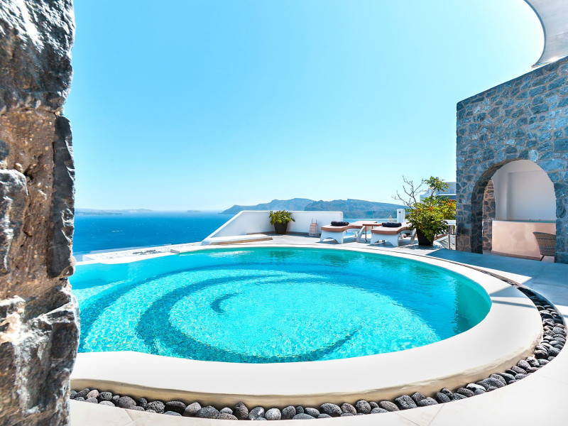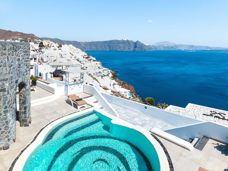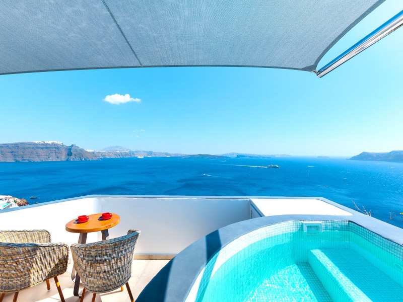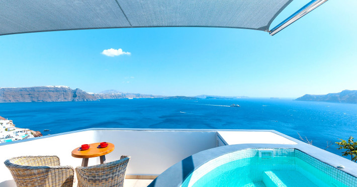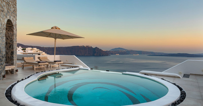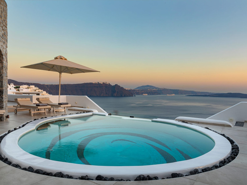 Immerse yourself in the beauty of one of the most unique islands of the world, while experiencing the luxury and tranquillity that Santorini Secret Premium has to offer. The beautiful suites stay true to the traditional Cycladic island architecture, while invigorating your senses with splashes of bright colour within the stylish deco giving them a contemporary twist.Located in Oia, where one of the most stunning sunsets in the world can be enjoyed, the suites are a perfect retreat for those who want to experience the best Santorini has to offer. Overlooking the Aegean Sea, each stay at Santorini Secret Premium will guarantee memories filled with breathtaking views of crystal blues and warm sunset colours.