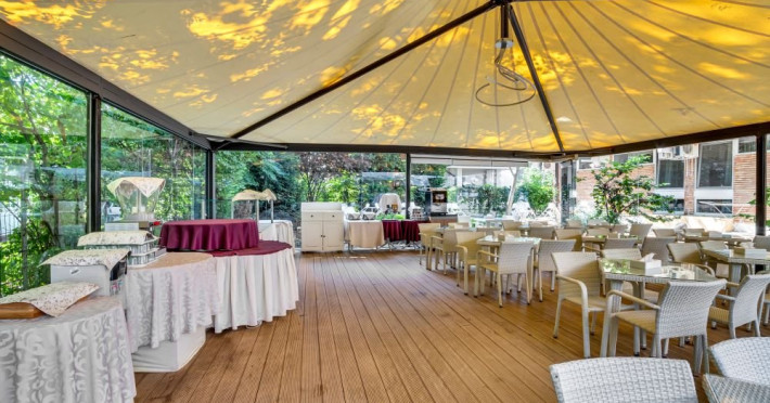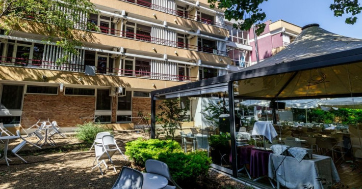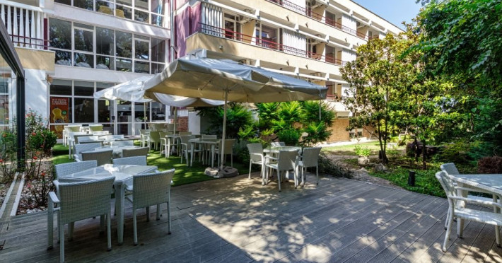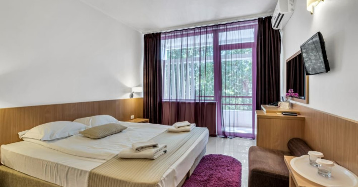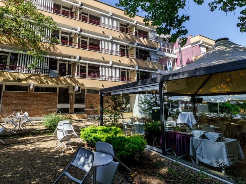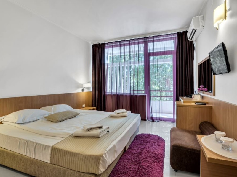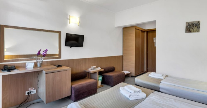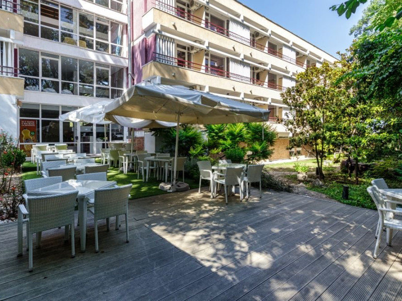 Hotelul este renovat complet si toate camerele beneficiza de 2 paturi twin(unite) sau pat matrimonial, termopan, gresie, TV, racitor, seif si balcoane, exceptand parterul. Receptia hotelului ofera camera de bagaje si internet wirless. Patut tip tarc gratuit, la cerere in functie de disponibilitate. Hotelul dispune de o terasa exterioara cu bar si gradina amenajata.