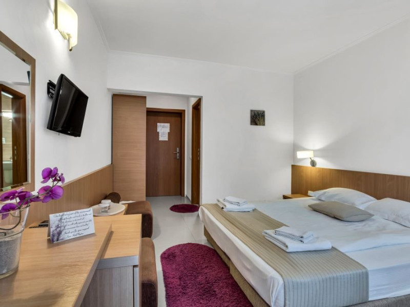 Dotari camereCamerele duble de la parter nu au balcon dar au o superba priveliste spre gradina hotelului.