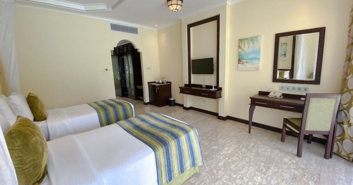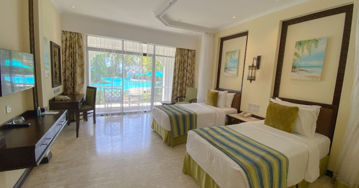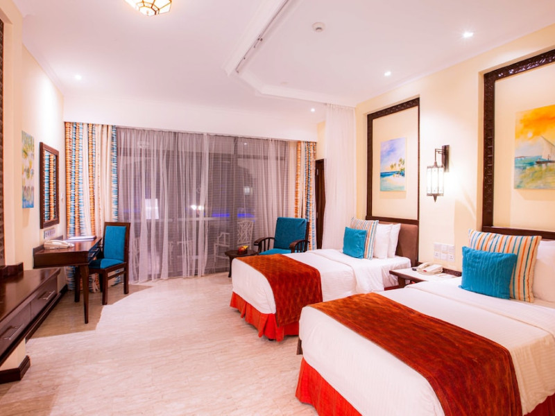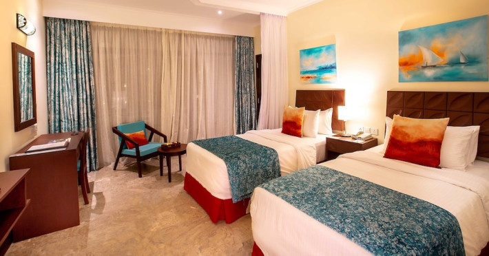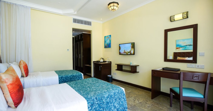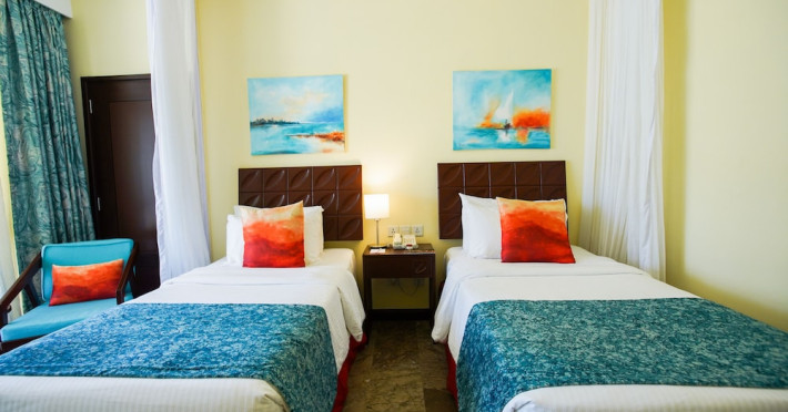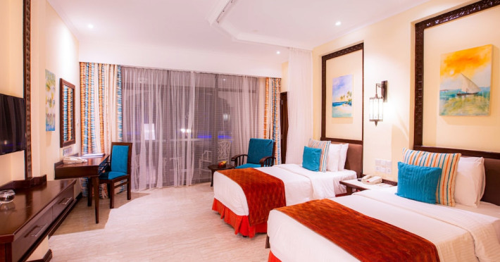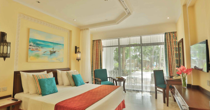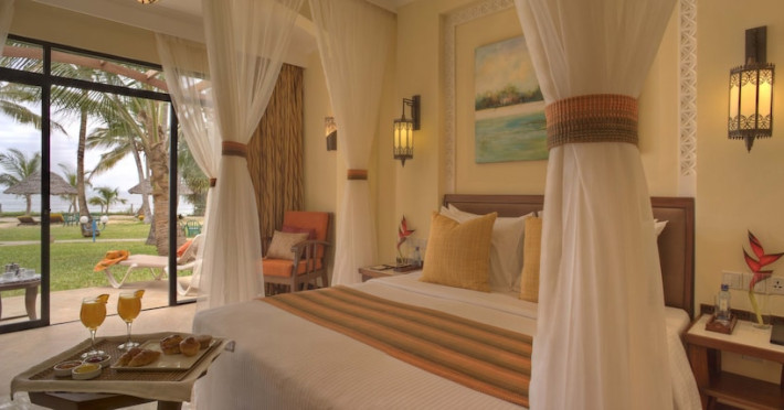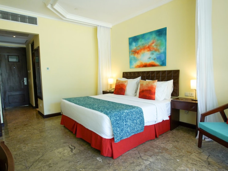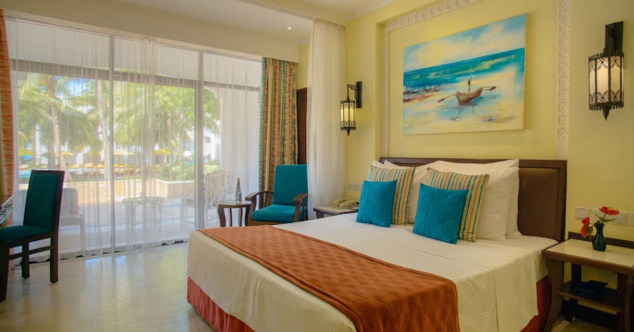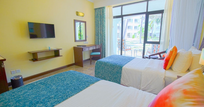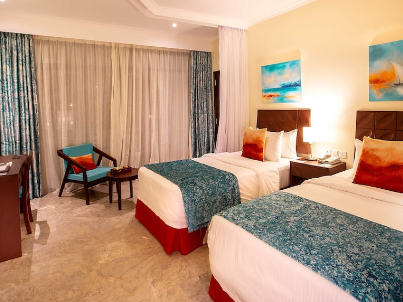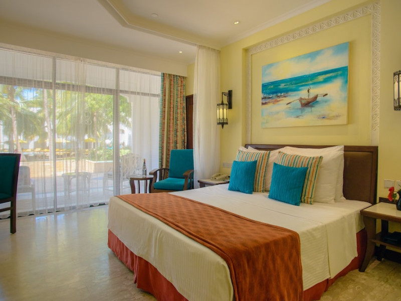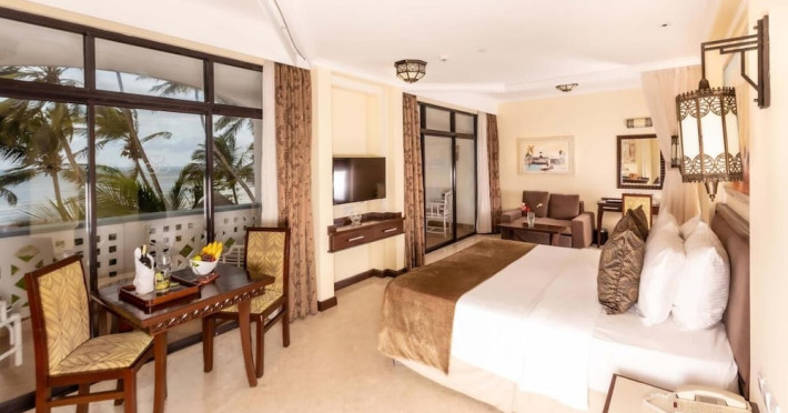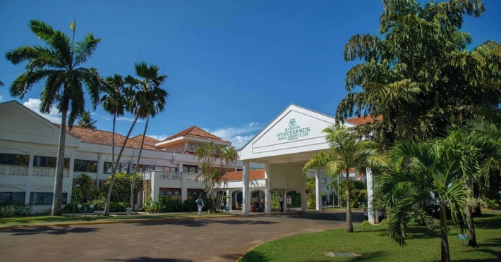 Sarova Whitesands Beach Resort & Spa, located in Mombasa on a long stretch of white sandy beach, offers a family-friendly experience with access to the Mombasa Marine Park. The resort features multiple outdoor swimming pools, restaurants, and bars, including a beach bar and nightclub. Guests can enjoy individually decorated rooms with private balconies and satellite TV. Dining options include local, Mediterranean, and Asian cuisine. The spa and wellness center offers massages and beauty treatments, while recreational facilities include a fitness center and opportunities for water sports, tennis, beach volleyball, and archery. Excursions to local attractions can be arranged. Complimentary Wi-Fi is available. The Sarova Whitesands Beach Resort and Spa is a Tourist hotel. Located in North Coast Of Mombasa Off The Indian Ocean Beach area. The nightlife/restaurants are easily accessible by taxi or bus from the hotel.