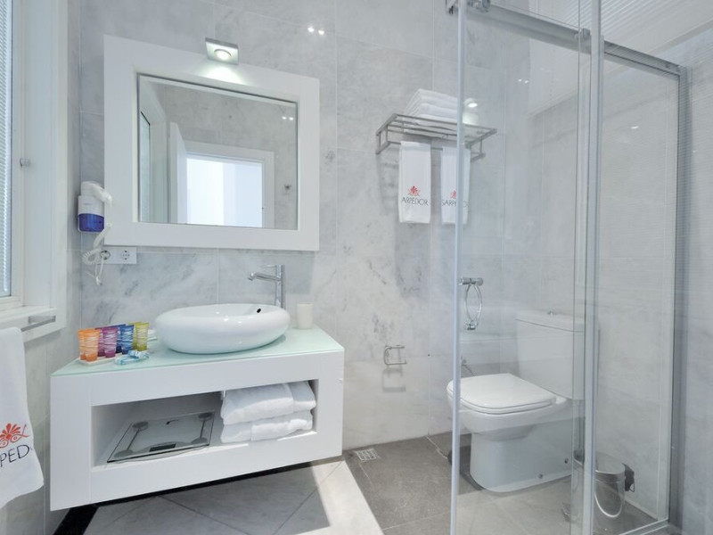 Near Torba Beach. When you stay at Sarpedor Boutique Hotel in Bodrum, youll be on the boardwalk/promenade, within a 10-minute drive of Bodrum Bar Street and Bodrum Castle. This all-inclusive resort is 5.2 mi (8.3 km) from Bodrum Beach and 5.8 mi (9.3 km) from Bodrum Marina. Make yourself at home in one of the 50 individually decorated guestrooms, featuring minibars and LCD televisions. Rooms have private furnished balconies. Complimentary wireless internet access keeps you connected, and digital programming is available for your entertainment. Bathrooms feature showers, complimentary toiletries, and hair dryers. This resort is all inclusive. Rates include meals and beverages at onsite dining establishments. Charges may be applied for dining at some restaurants, special dinners and dishes, some beverages, and other amenities. Enjoy international cuisine at Sunset Main Restaurant, one of the resorts 2 restaurants, or stay in and take advantage of the room service (during limited hours). Relax with a refreshing drink at the beach bar, the poolside bar, or one of 2 bars/lounges. A complimentary buffet breakfast is served daily from 7:00 AM to 11:00 AM. Relax at the full-service spa, where you can enjoy massages, body treatments, and facials. After a day at the private beach, you can enjoy other recreational amenities including a sauna and a fitness center. Additional features at this Mediterranean resort include concierge services and wedding services. Guests can catch a ride to nearby destinations on the area shuttle (surcharge).