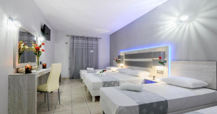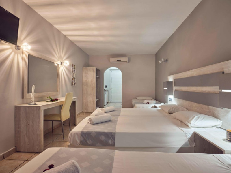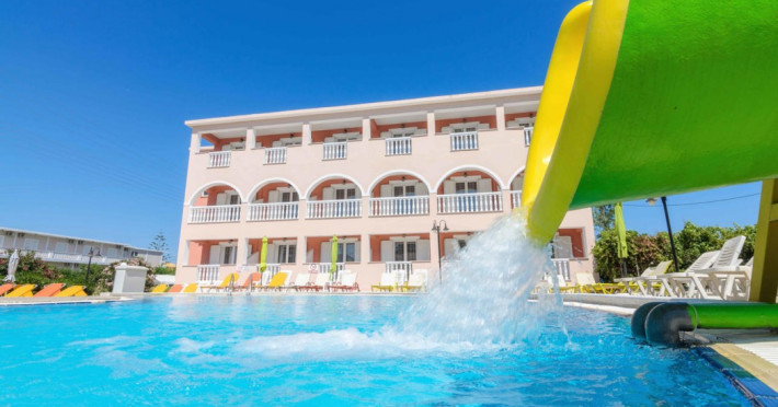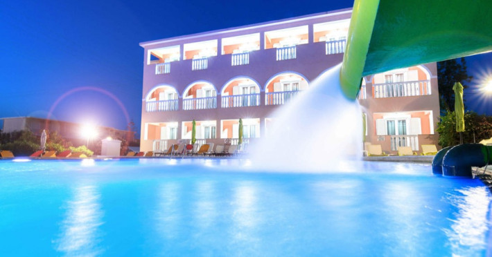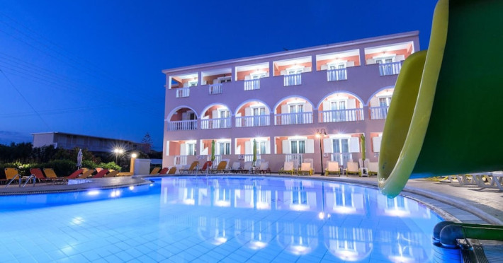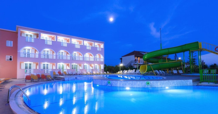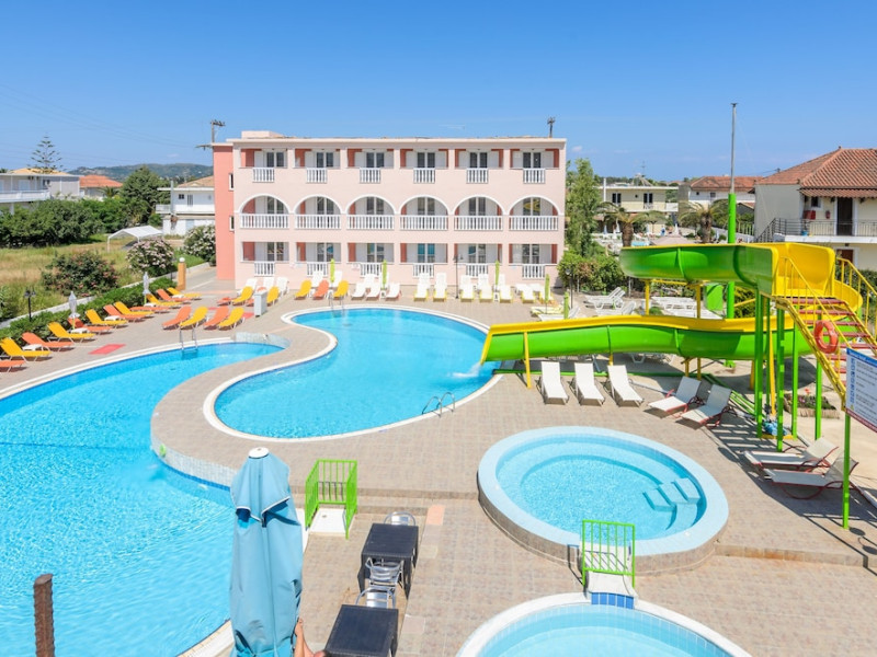 Located near the airport in Zakynthos, Aeon Hotel offers air-conditioned rooms with kitchenettes featuring refrigerators and stovetops. Rooms include private furnished balconies. Wireless internet access is available (surcharge). The hotel features an outdoor pool, a restaurant, a snack bar/deli, and a bar/lounge. English breakfasts are available daily (surcharge). Amenities include luggage storage and a safe deposit box at the front desk. Free self parking is available onsite. The hotel is near Laganas Beach and Kalamaki Beach. Zakynthos International Airport is nearby. The Savvas De Val is a hotel.