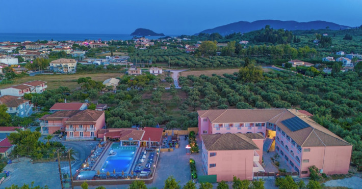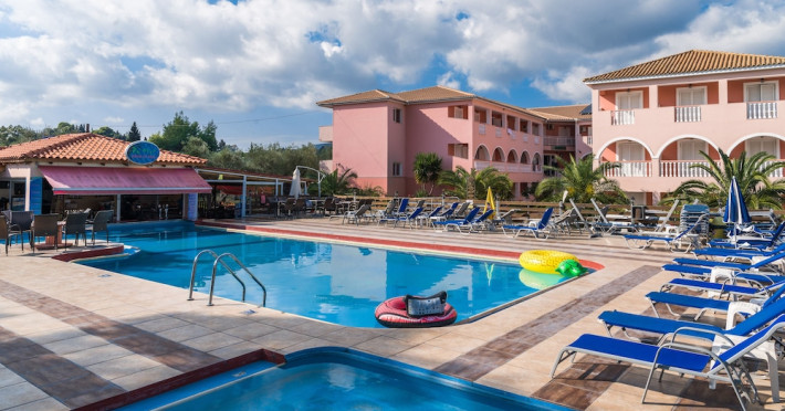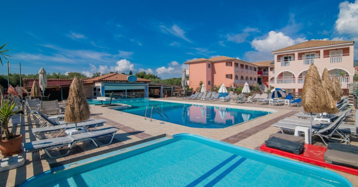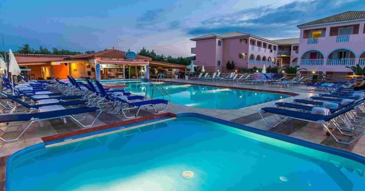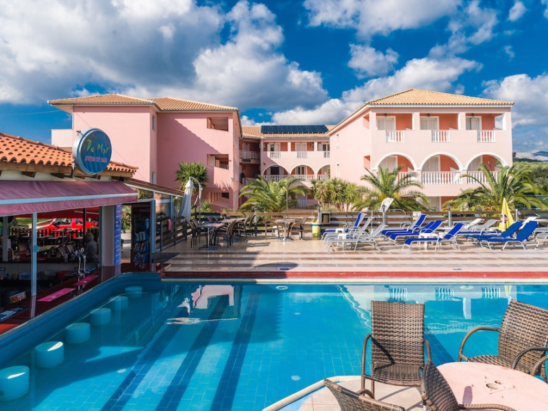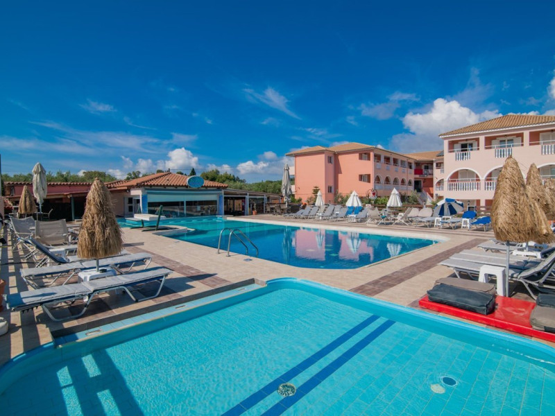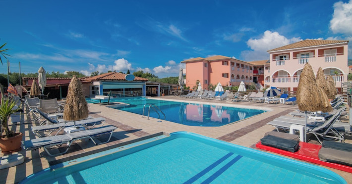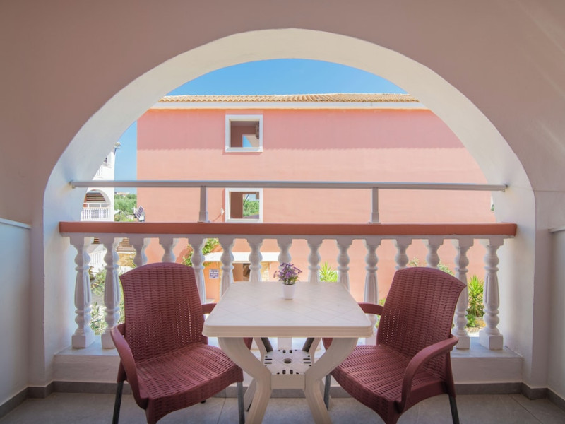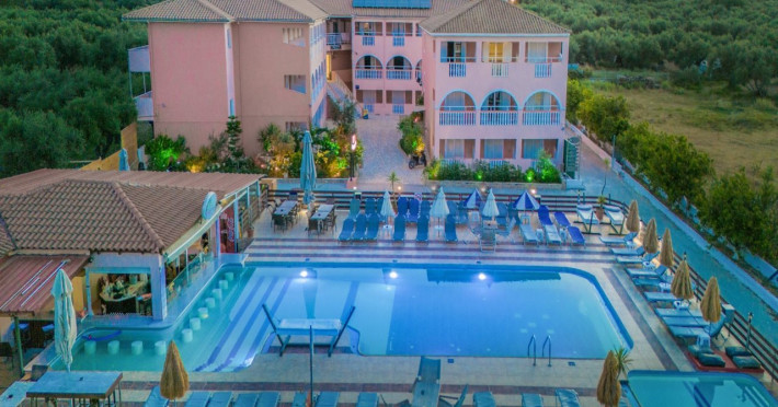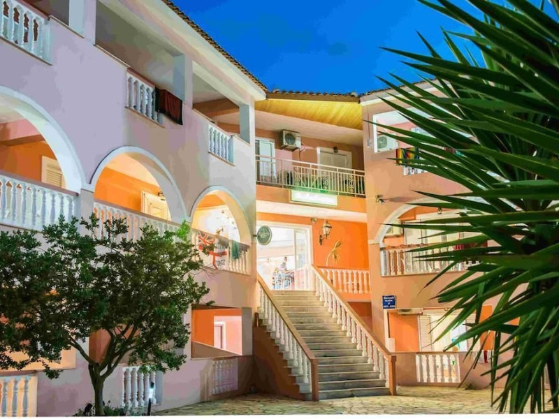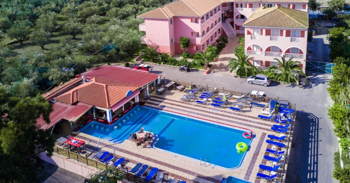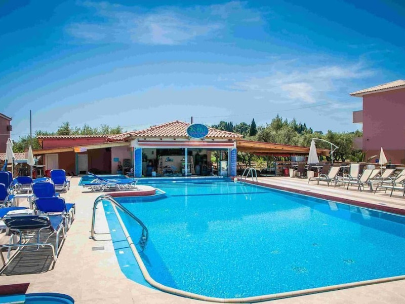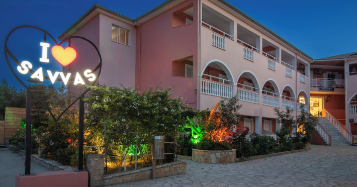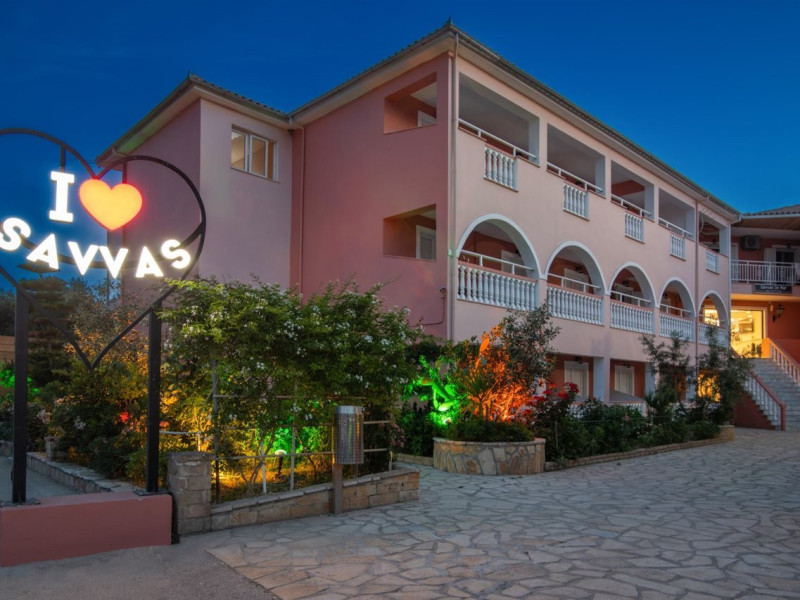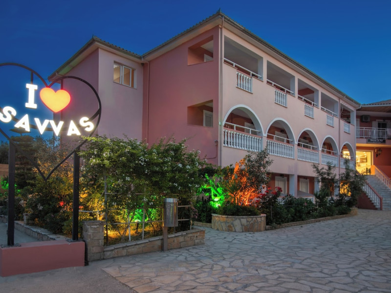 Savvas Hotel is a complex of apartments located in the lively resort of Laganas, close to many restaurants, bars and discos, as well as 100 m back from the main road in Laganas. It is also situated 7 km from the town and port of Zakynthos.The facilities and services include reception (limited hours) with safe service (with extra charge), restaurant and bar, gift shop and mini market, Internet corner and WiFi Internet access (payable in the rooms and free of charge around the pool area),(both with extra charge), outside pool with pool bar and sun terrace. It also features billiards (with extra charge). The hotel has parking facilities.The studios are equipped with A/C (with extra charge), kitchenette with mini fridge and coffee/tea making facilities, balcony and bathroom with shower.** Please note that some of the above facilities may be closed due to weather / seasonal conditions.**** Note: Reception with limited opening hours. Please advise flight number and estimated arrival time when booking this complex.Note: Room view is always on request.Address: Laganas, 29092 Zante, Greece.