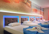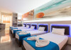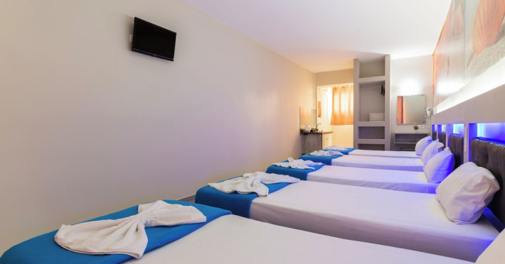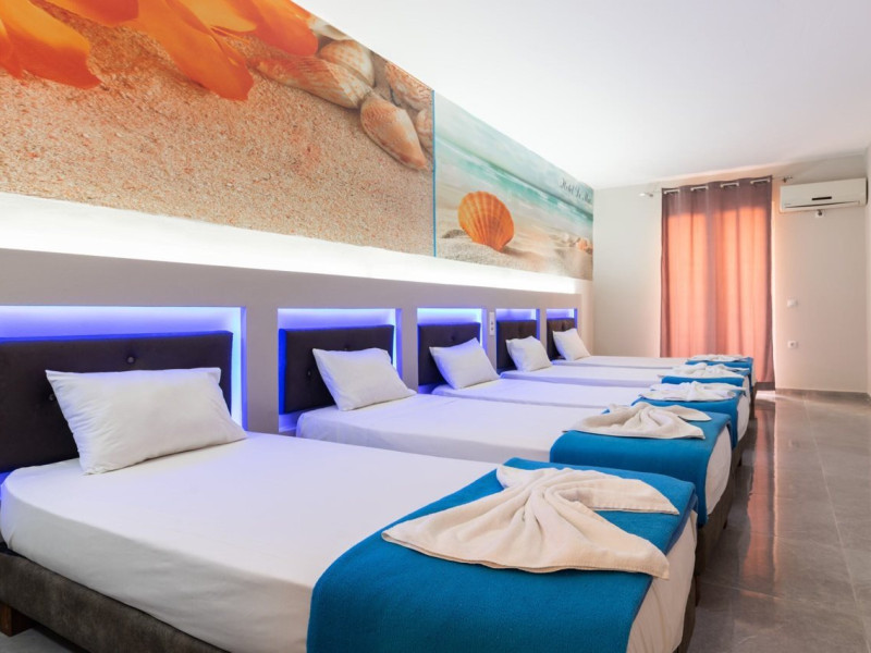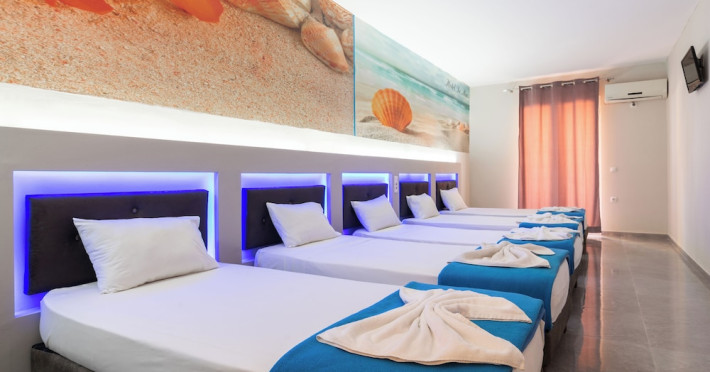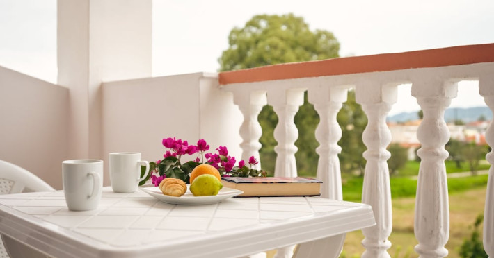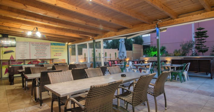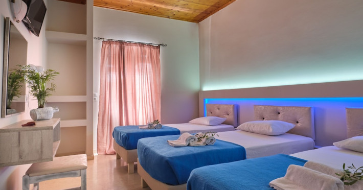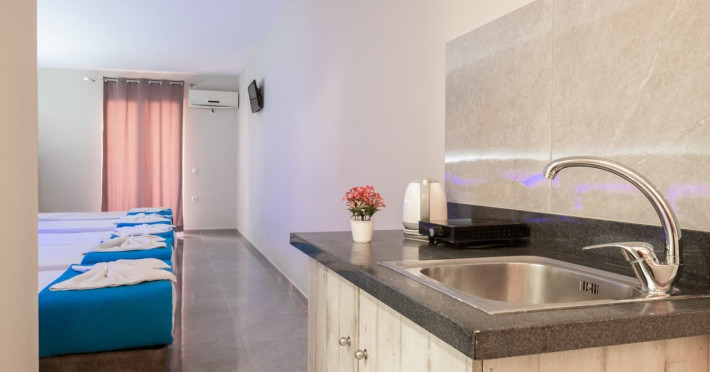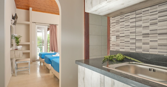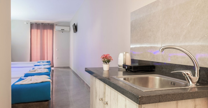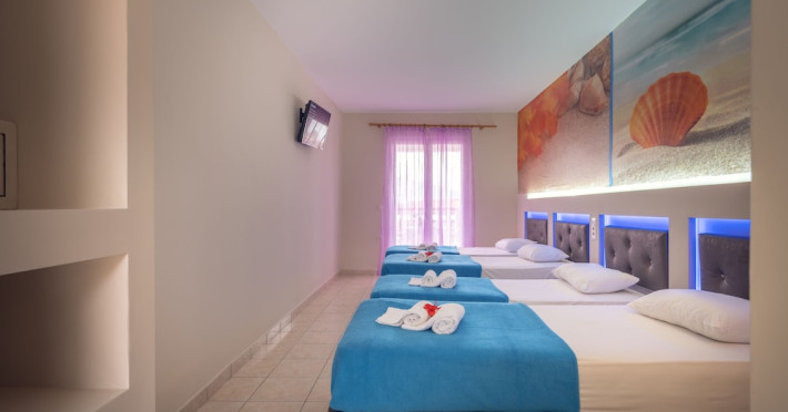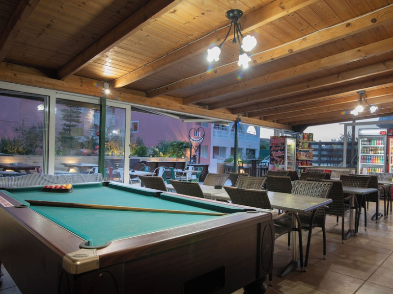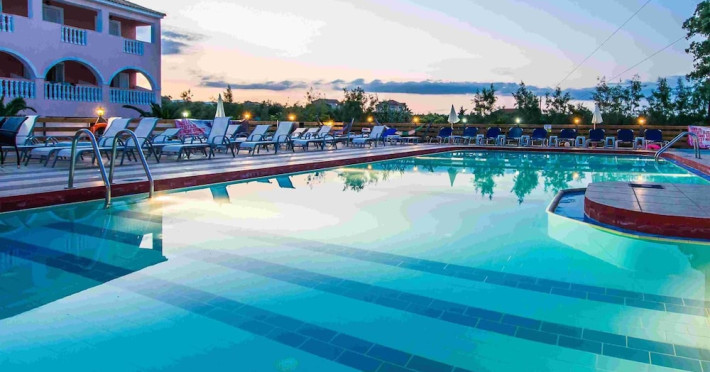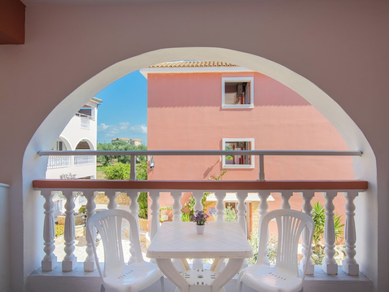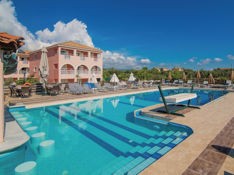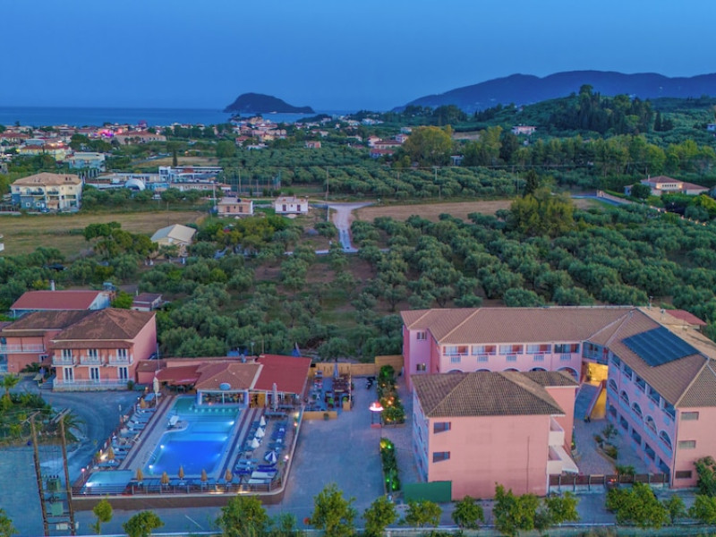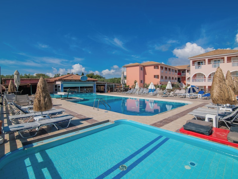 Savvas Hotel is a complex of apartments located in the lively resort of Laganas, close to many restaurants, bars and discos, as well as 100 m back from the main road in Laganas. It is also situated 7 km from the town and port of Zakynthos.The facilities and services include reception (limited hours) with safe service (with extra charge), restaurant and bar, gift shop and mini market, Internet corner and WiFi Internet access (payable in the rooms and free of charge around the pool area),(both with extra charge), outside pool with pool bar and sun terrace. It also features billiards (with extra charge). The hotel has parking facilities.The studios are equipped with A/C (with extra charge), kitchenette with mini fridge and coffee/tea making facilities, balcony and bathroom with shower.** Please note that some of the above facilities may be closed due to weather / seasonal conditions.**** Note: Reception with limited opening hours. Please advise flight number and estimated arrival time when booking this complex.Note: Room view is always on request.Address: Laganas, 29092 Zante, Greece.