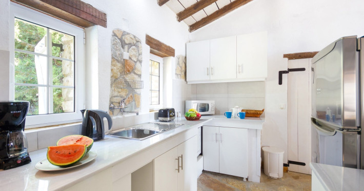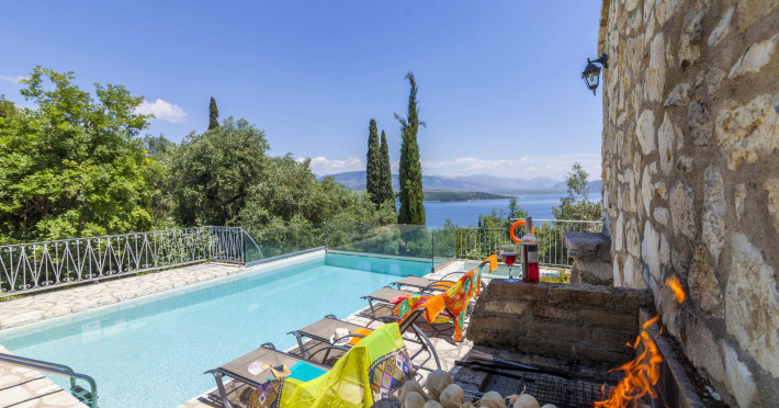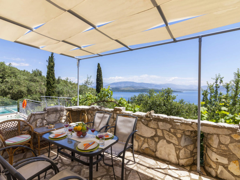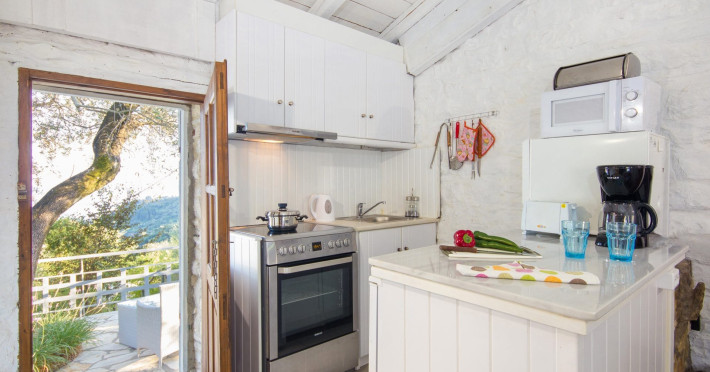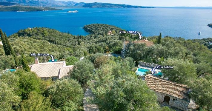 Scirocco VillaA downhill track takes you to a parking area, where there is a small covered courtyard with a bistro table and chairs. The solid wooden door leads into the open plan living space, which features a dining area and lounge with beamed ceiling and exposed stonework.On entry to the Villa, a door leads to a small dressing area, then through to a shower room and brightly furnished twin bedroom. Patio doors from this room open out onto the courtyard at the entrance of the villa.The lounge has comfortable sofas and a decorative fireplace. Patio doors off from here lend plenty of light and fabulous views of the Ionian Sea, even while sitting.The Kitchen area is fitted with traditionally styled units and is fully equipped. Off the kitchen, there is a separate small utility room with a washing machine and small basin.The double bedroom has an en suite shower room and is located at the other end of the villa with patio doors leading on to a terrace and private infinity pool (which has a safety glass around one side, so as not to obscure the views).Outside is the shaded terrace with an alfresco dining area and stone-built BBQ which looks out to the Ionian Sea and small cove on the North East Corfu coast. The terrace has direct access to the private infinity pool and sunbathing area as well as a separate Jacuzzi-splash pool where you can cool off from the midday sun. Whether lounging on a sunbed or cooling down in the pool, you cannot escape the breath-taking sea views that surround the villa.Set on the hillside of North East Coast between the bays of Kerasia and Agios Stafanos, Villa Scirocco is ideally located to explore the Village resorts of Kassiopi, Kouloura and Kalami, which are all a short drive away. Surrounded by olive and Cypress trees, this property has some of Corfu’s finest countryside right on your doorstep, with spectacular views across the Ionian Sea and into the mountainous terrain. Folitsa VillaA stone-paved track leads to this character, stone-built cottage, where a solid arched wooden door leads into the house. Cosy open plan living space with a seating area and fully equipped kitchenette with a solid wood breakfast bar to your right; to the left of the open plan living area you will find a metal framed double bed with bedside tables, an antique wardrobe and dresser. There is a window that overlooks the pool area and the Ionian Sea.The kitchen door opens onto 2 small naturally shaded terraces with outdoor dining areas, both offering different sea view perspectives whilst overlooking the L shaped pool; the swimming pool has safety glass around one side, so as not to obscure the views. The spacious swimming pool area features a stone wall surrounding the property to provide privacy. There is also a stone build BBQ and views to the North East coast of the island are simply breath-taking!Villa Folitsa is set on the hillside between the bays of Kerasia and the upmarket resort of Agios Stefanos. Tavernas, beaches and mini markets are just a short drive away. This property is perfectly nestled among tranquil olive groves and ideally located for people wanting to explore the stunning North East Coast of Corfu and its quaint coastal villages of Kouloura, Kalami and Kassiopi. LocationThere are 2 supermarkets in Agios Stefanos which have a good range of products. In the opposite direction going back to the main road and very close to the property, there is also a larger supermarket in Sinies. Fresh meat and fish can be bought or ordered from all 3 supermarkets.Agios Stefanos has a good selection of tavernas and small cafes along the seafront where you can watch the fishing boats come and go. Kerasia, which is a further 3 minute drive away from Agios Stefanos has a tavern and cafe on the water front. The resort of Kassiopi is a 10 minute drive away, which has a wide range of tavernas, bars and cafes.The beaches of Kerasia and Agios Stafanos are extremely close by car and can even be walked down to (the incline walking back to the property is rather steep). The beaches of Avlaki, Kalami, Kouloura, Agni, Kentroma, Nissaki are all within 10 minute drive from Villa Folitsa, all of which are shingle and pebbles.For anyone wanting to experience a true taste of Greece, motor boats can be hired locally to explore the stunning bays of kouloura, Kalami and Agni along the North East coast. You can also visit old Peritheia Village, a unique village near the summit of mount Pantokrator, which offers hiking routes, stunning views and traditional tavernas to sample old Corfiot recipes.